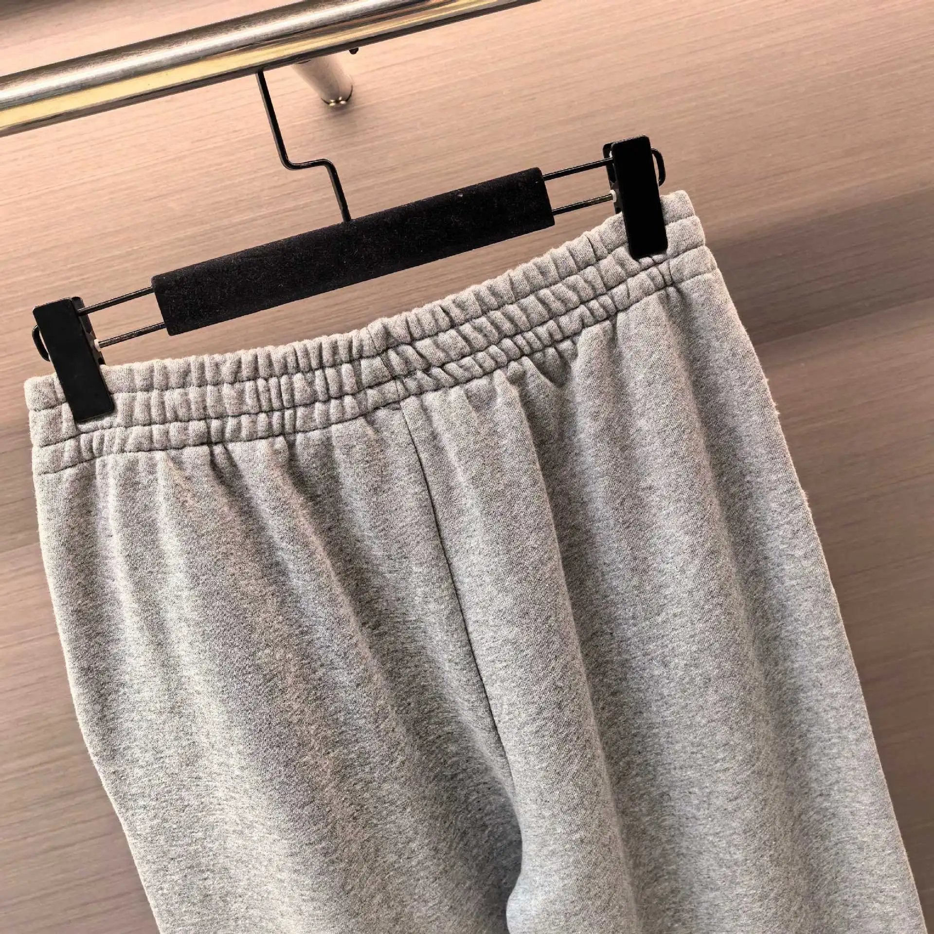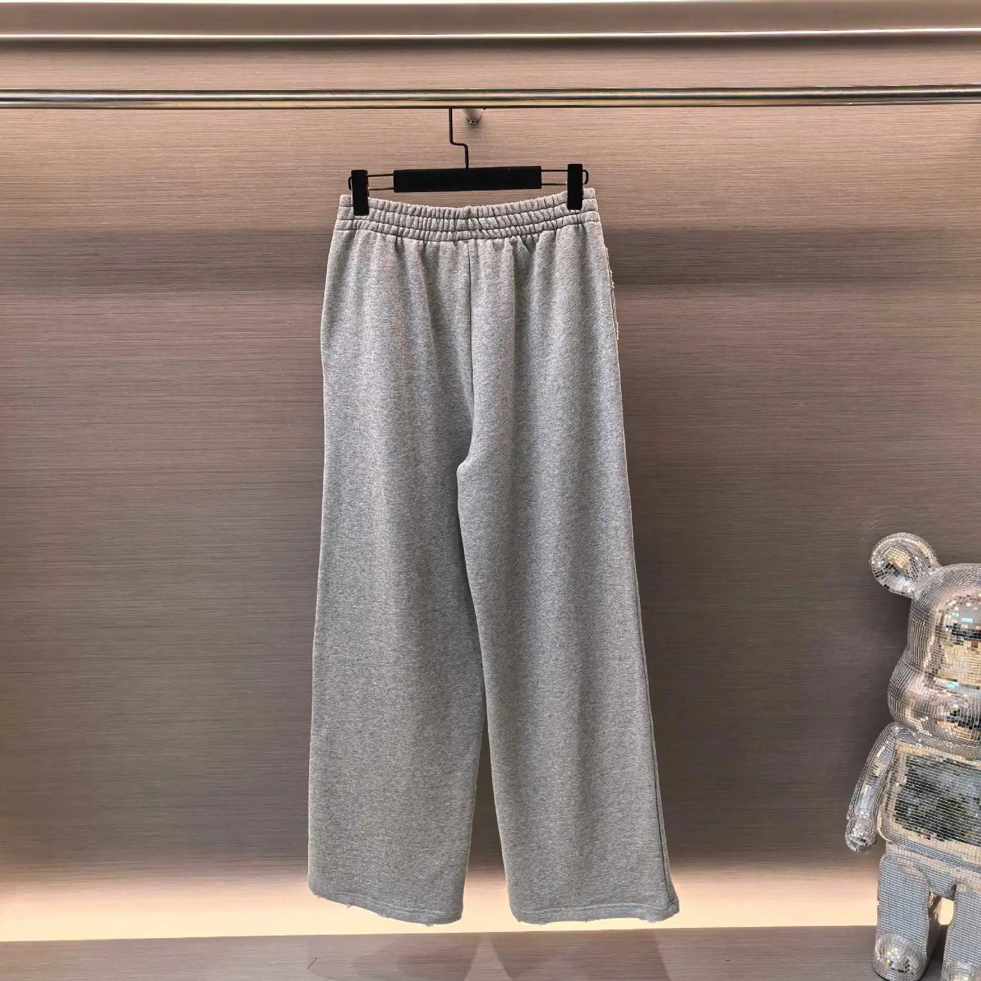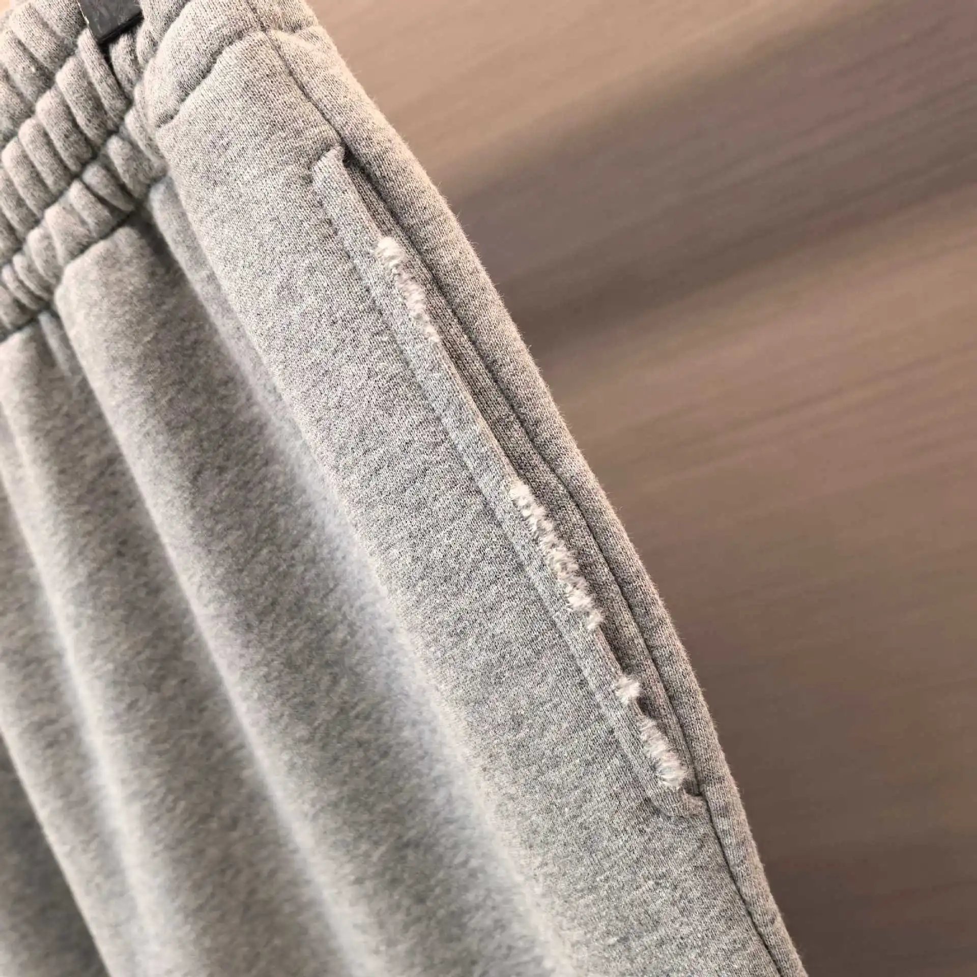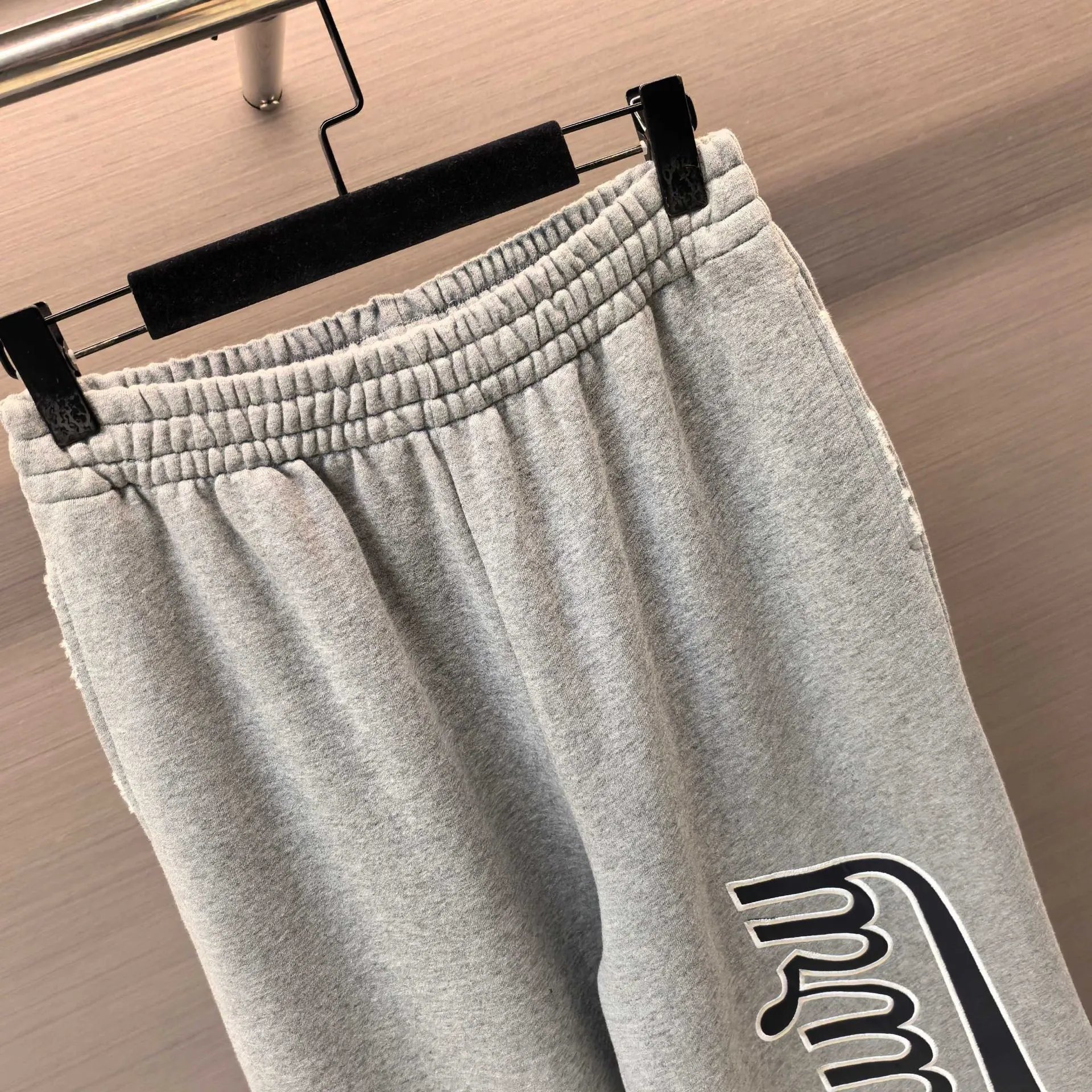 巴黎B家网红款拼皮刺绣松弛灰磨破运动卫裤长裤男女