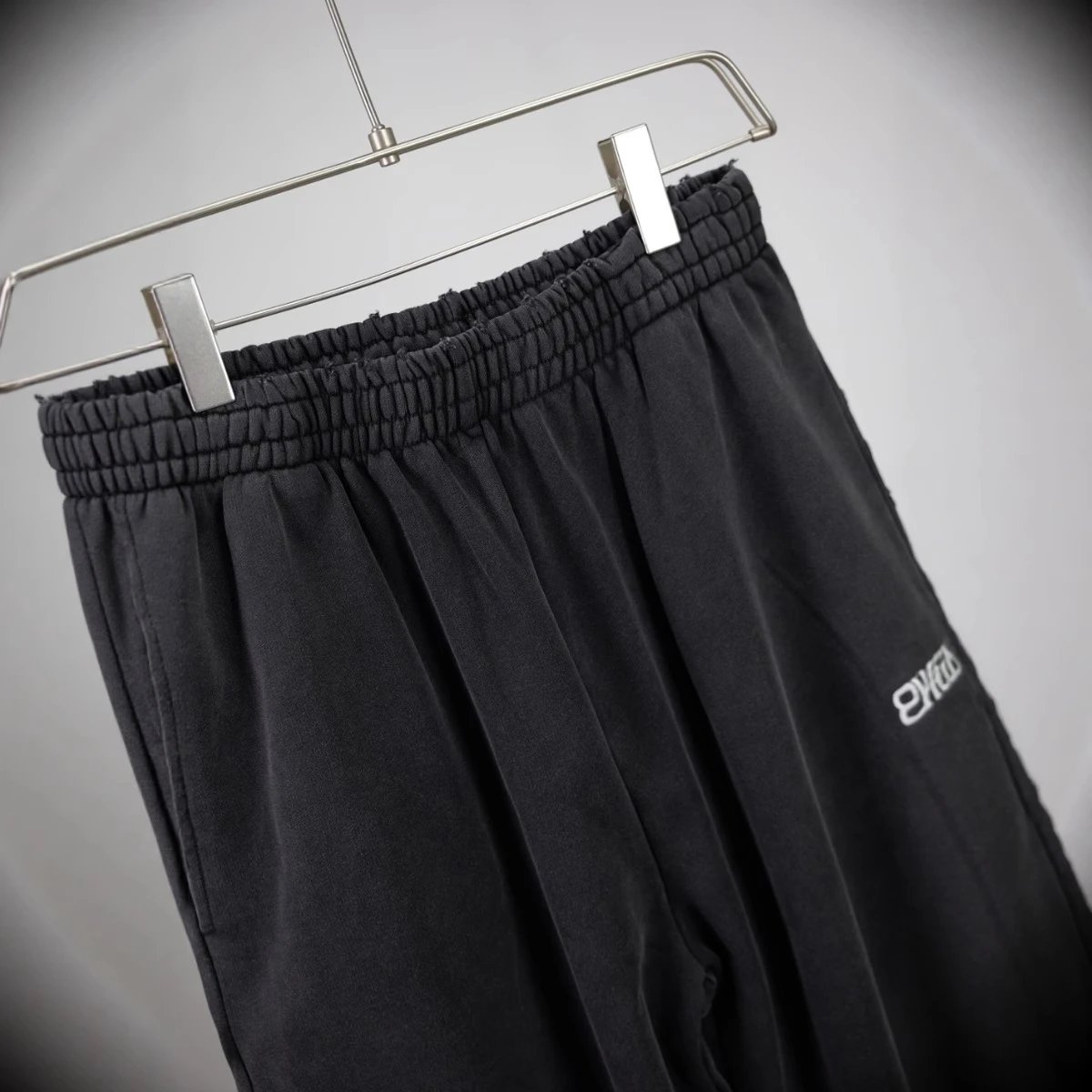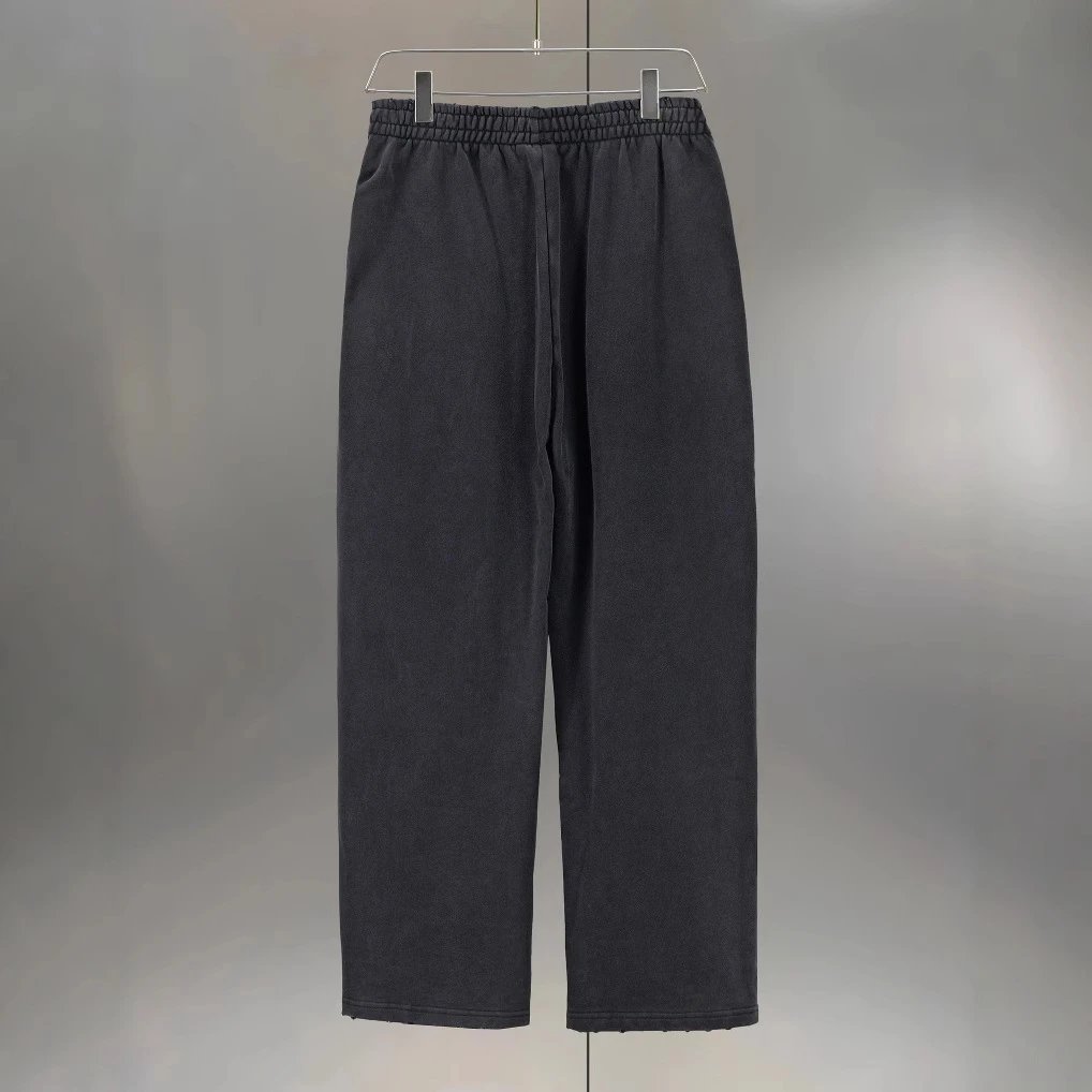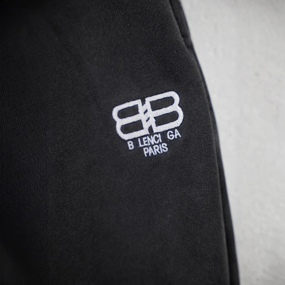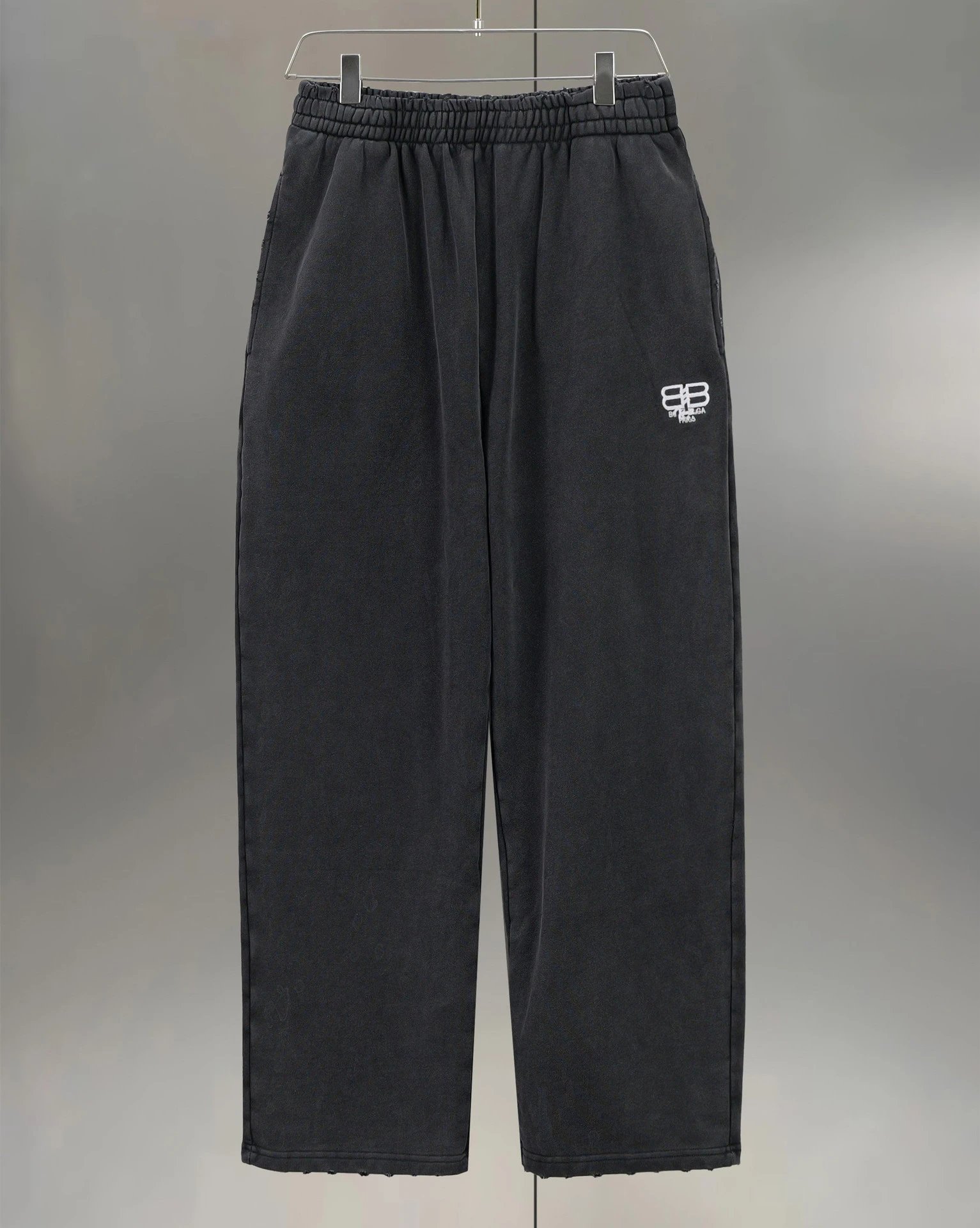 巴黎B家双B刺绣LOGO网红款水洗做旧直筒长裤卫裤休闲裤男女