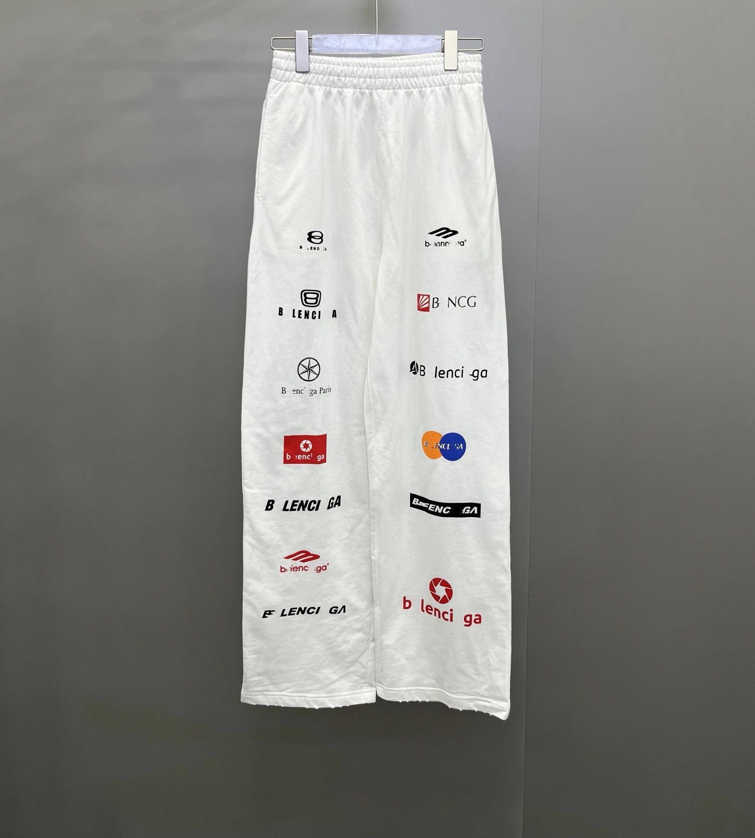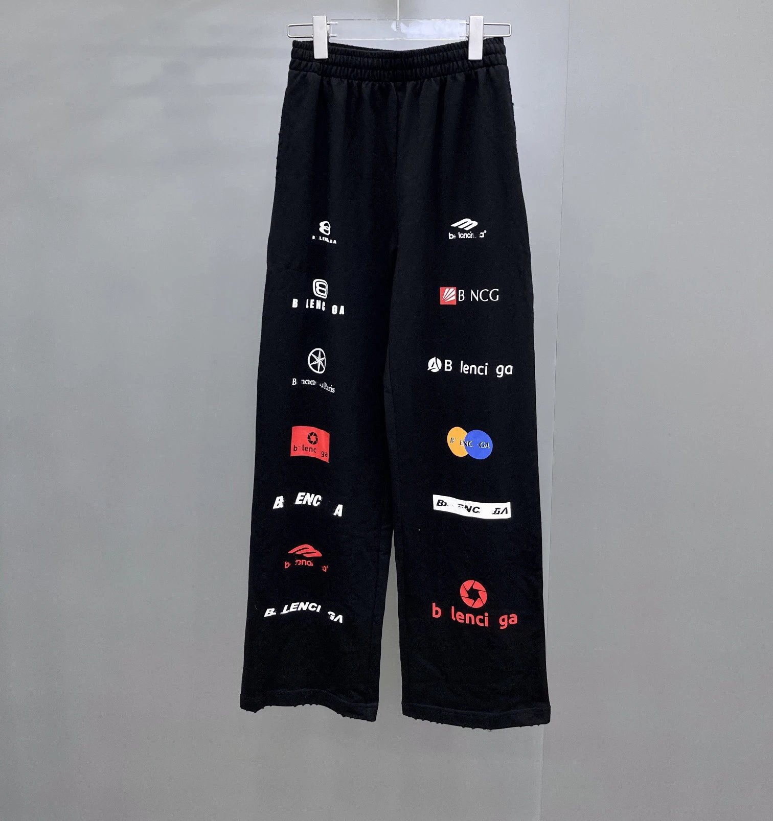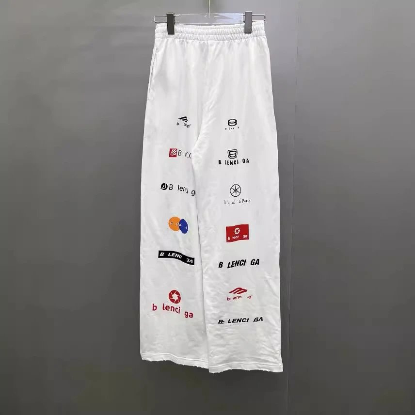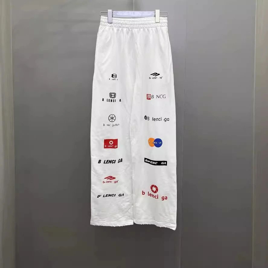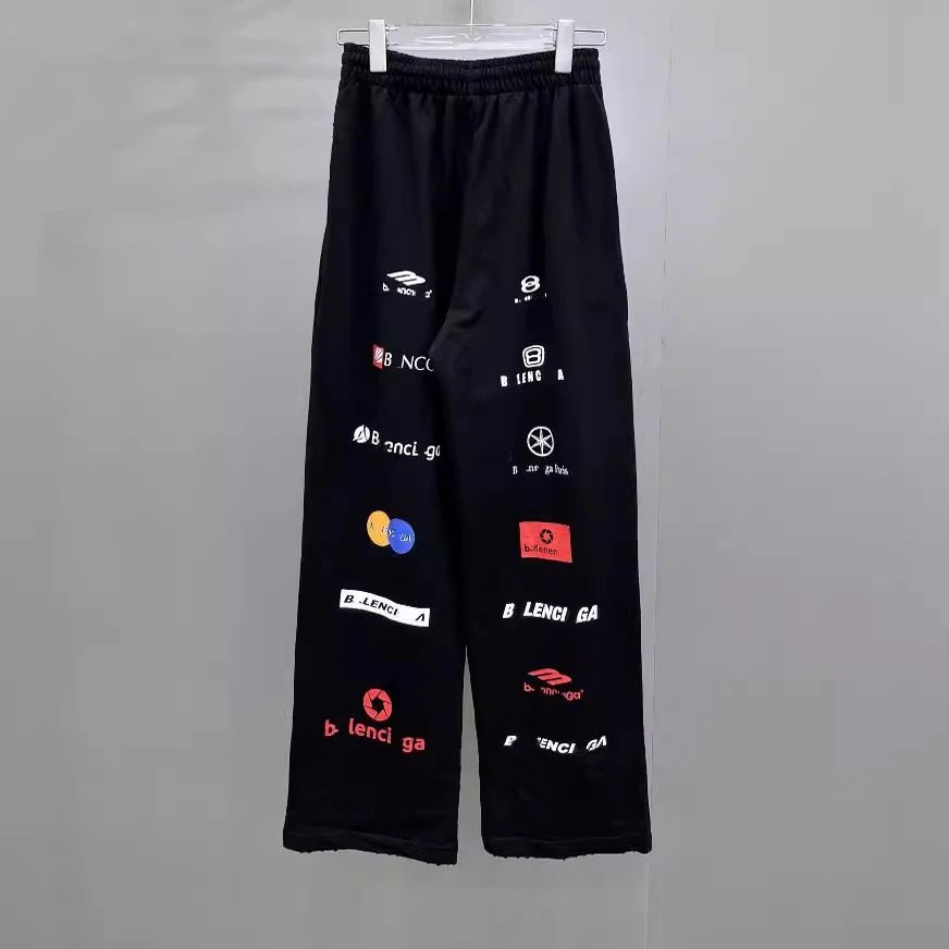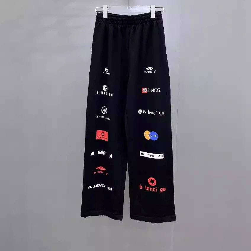 本巴黎B家满印LOGO赛车服男女宽松休闲运动长裤