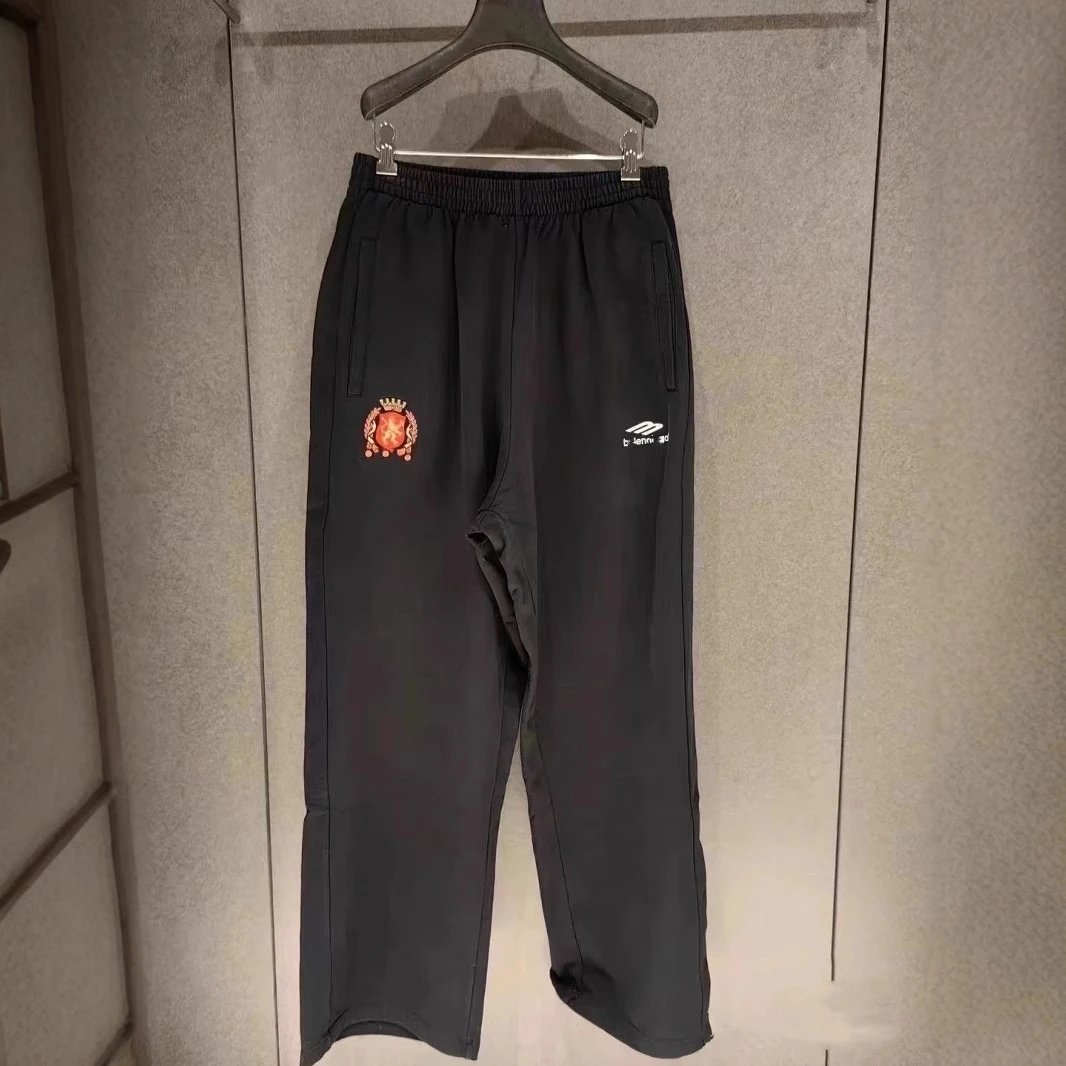 巴黎B家联名曼联刺绣奖杯LOGO黑色男女宽松长裤休闲裤卫裤