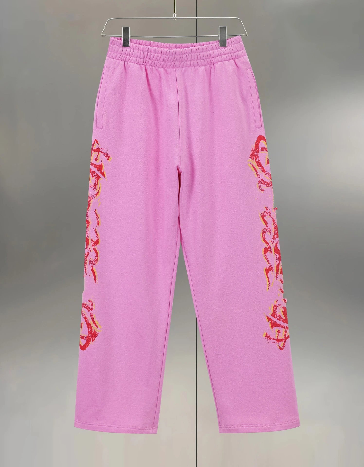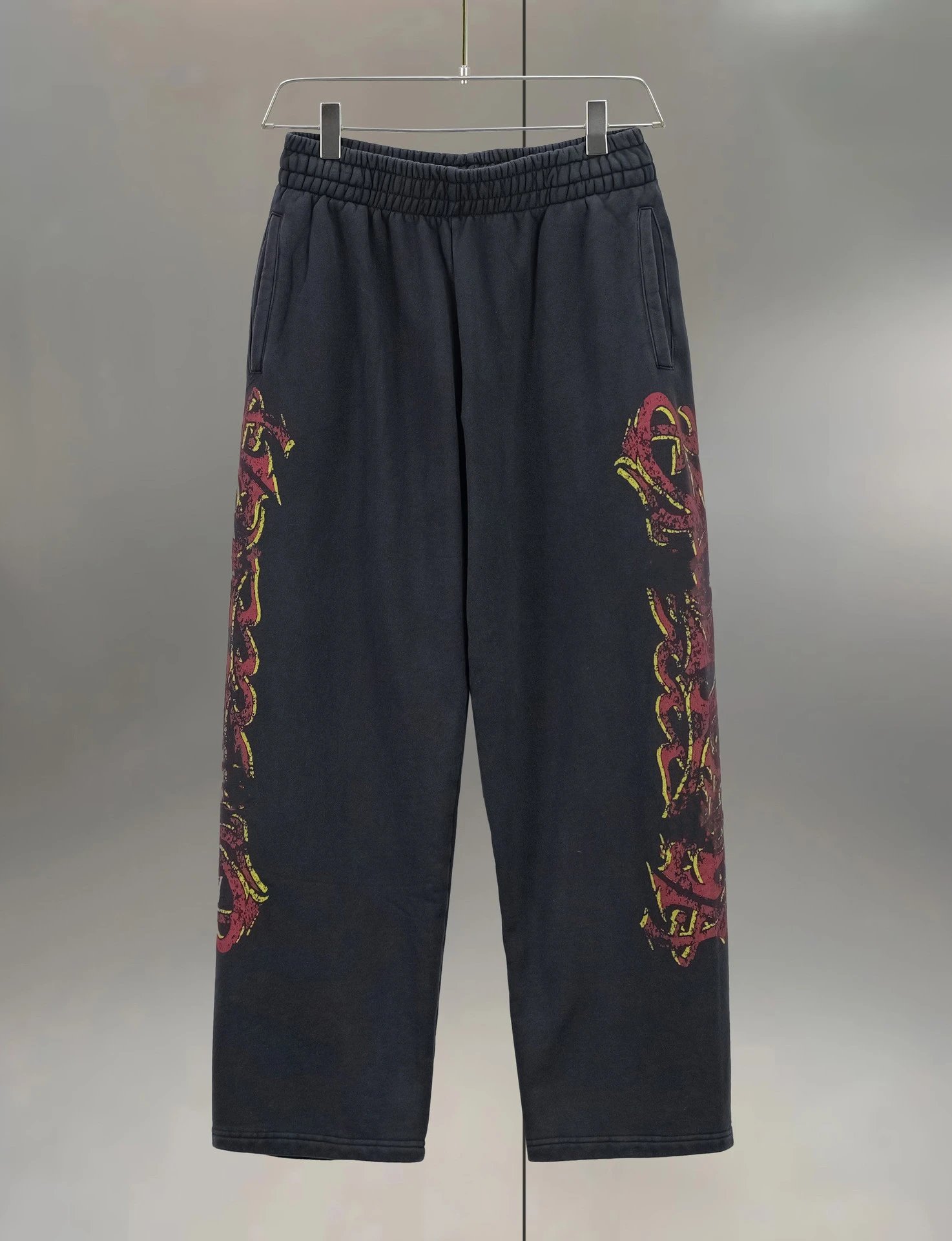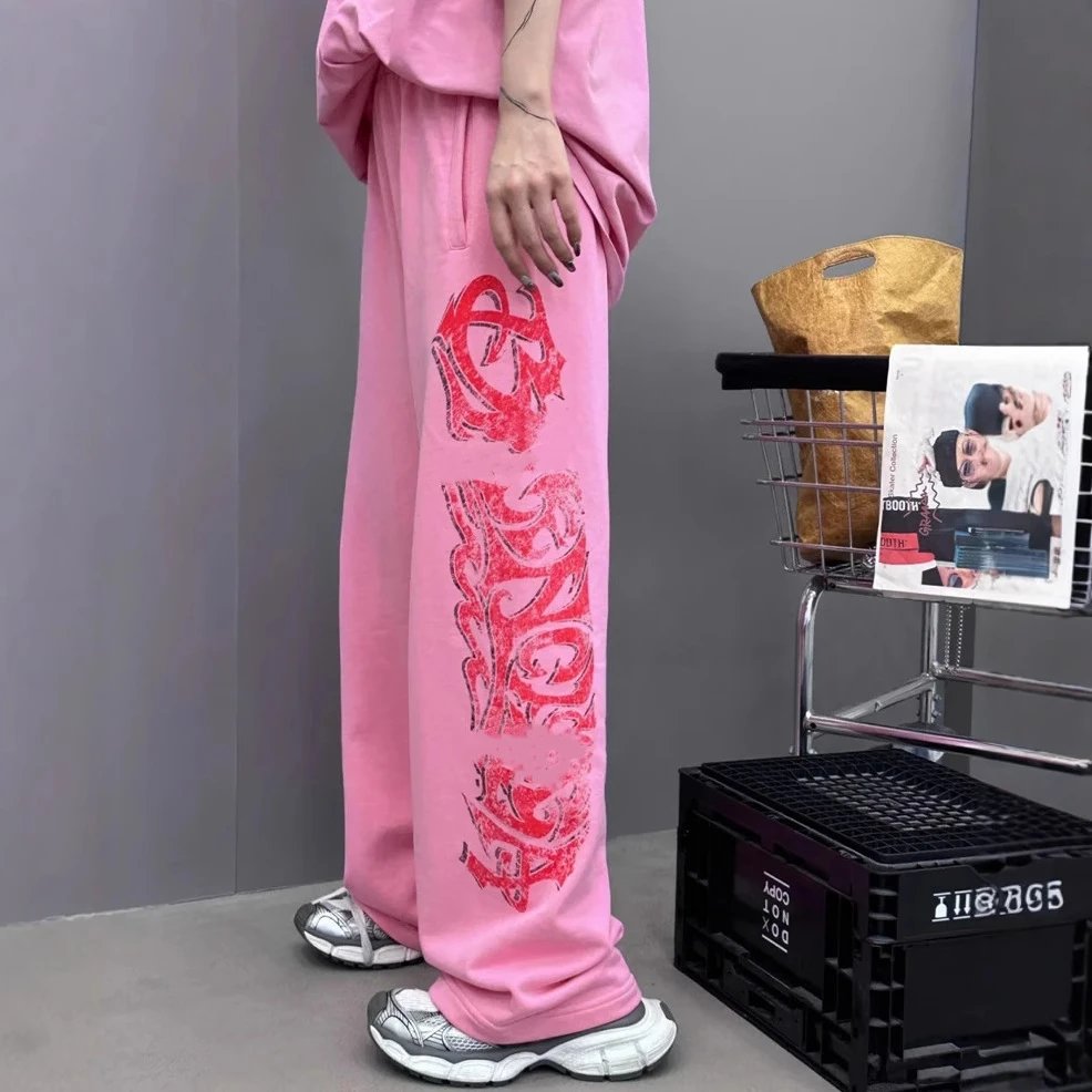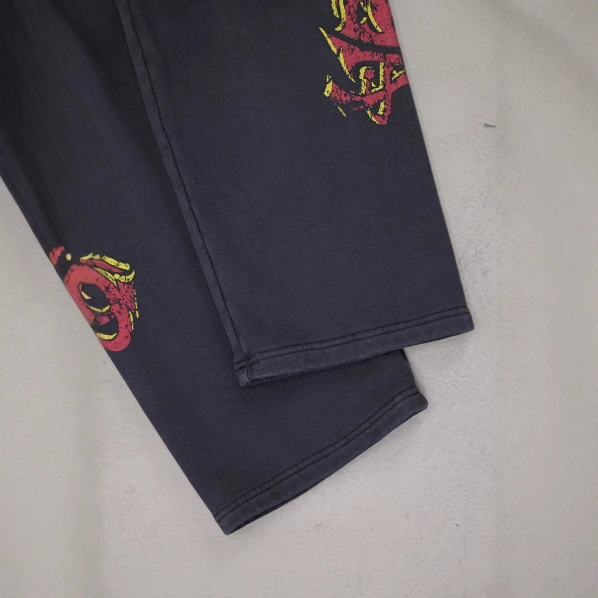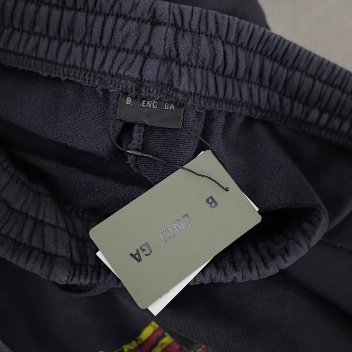 巴黎B家梵文火焰字母LOGO网红款水洗做旧直筒长裤卫裤男女