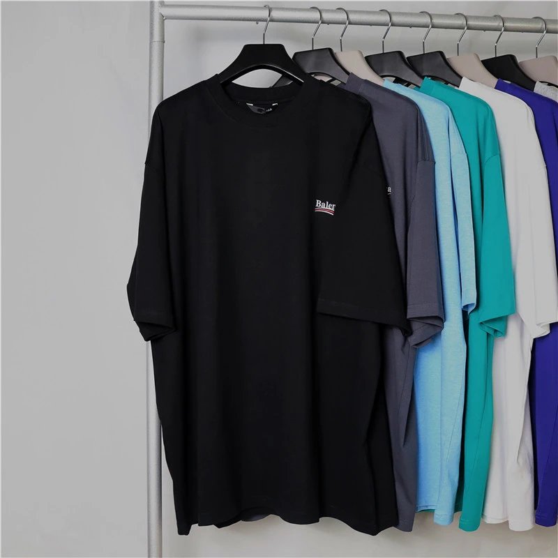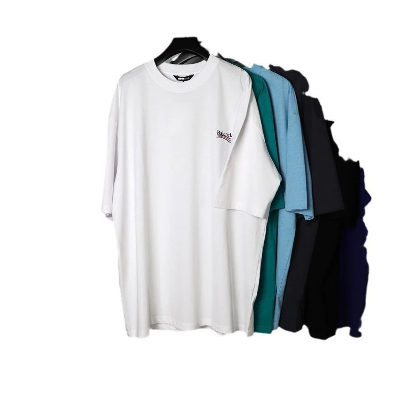 巴黎B家可乐系列海浪LOGO网红INS款男女中性宽松短袖T恤