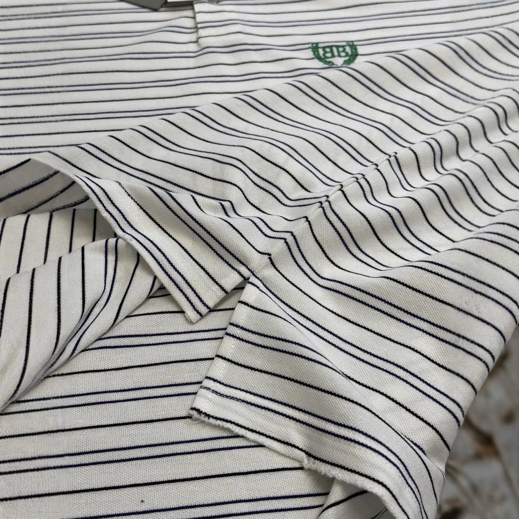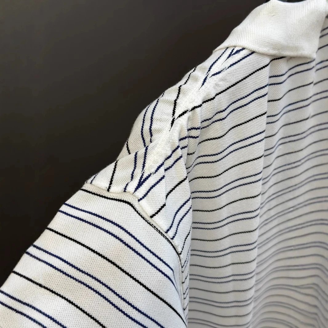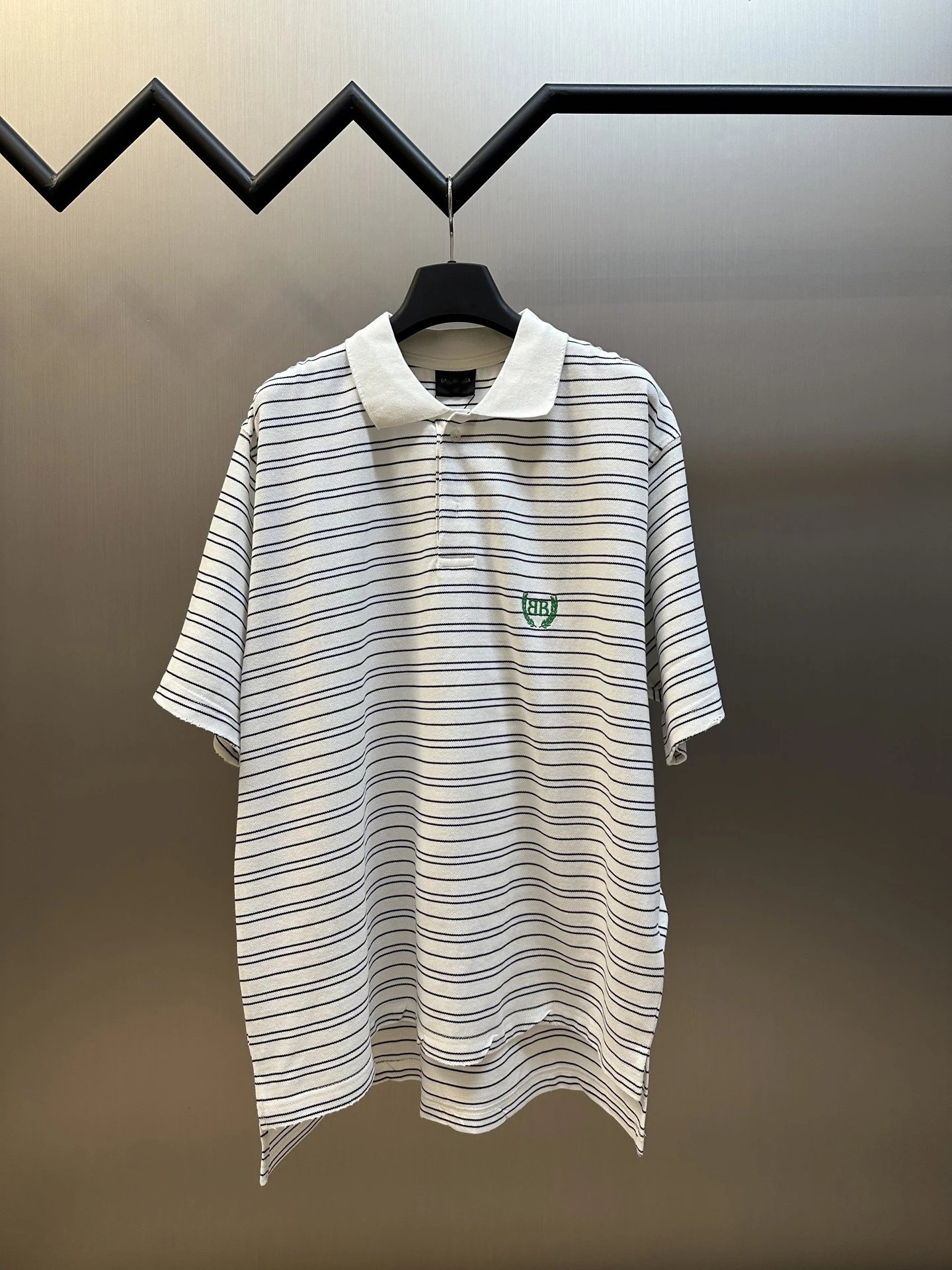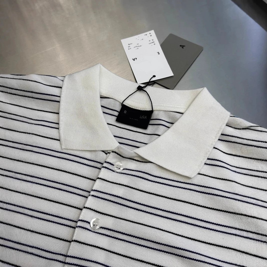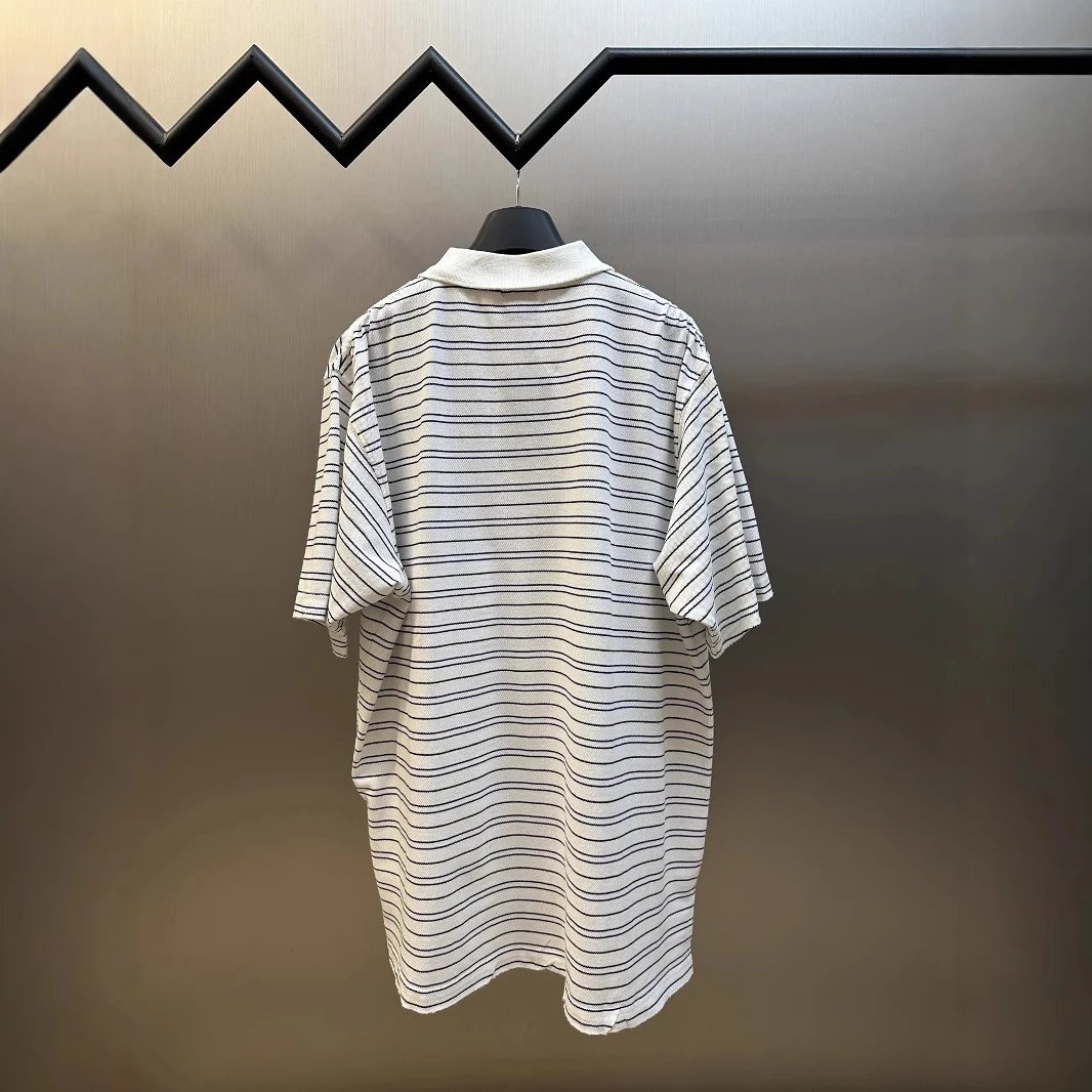 巴黎B家麦穗刺绣LOGO条纹Polo衫宽松短袖T恤男女