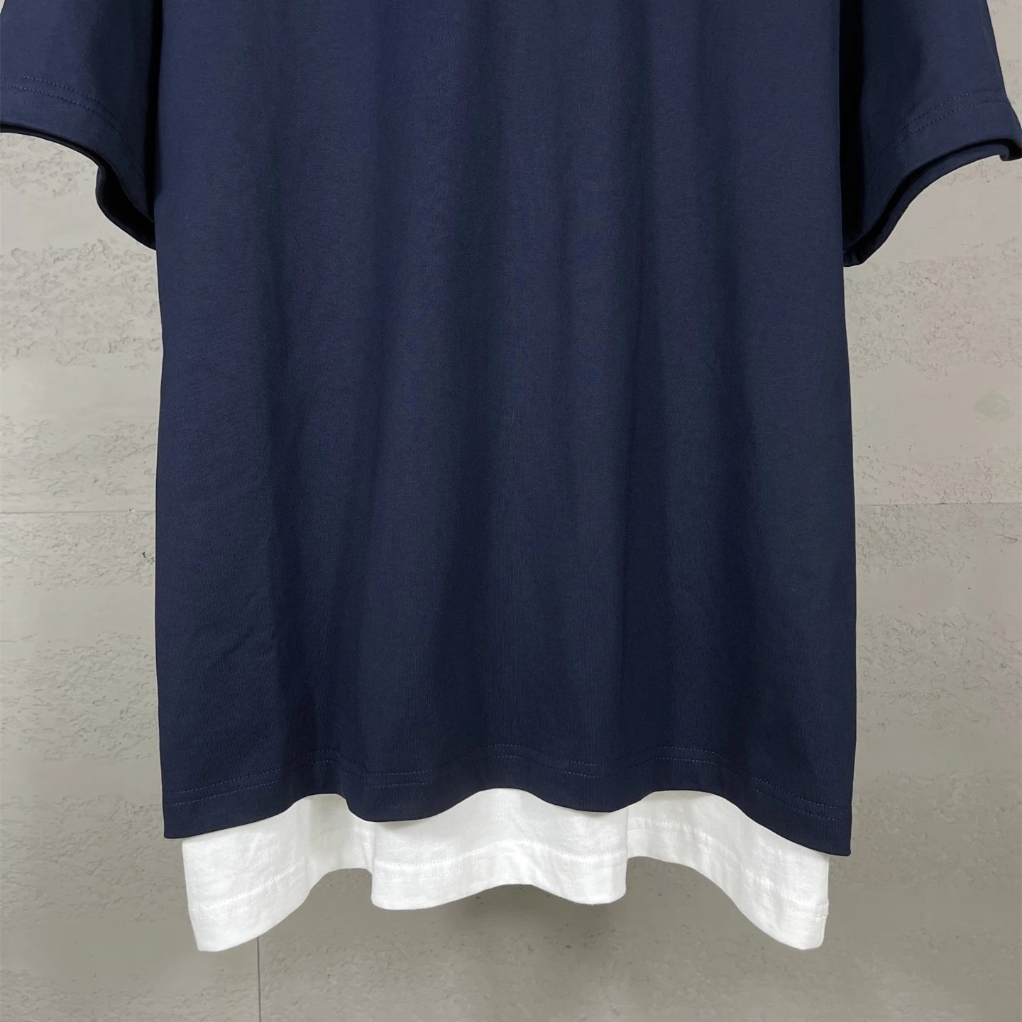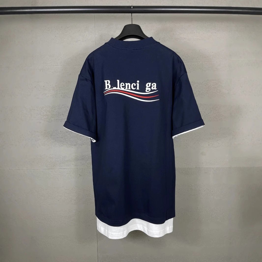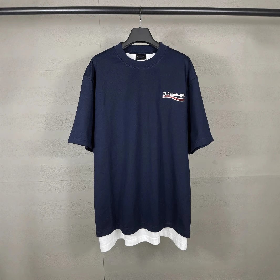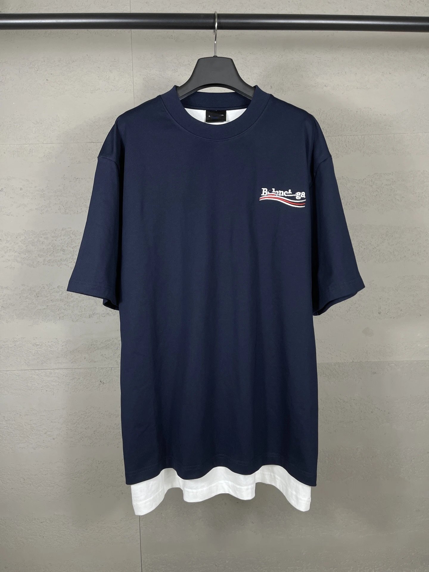 巴黎B家经典海浪花LOGO刺绣双层两件套短袖T恤男女