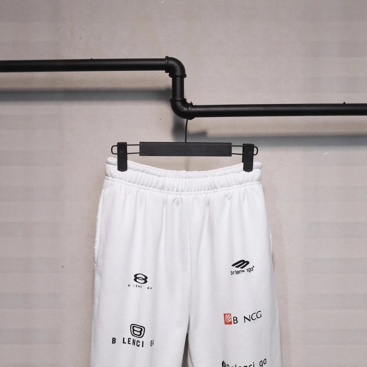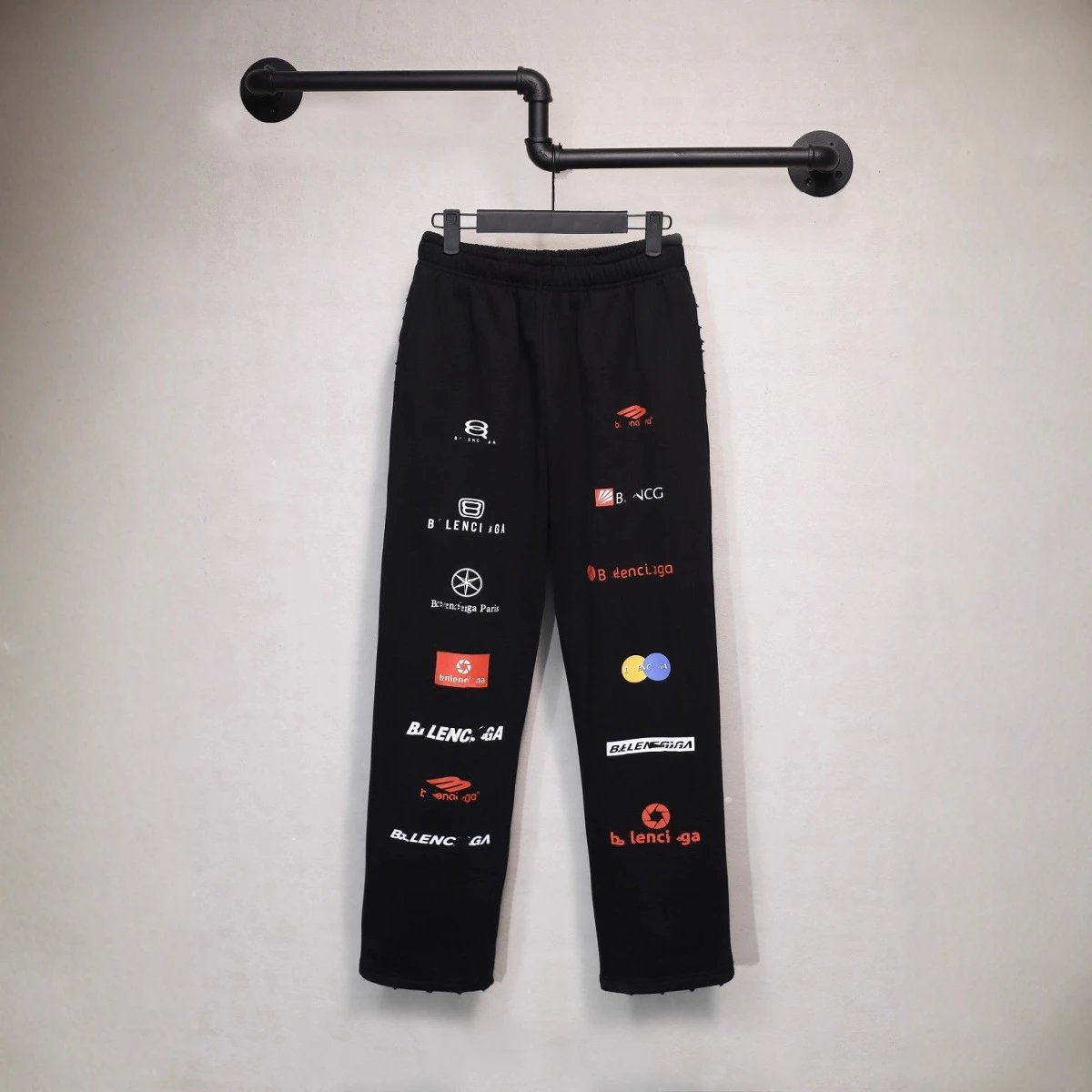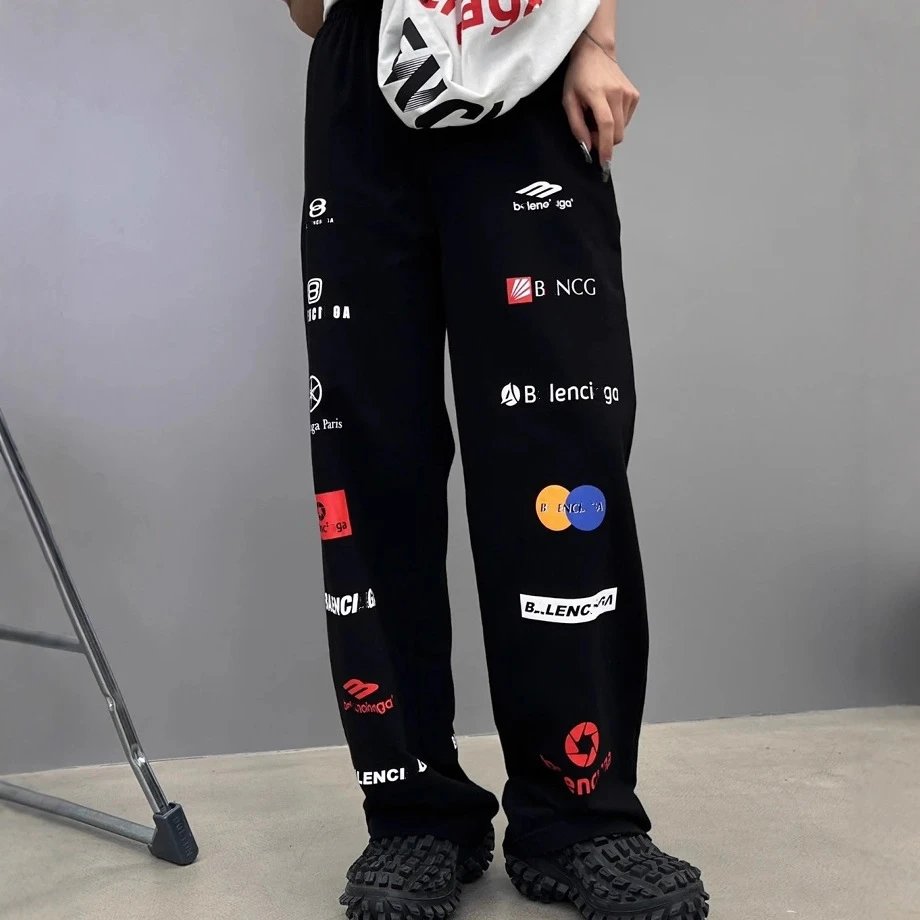 巴黎B家网红款多标满Logo赛车服长裤 字母图案印花卫裤
