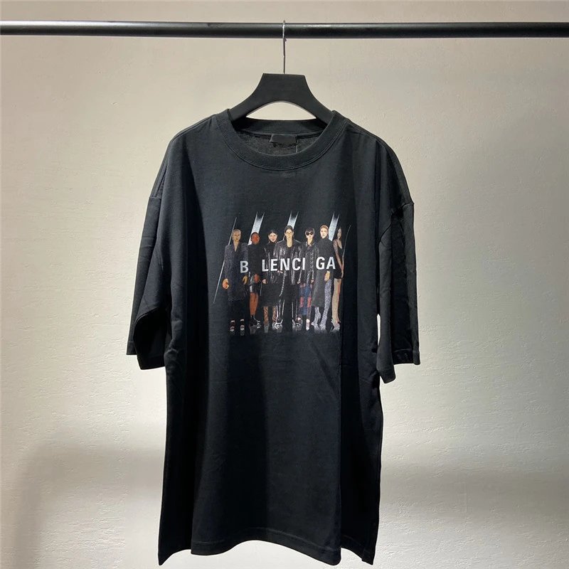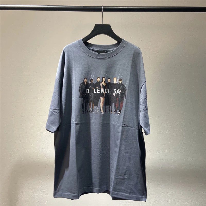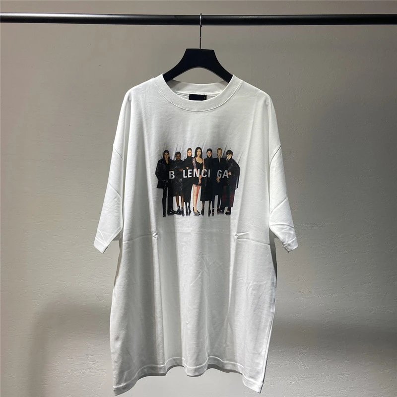 巴黎B家经典基础款乐队人像印花男女OS宽松小领口短袖T恤