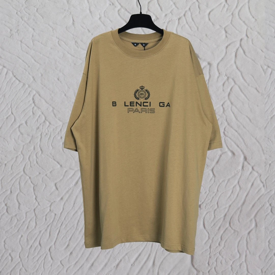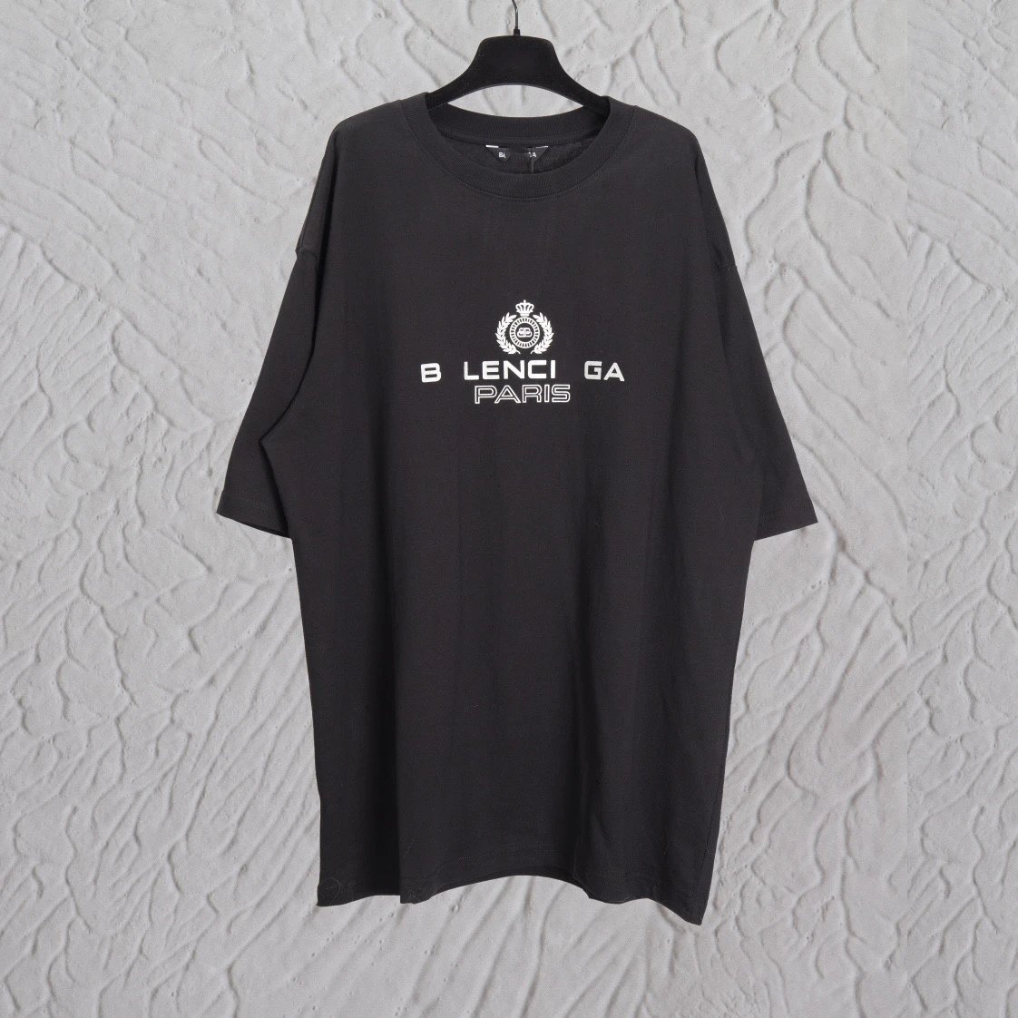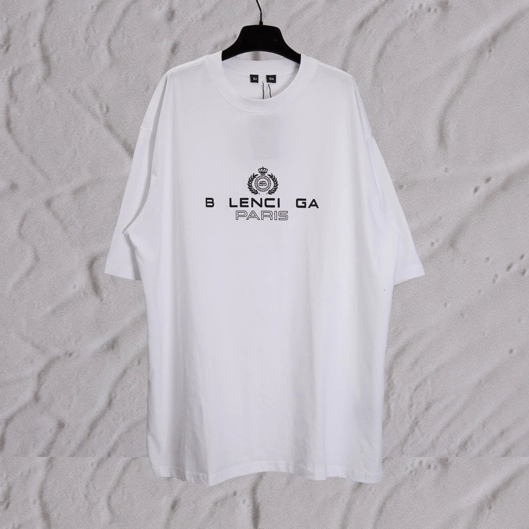 夏季新款巴黎B家麦穗皇冠印花男女OS宽松小领口短袖T恤