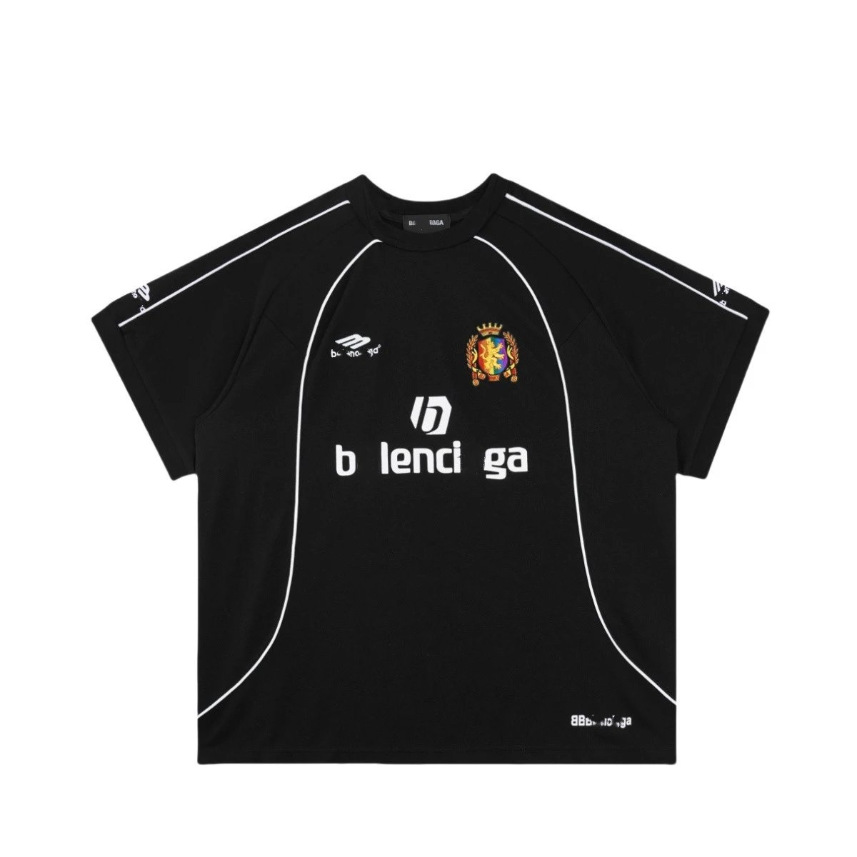 巴黎B家联名款曼联足球刺绣球服宽松男女休闲运动服短袖T恤