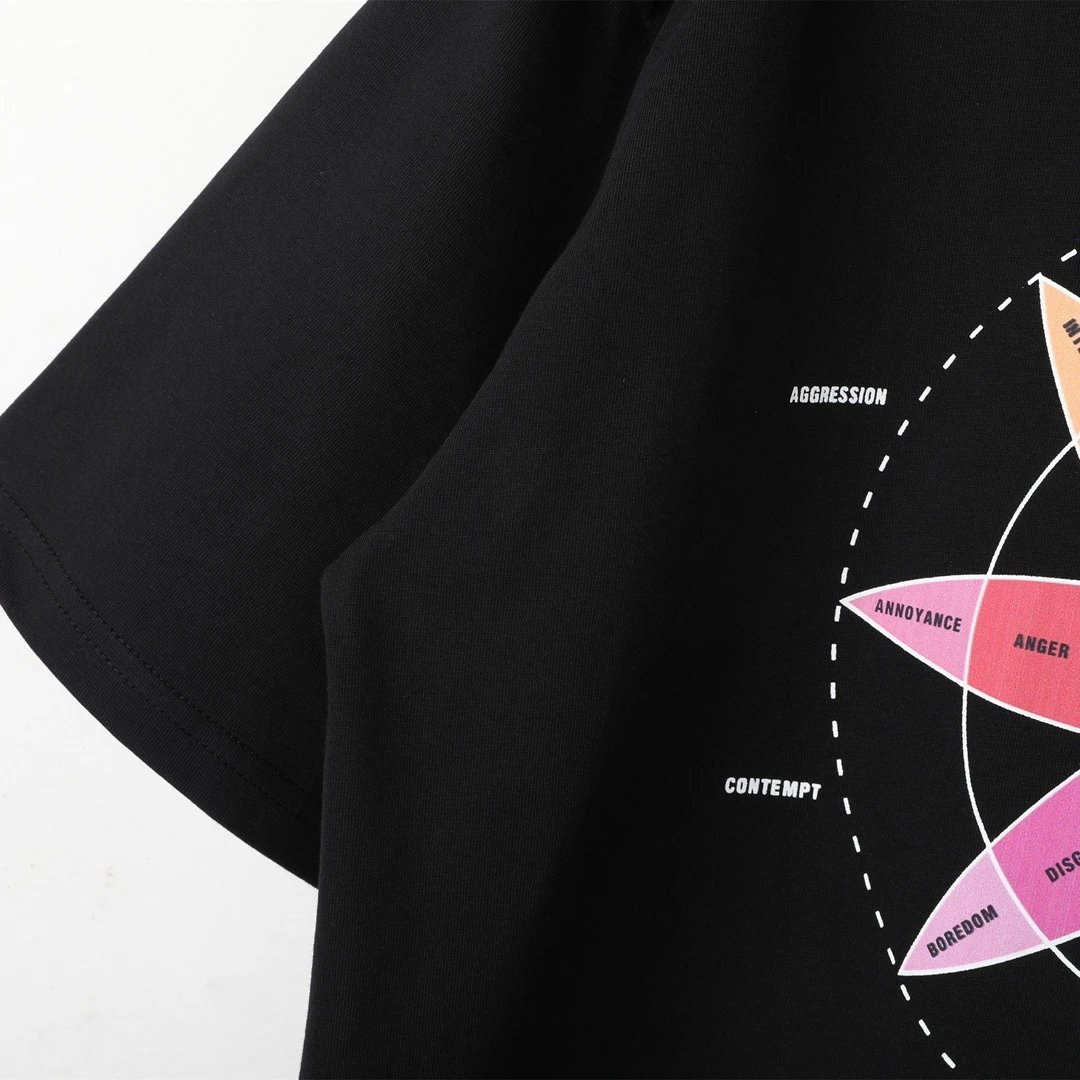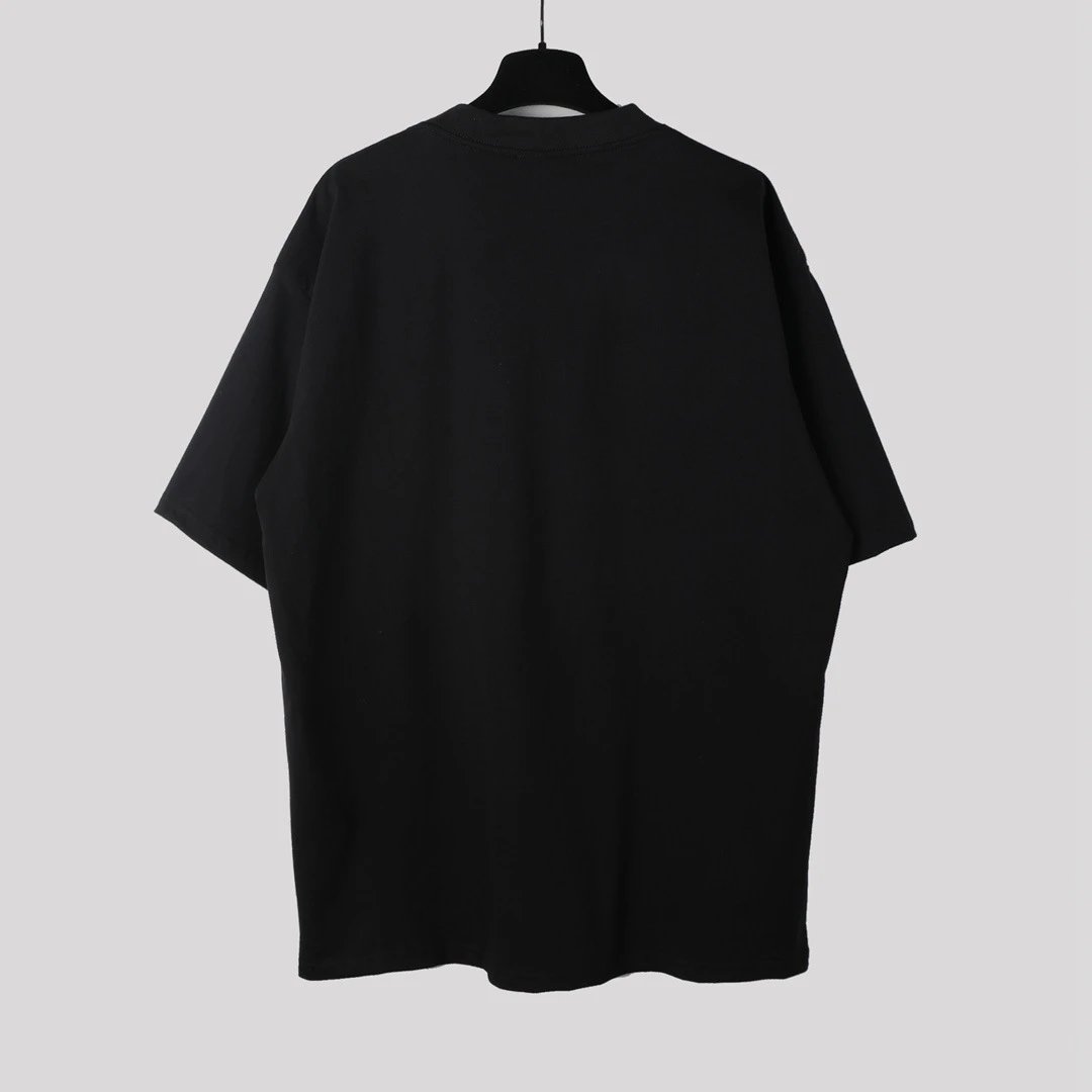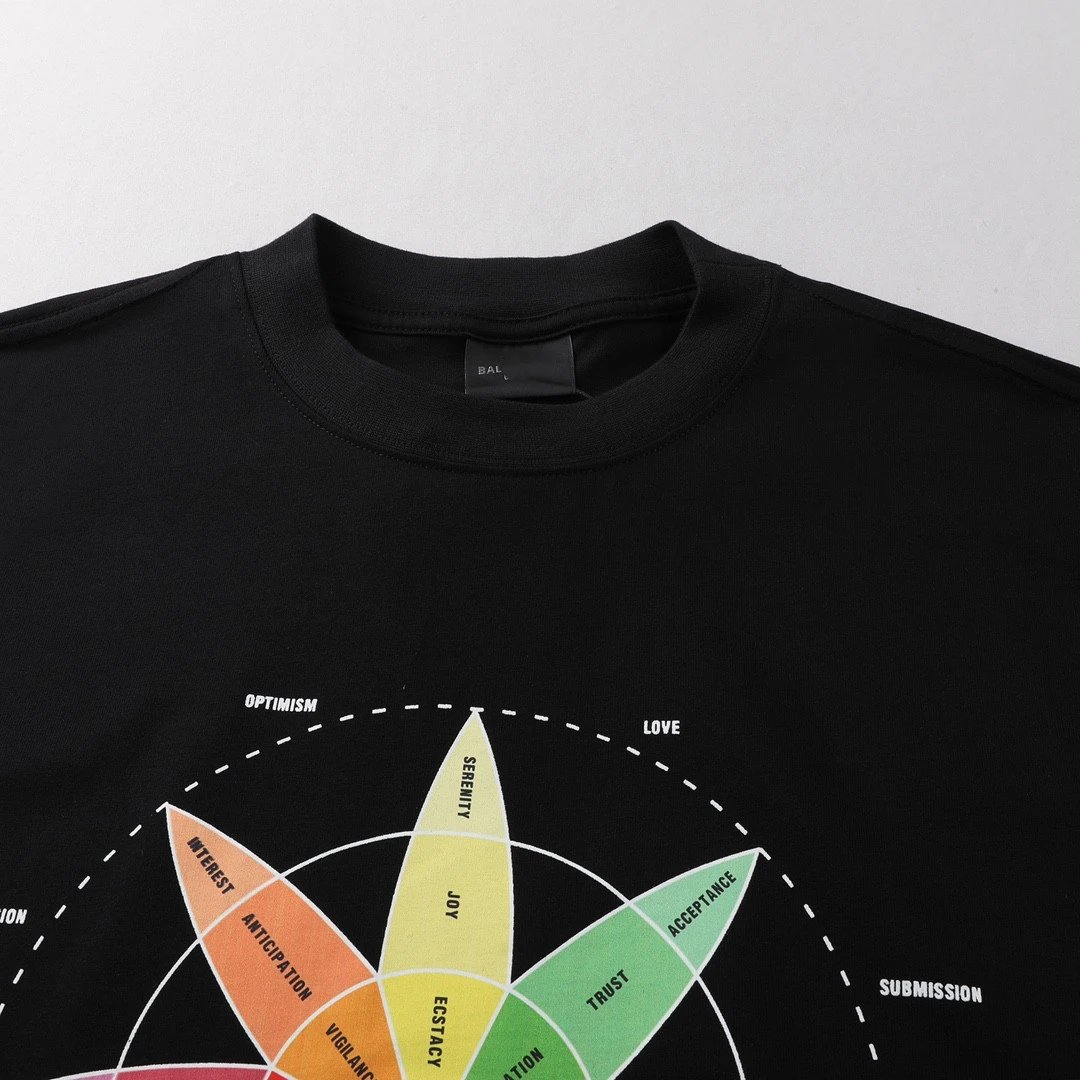 巴黎B家网红款罗盘色卡印花男女小领口短袖T恤上衣