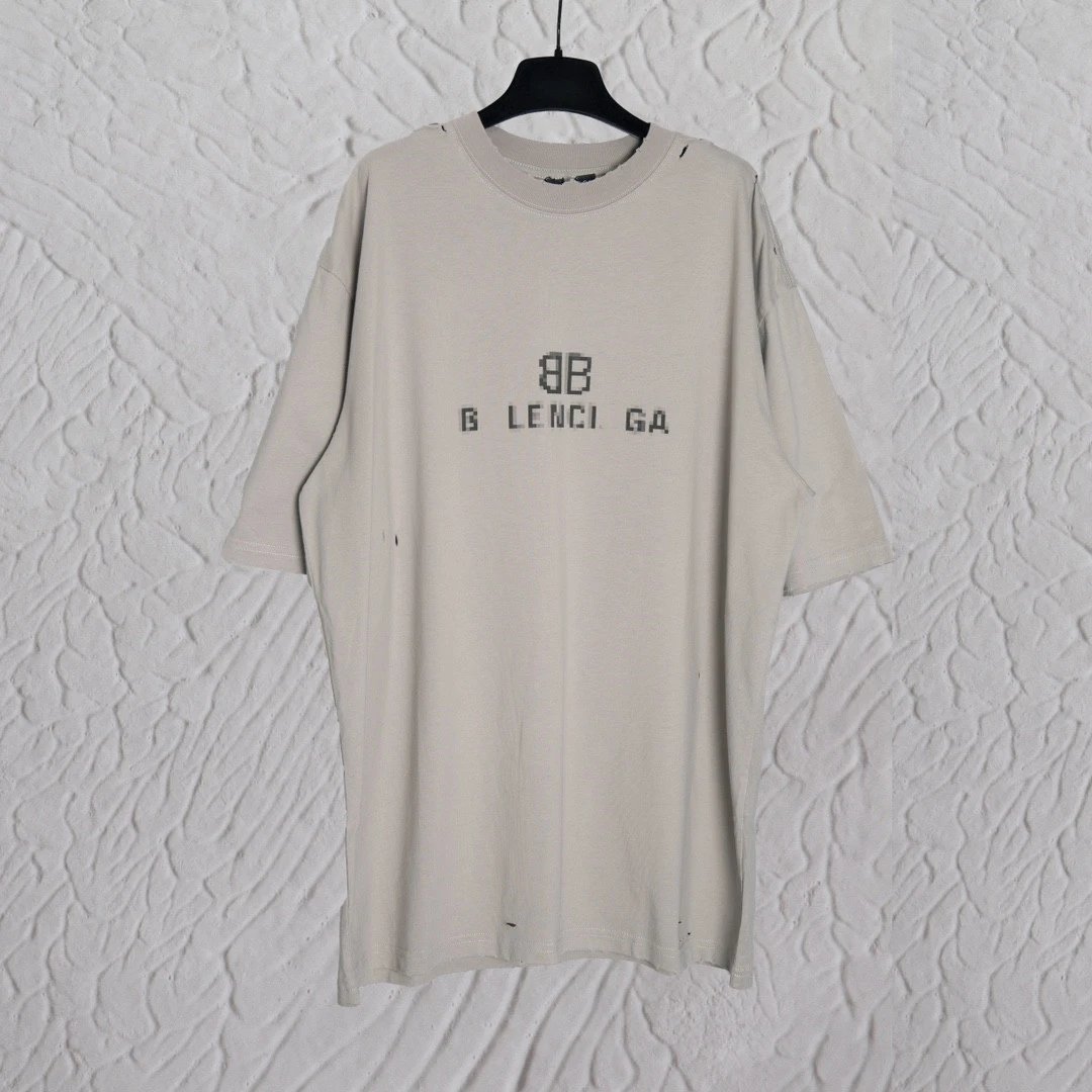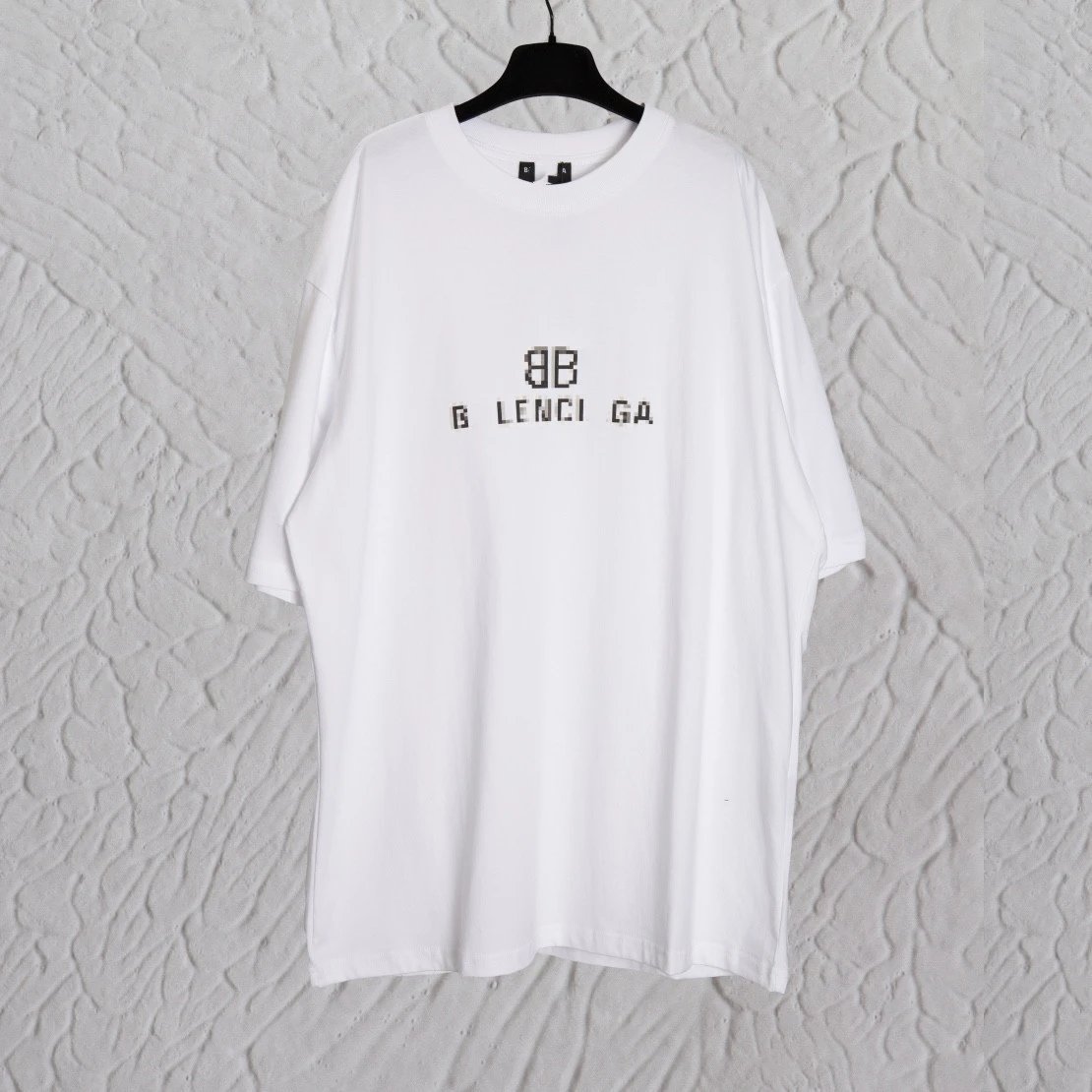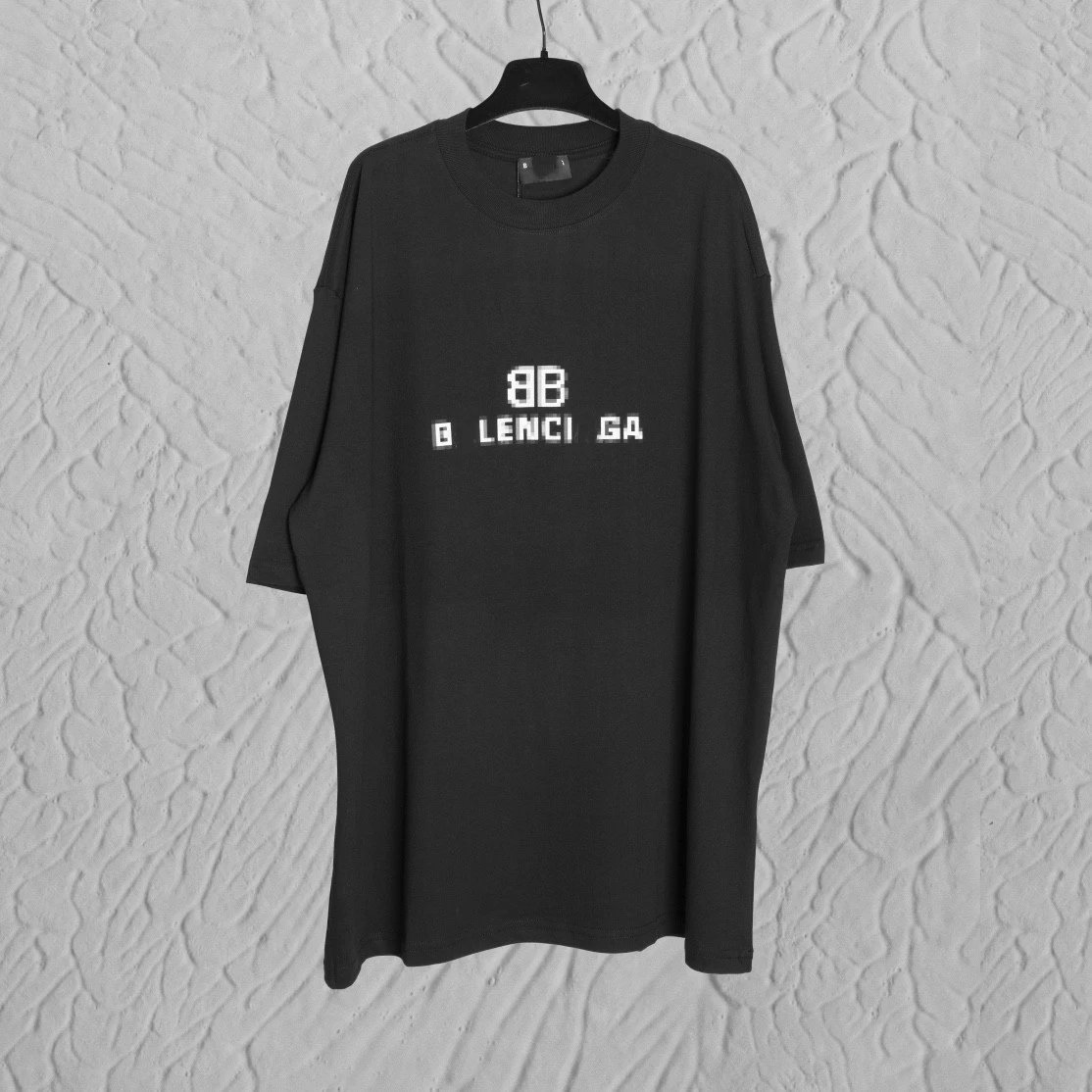 夏季新款巴黎B家马赛克字母印花网红款男女小领口短袖T恤