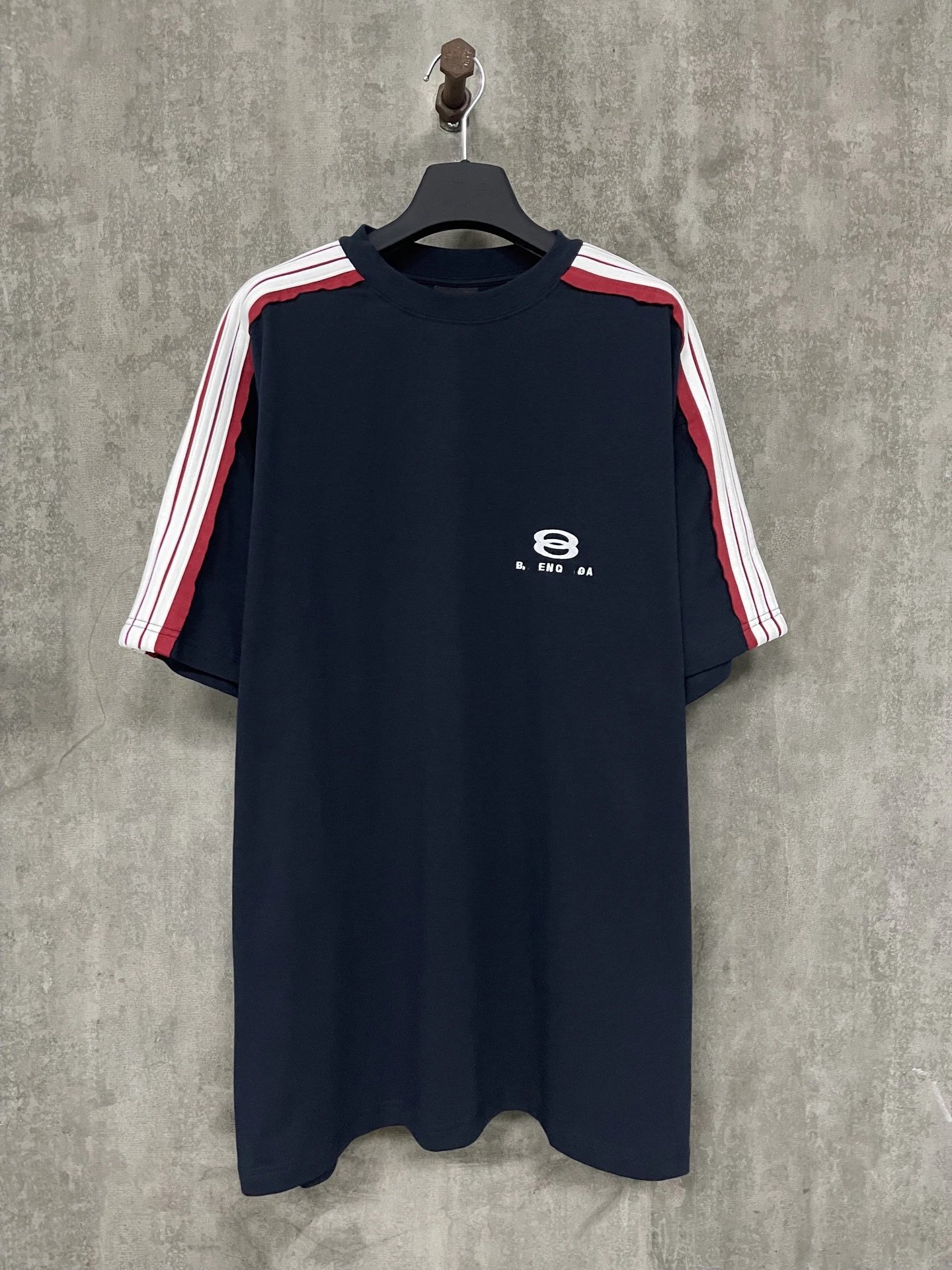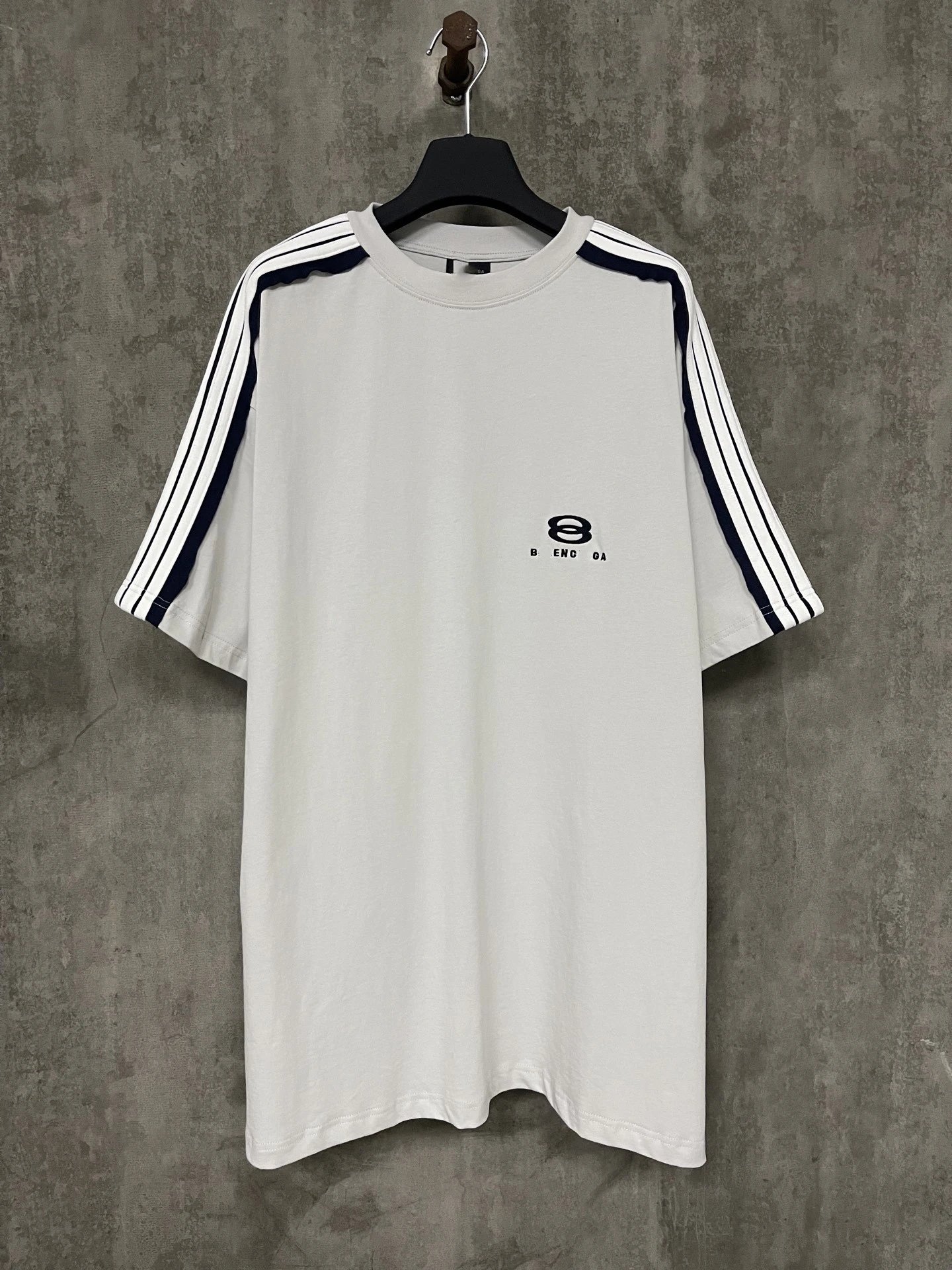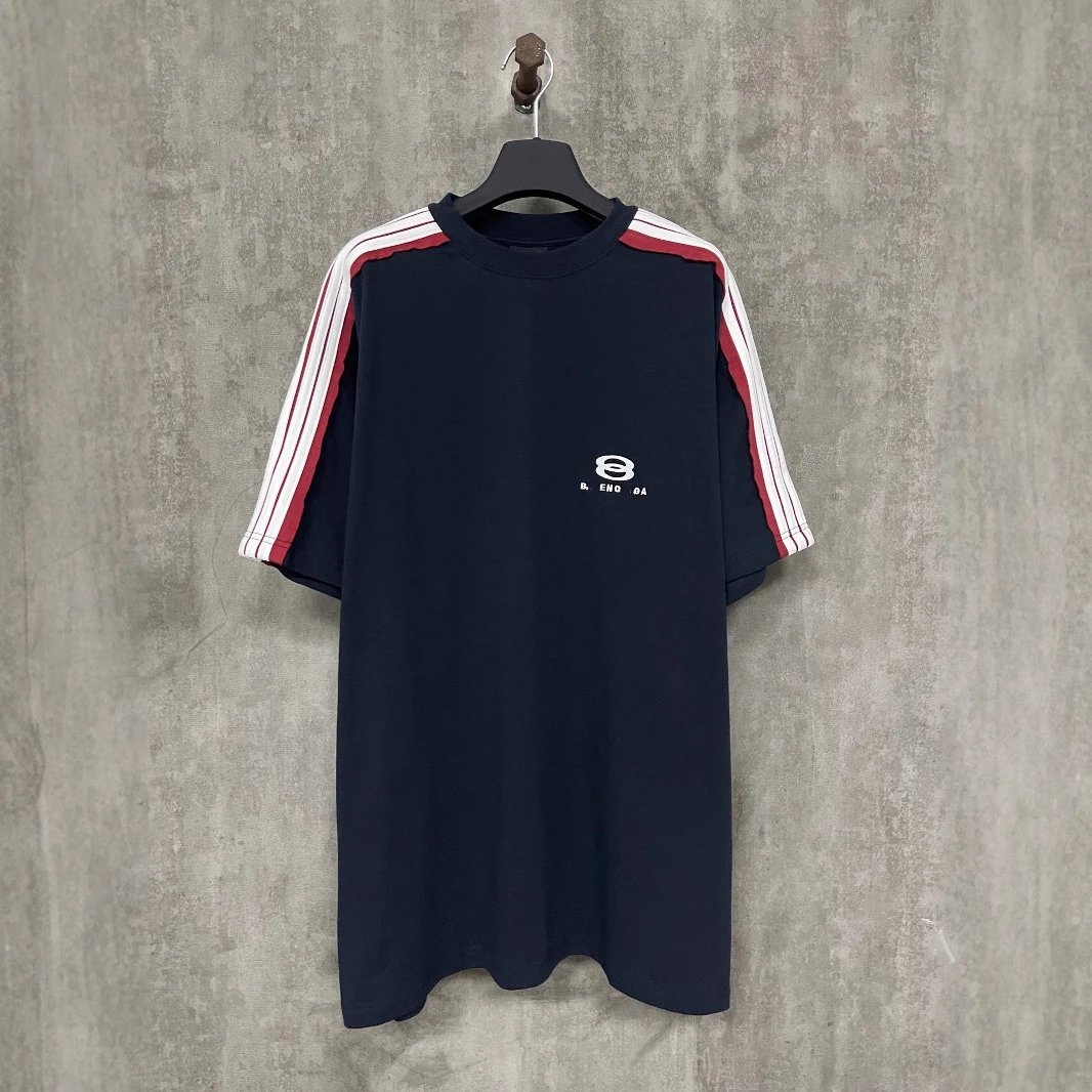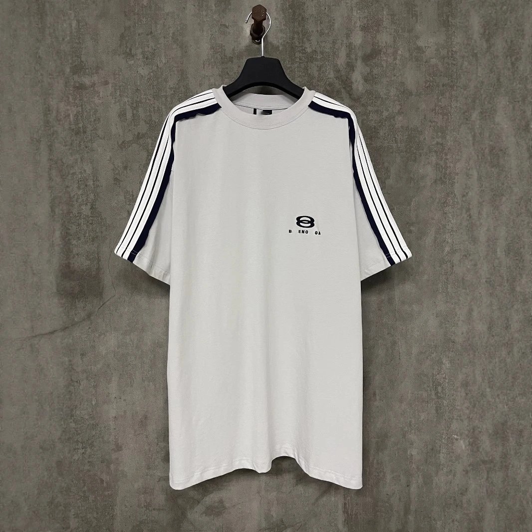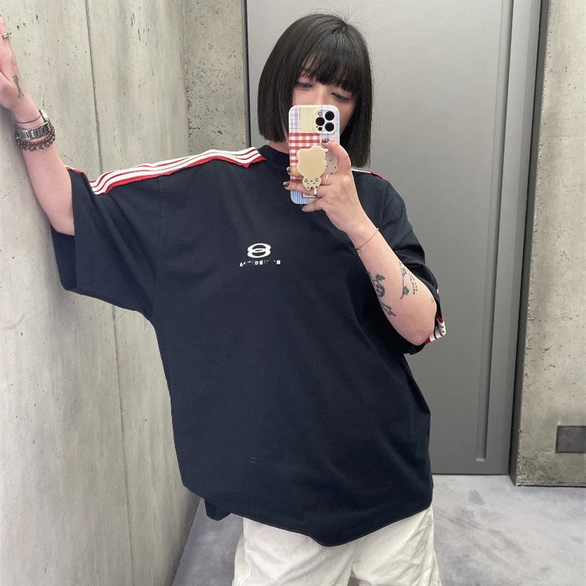 南油巴黎B家新款双环拼色条纹宽松大版型短袖T恤男女上衣