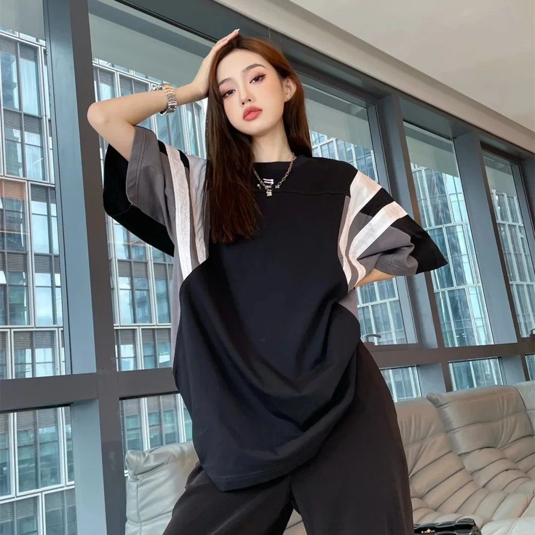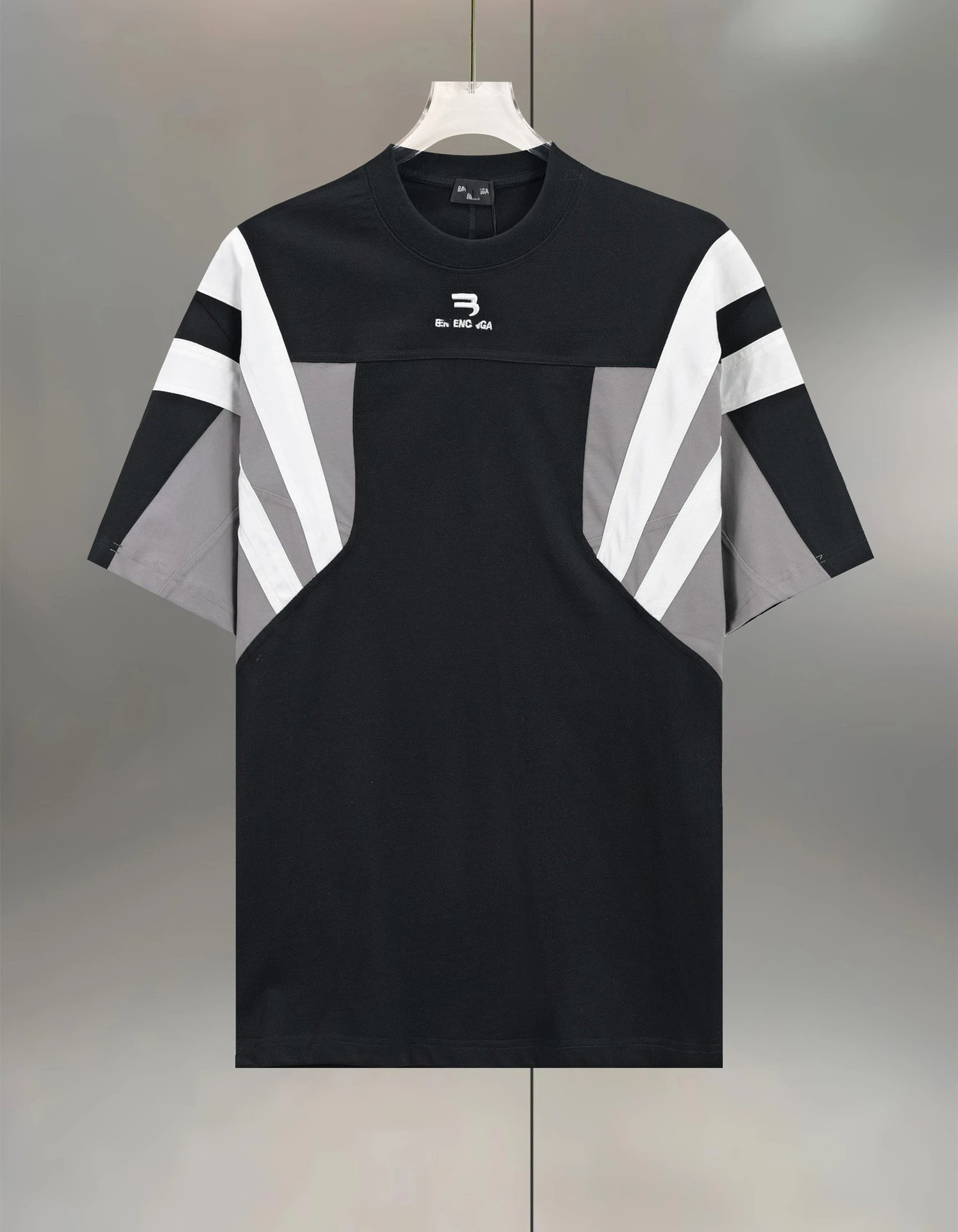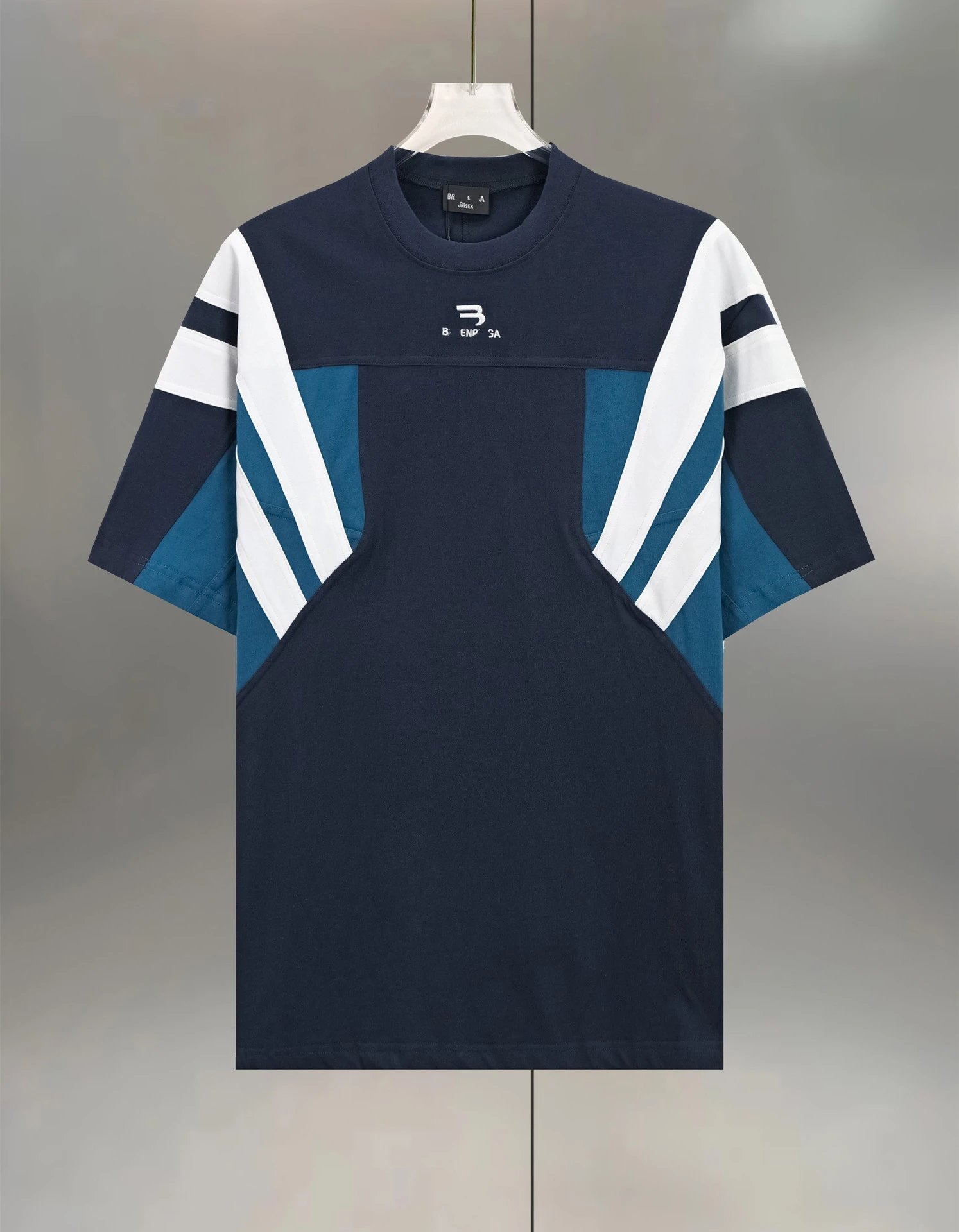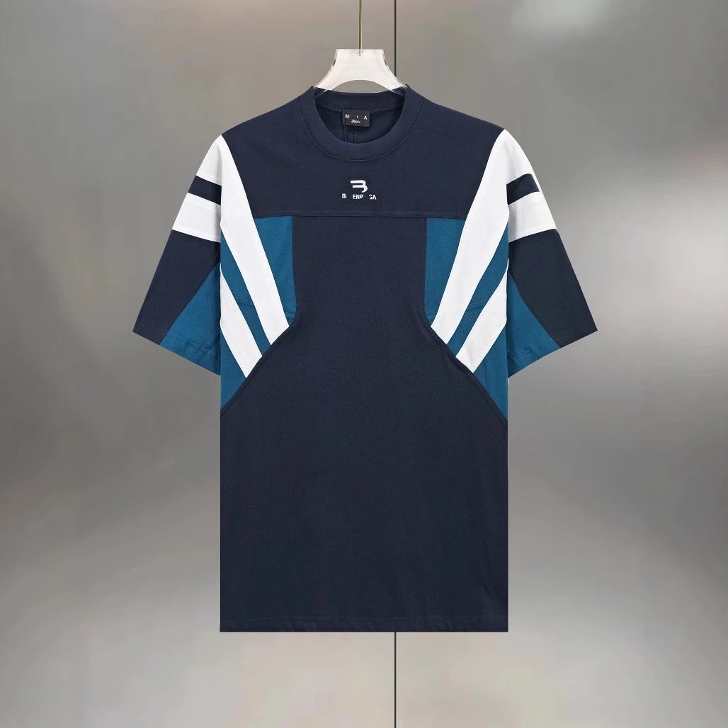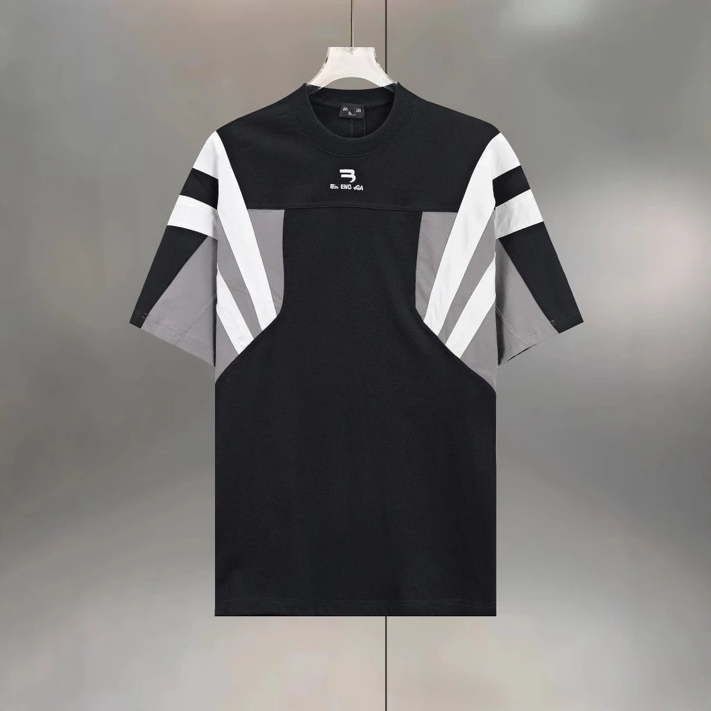 巴黎B家网红款双勾刺绣撞色拼接拼色宽松廓形短袖T恤男女