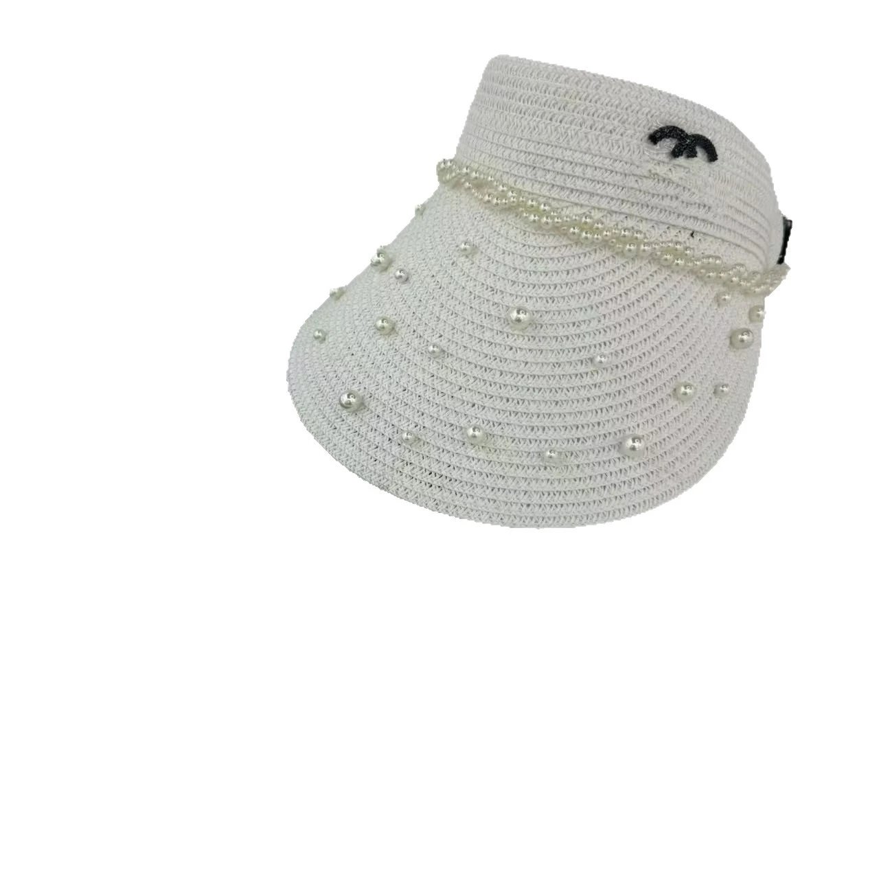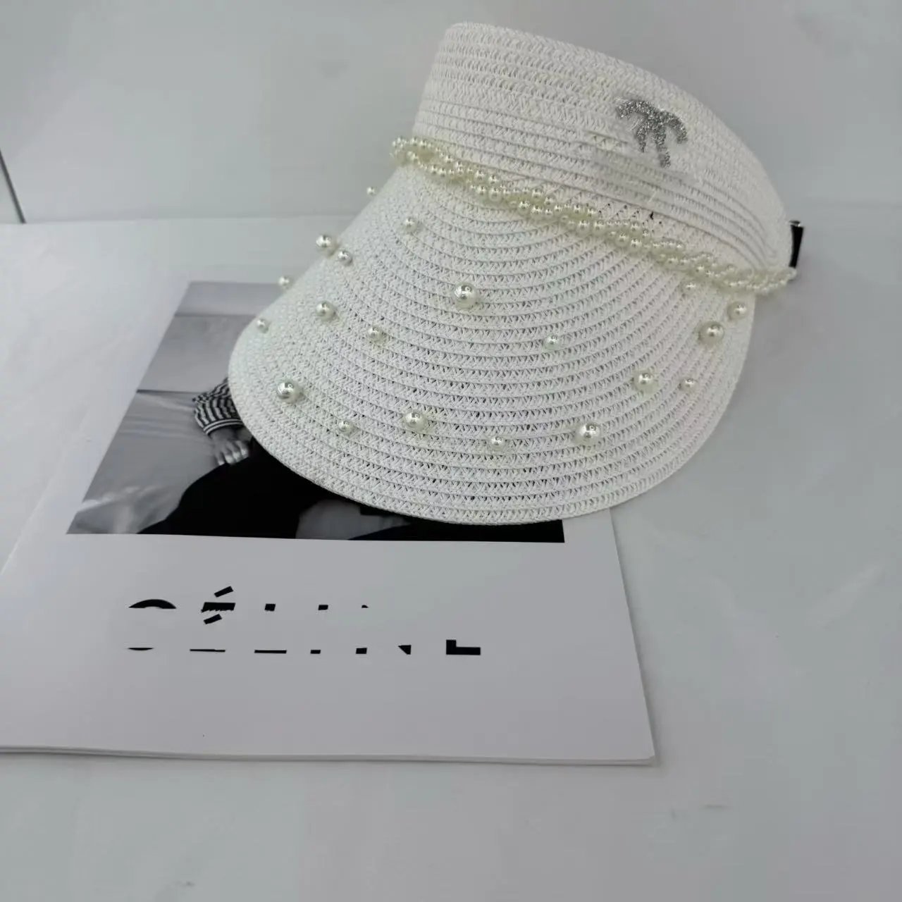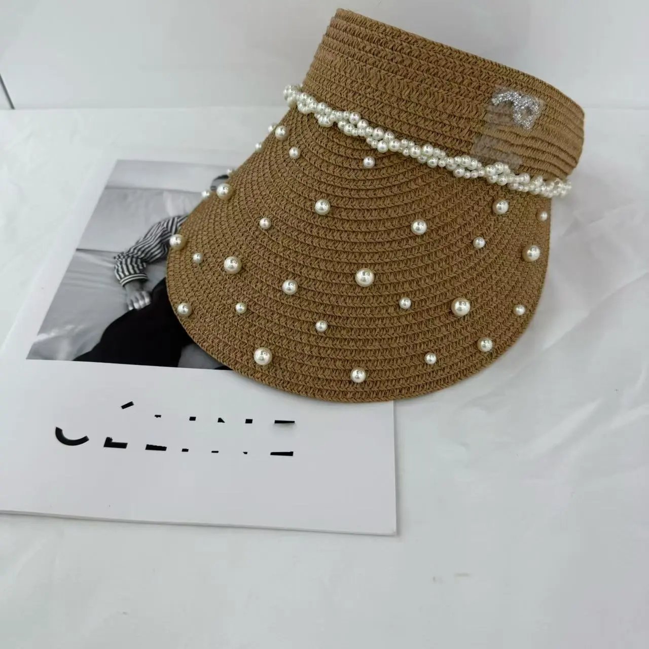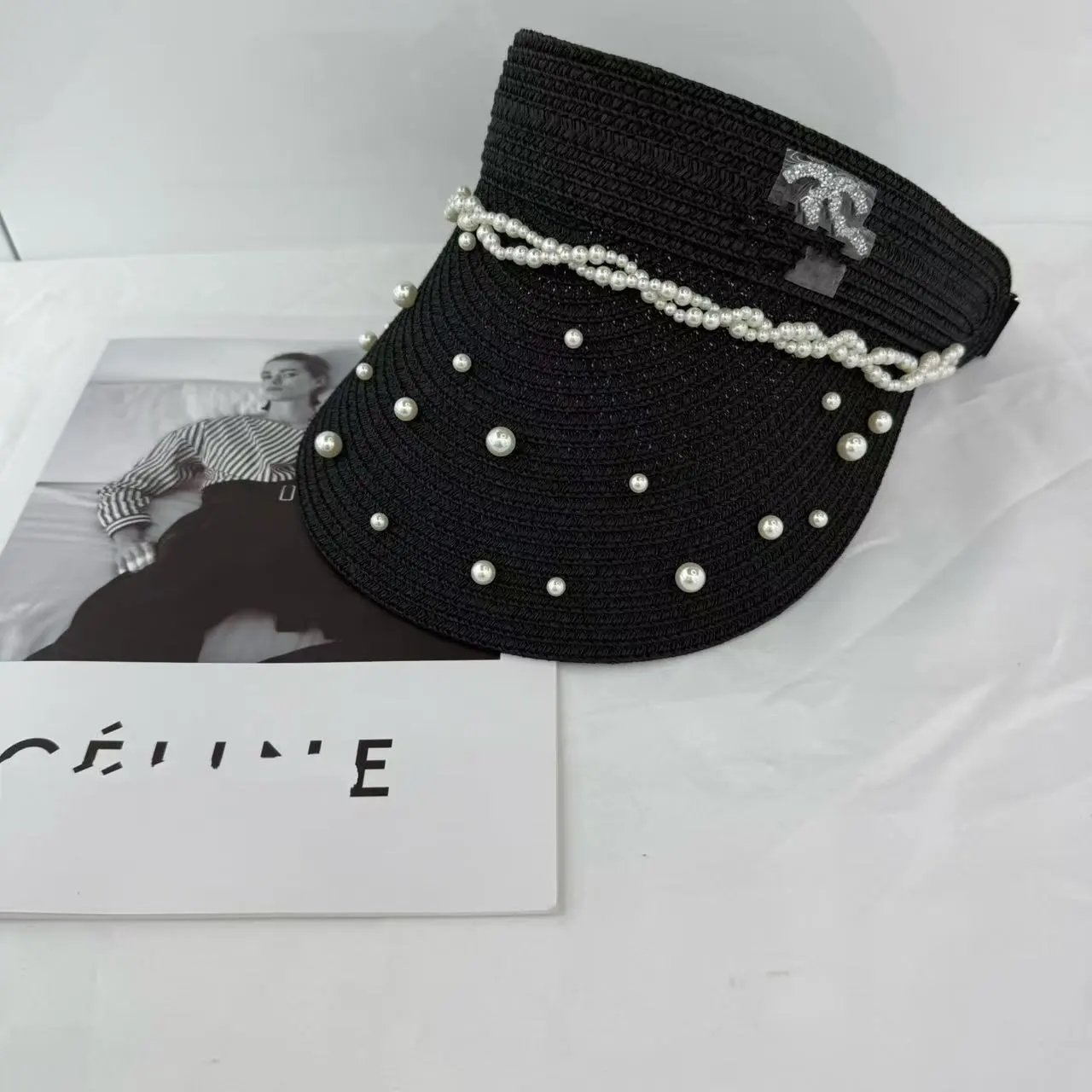 C家法式优雅气质草编空顶帽子女夏季钉珠遮阳帽显脸小防晒太阳帽