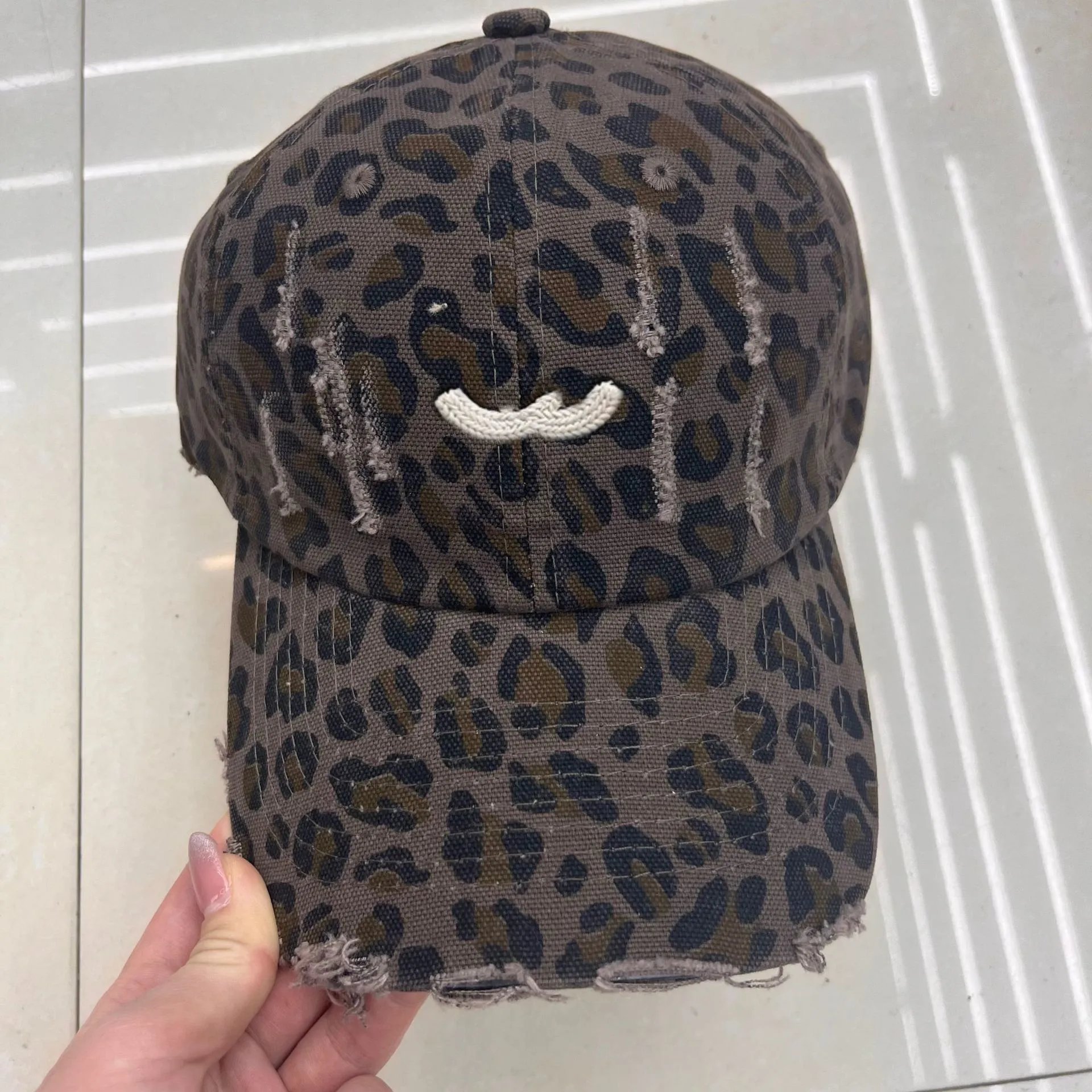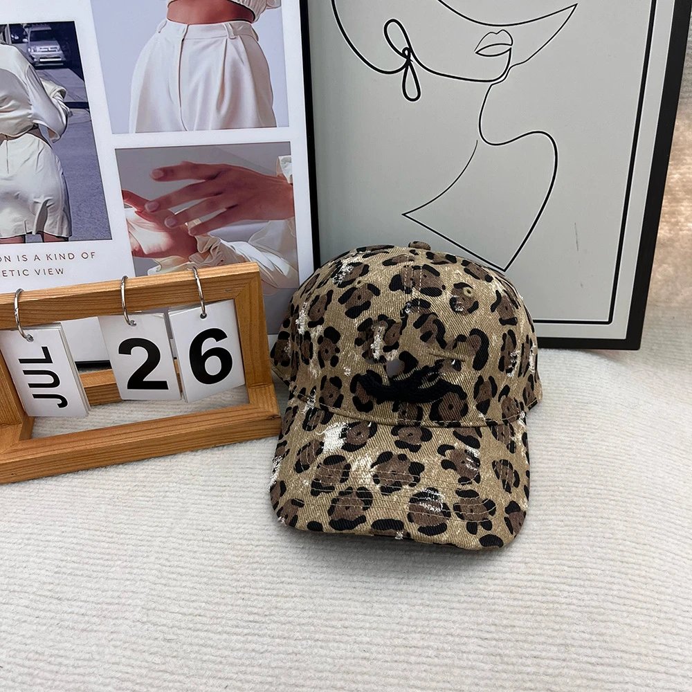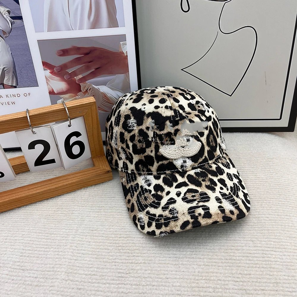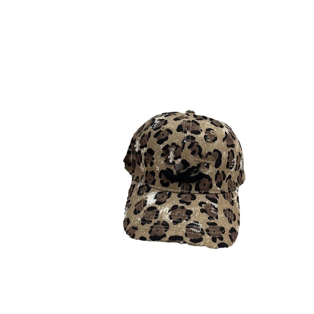 小香鸭舌帽双C豹纹破洞磨毛鸭舌帽女加大加深新款帽子