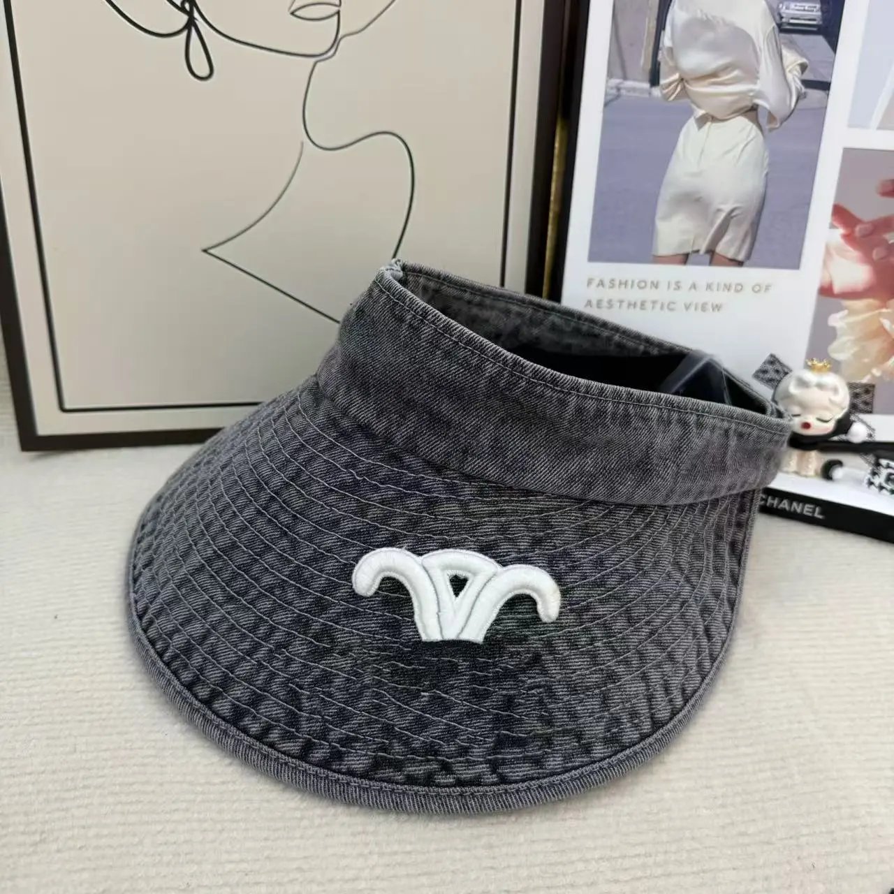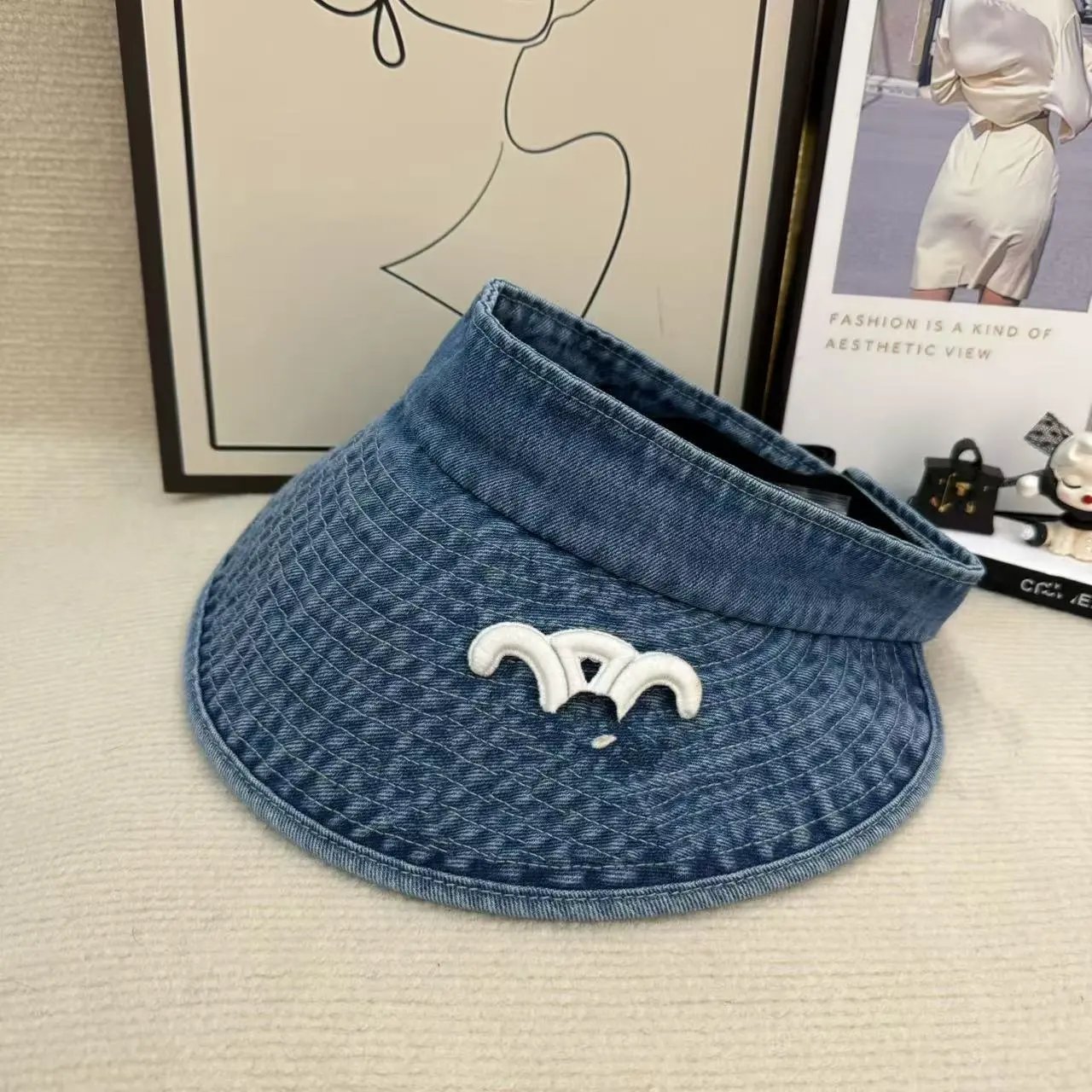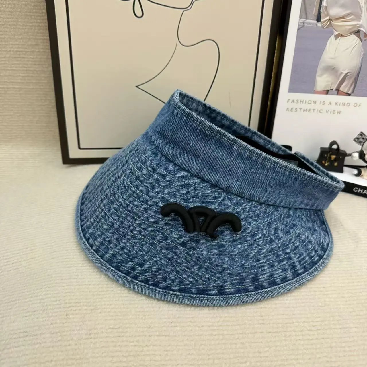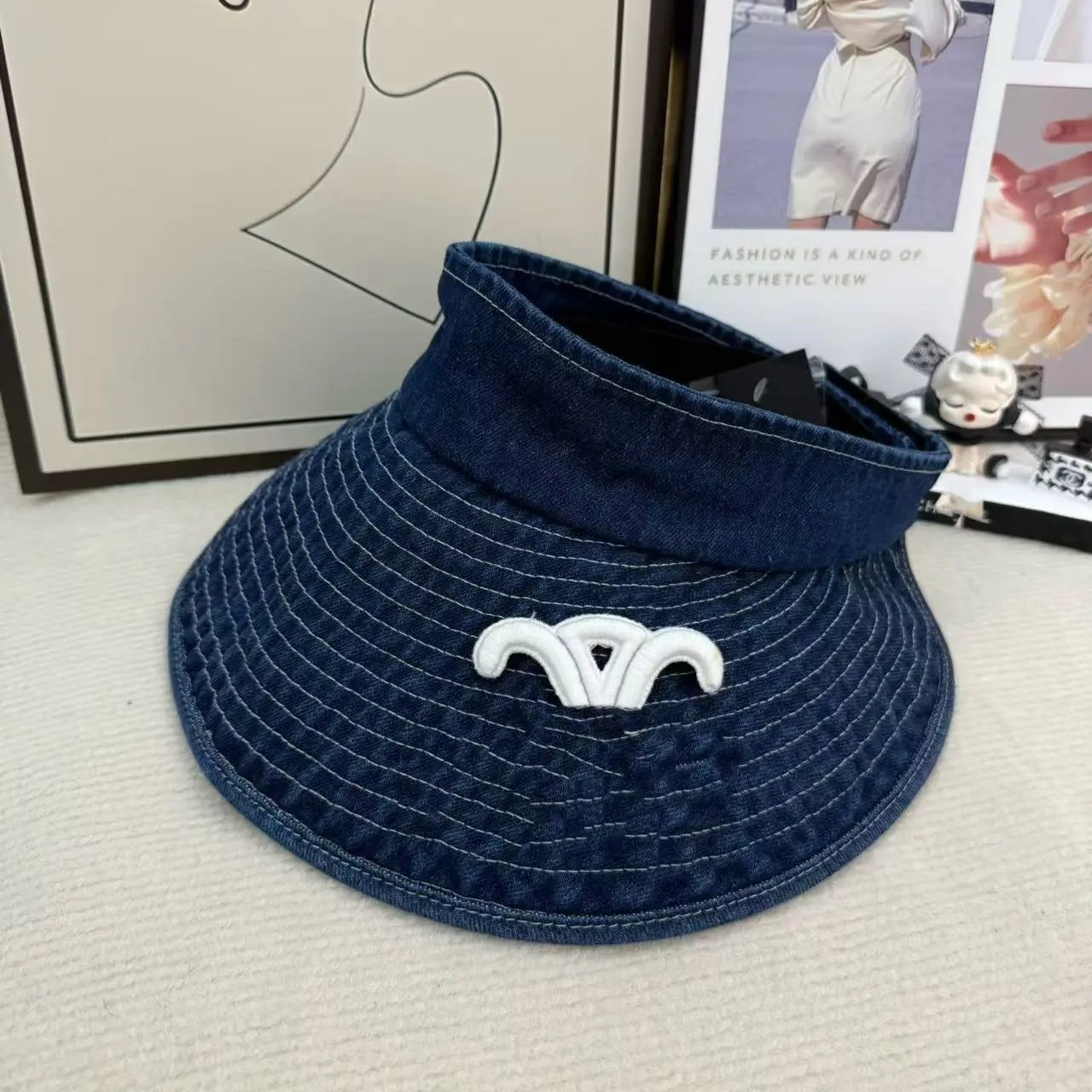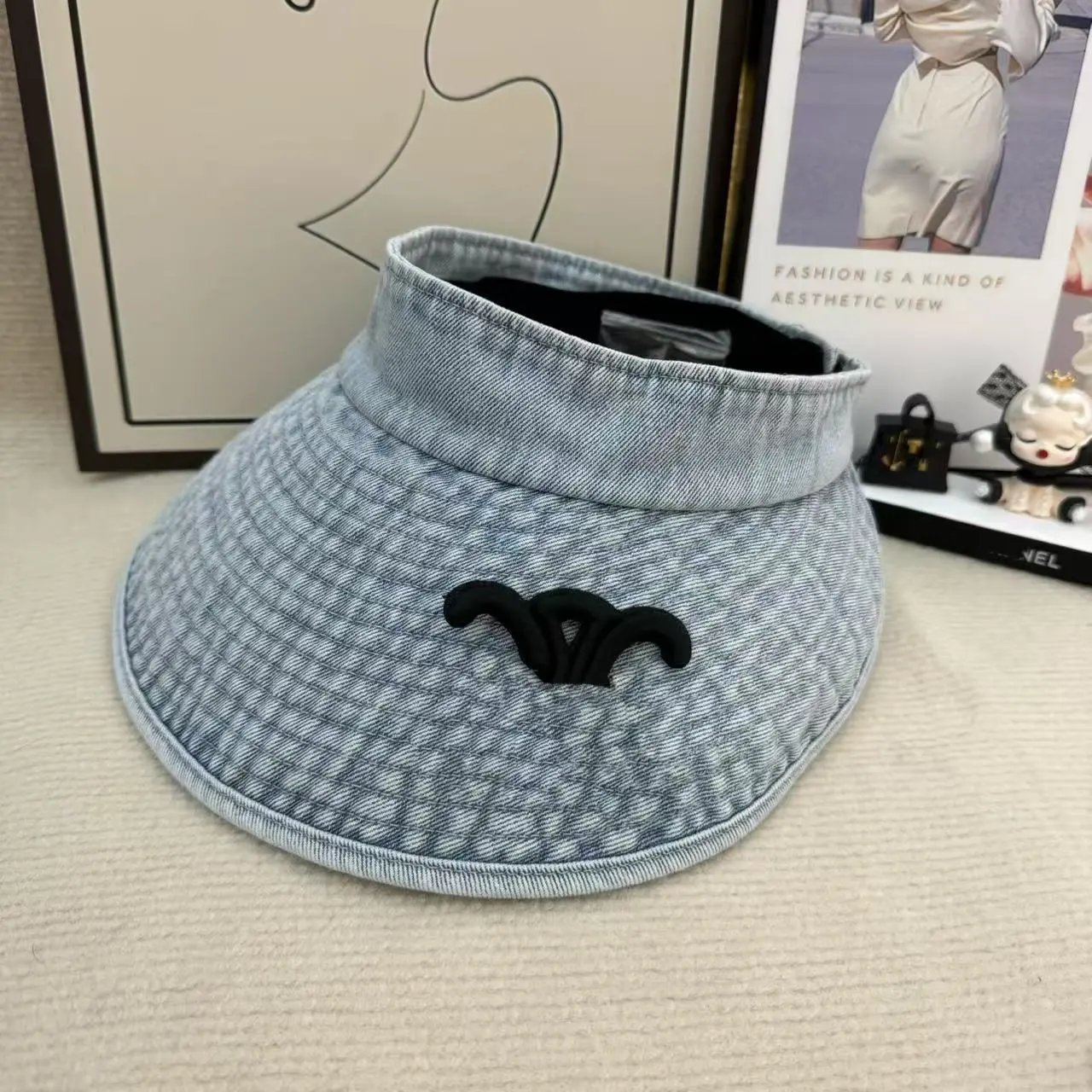 CE 字母牛仔空顶帽女户外休闲百搭遮阳帽超大檐极简防晒帽