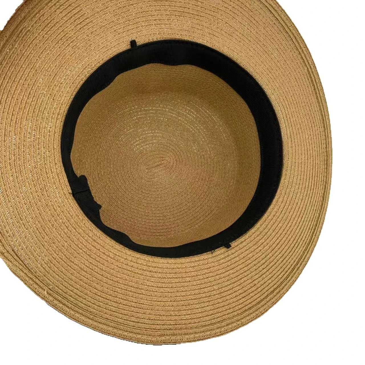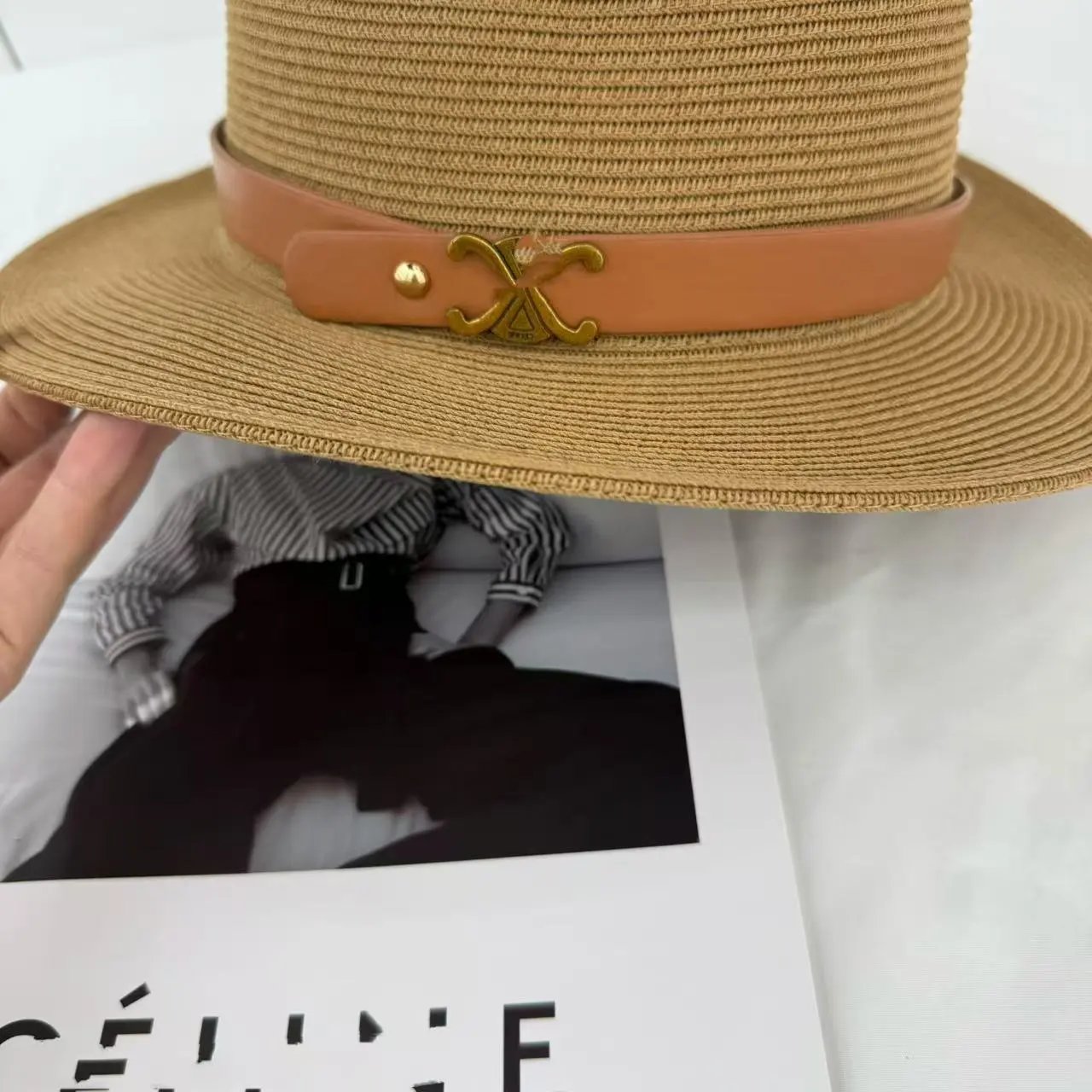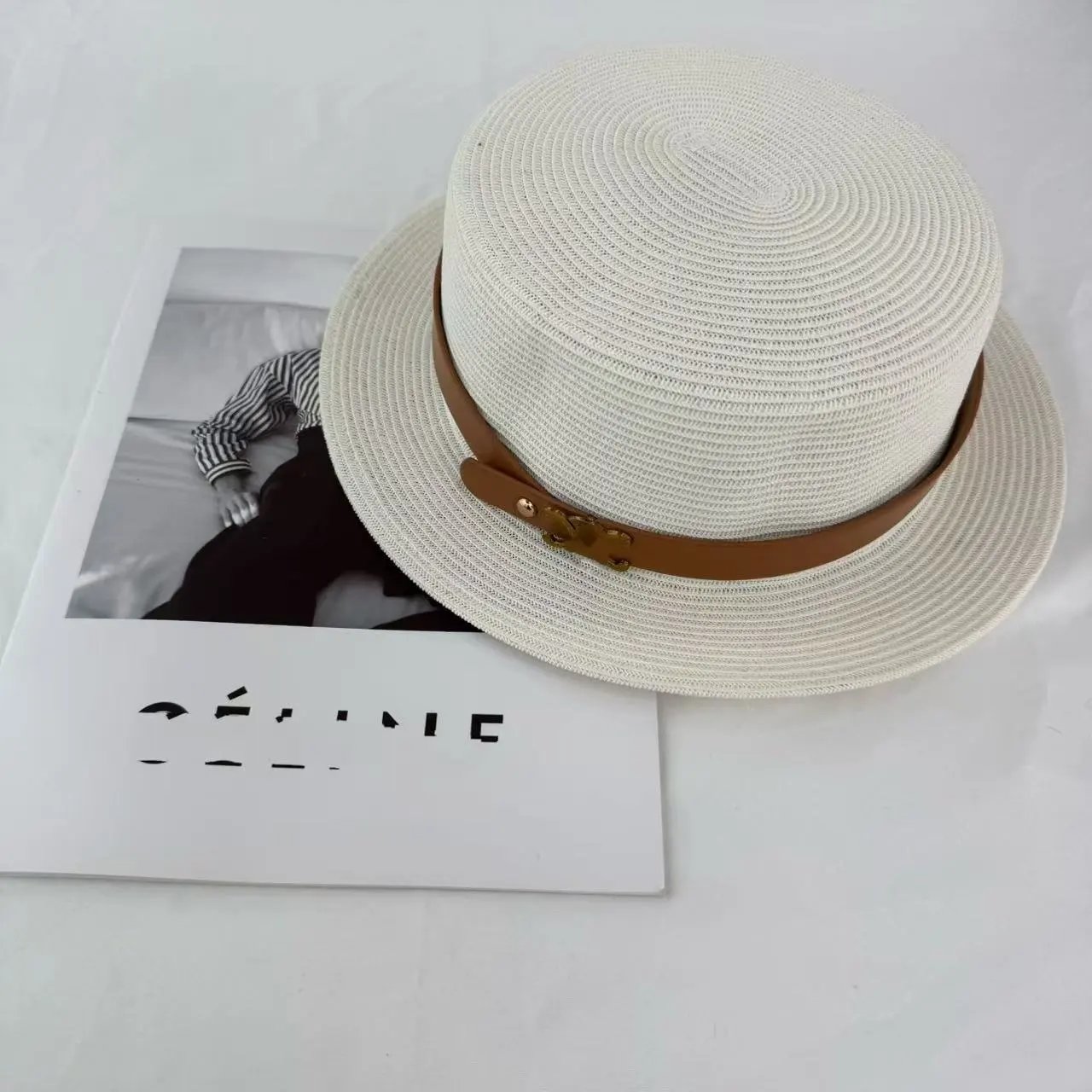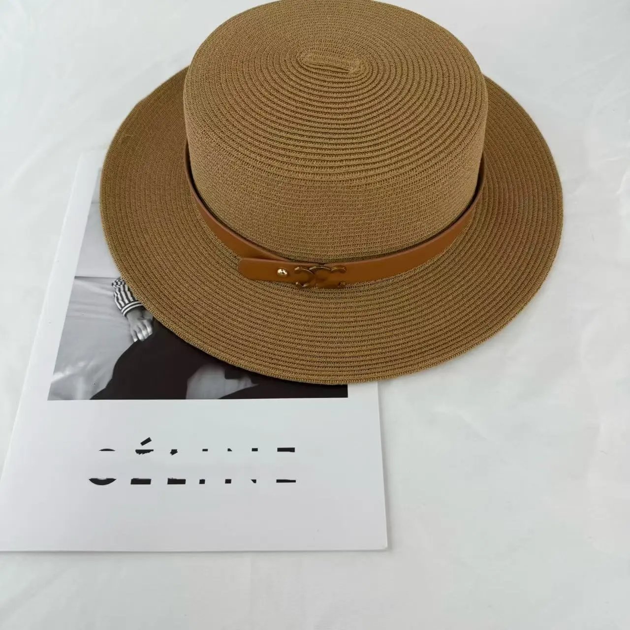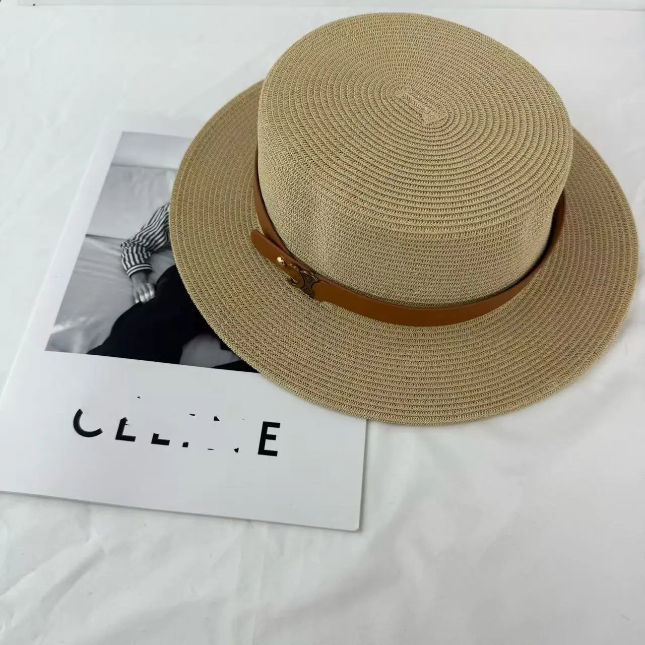 简约英伦风CE家草编宽檐防晒平顶礼帽法式复古简约出游沙滩遮阳帽