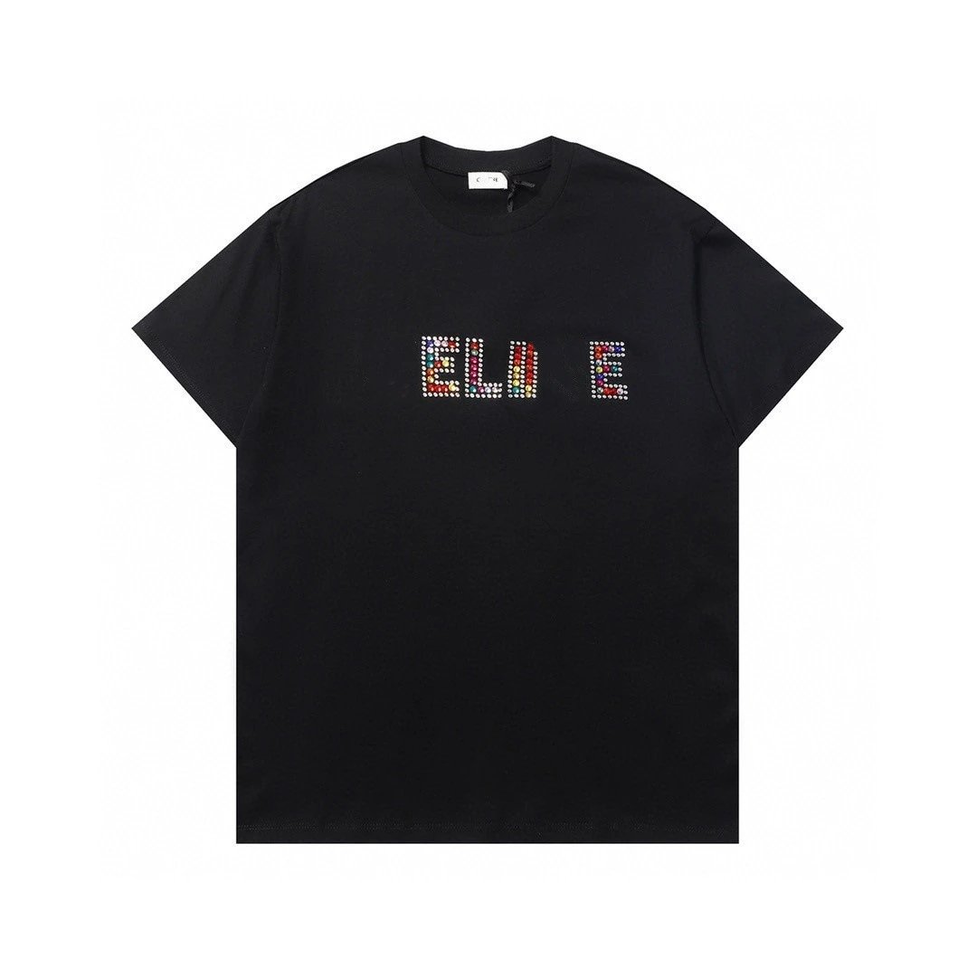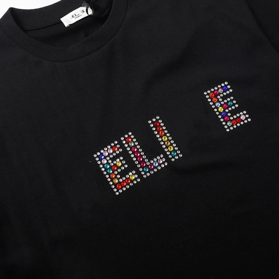 夏季新款CEL家网红款彩色水钻字母图案高克重短袖T恤男女