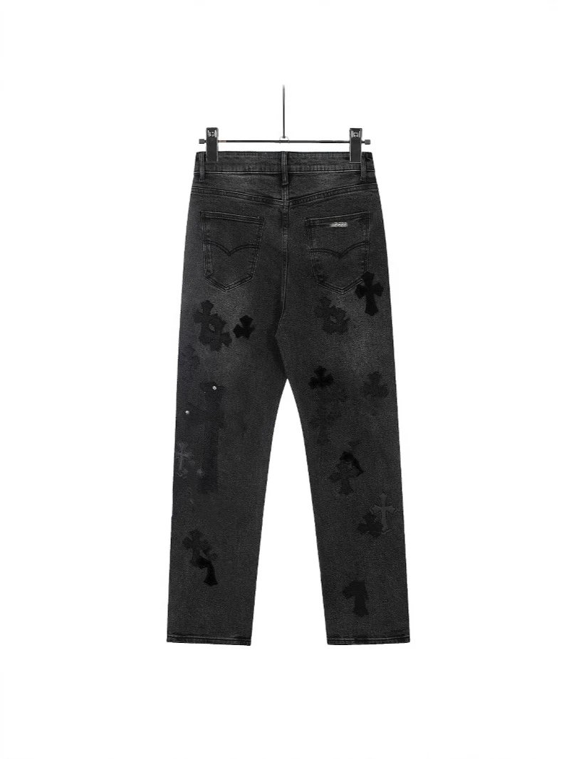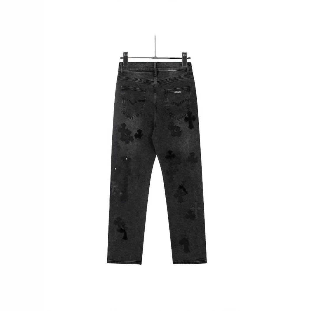 欧美高街CH金属贴皮十字架炒雪花黑伦敦牛王限定牛仔裤男女同款
