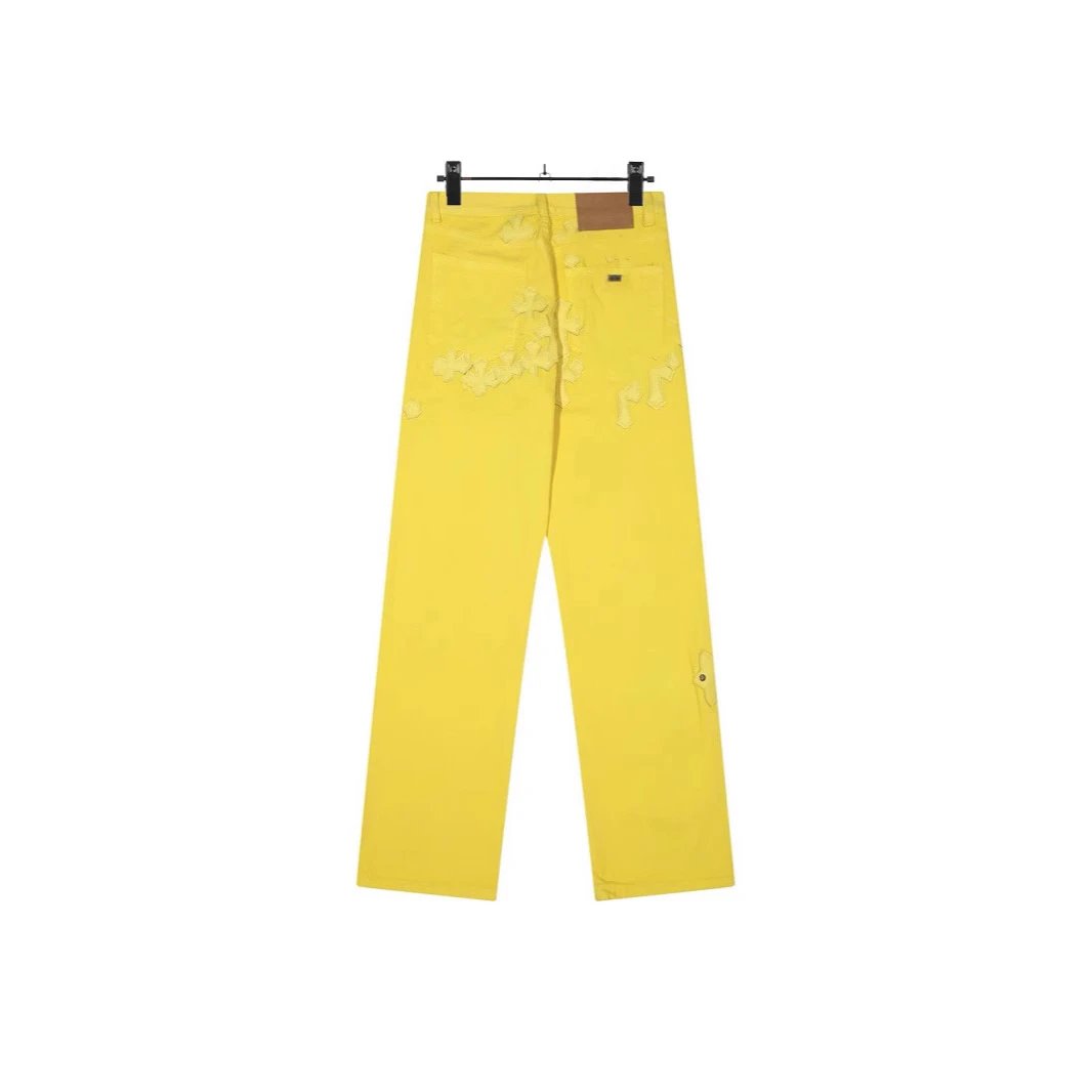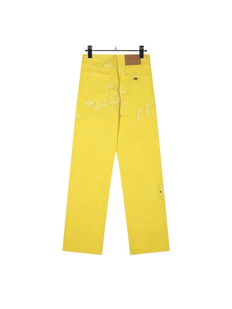 美式高街潮牌CH范丞丞同款纽约限定大皮标多巴胺黄牛仔裤长裤