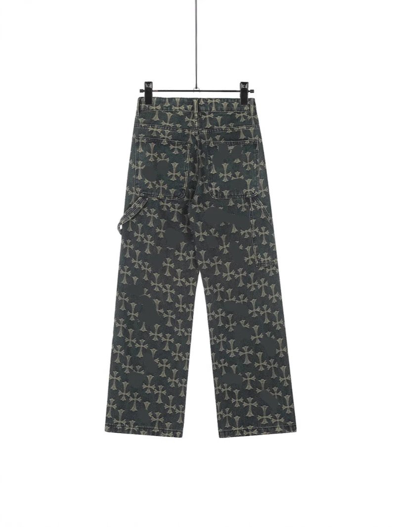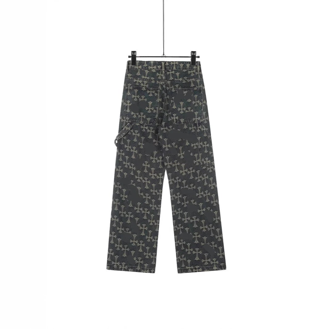 美式高街潮牌CH双面满印满LOGO提花暗花重工牛仔裤男女同款宽松休