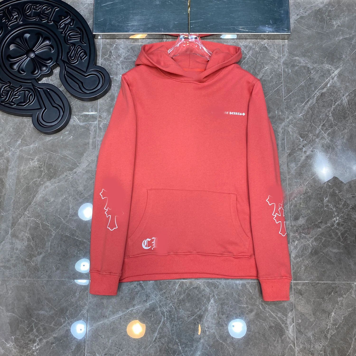 秋冬CH马蹄粉色十字架连帽卫衣男女款情侣款潮流宽松百搭ins