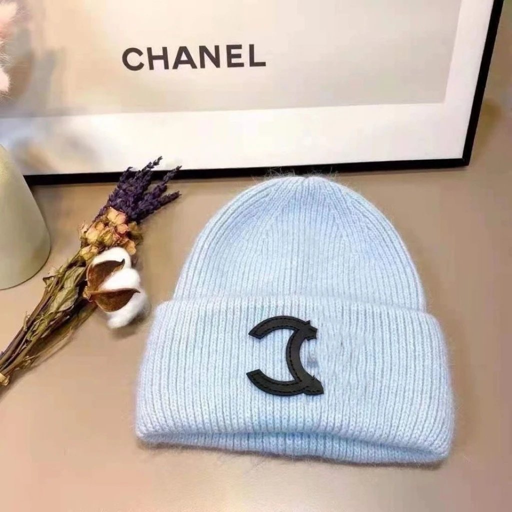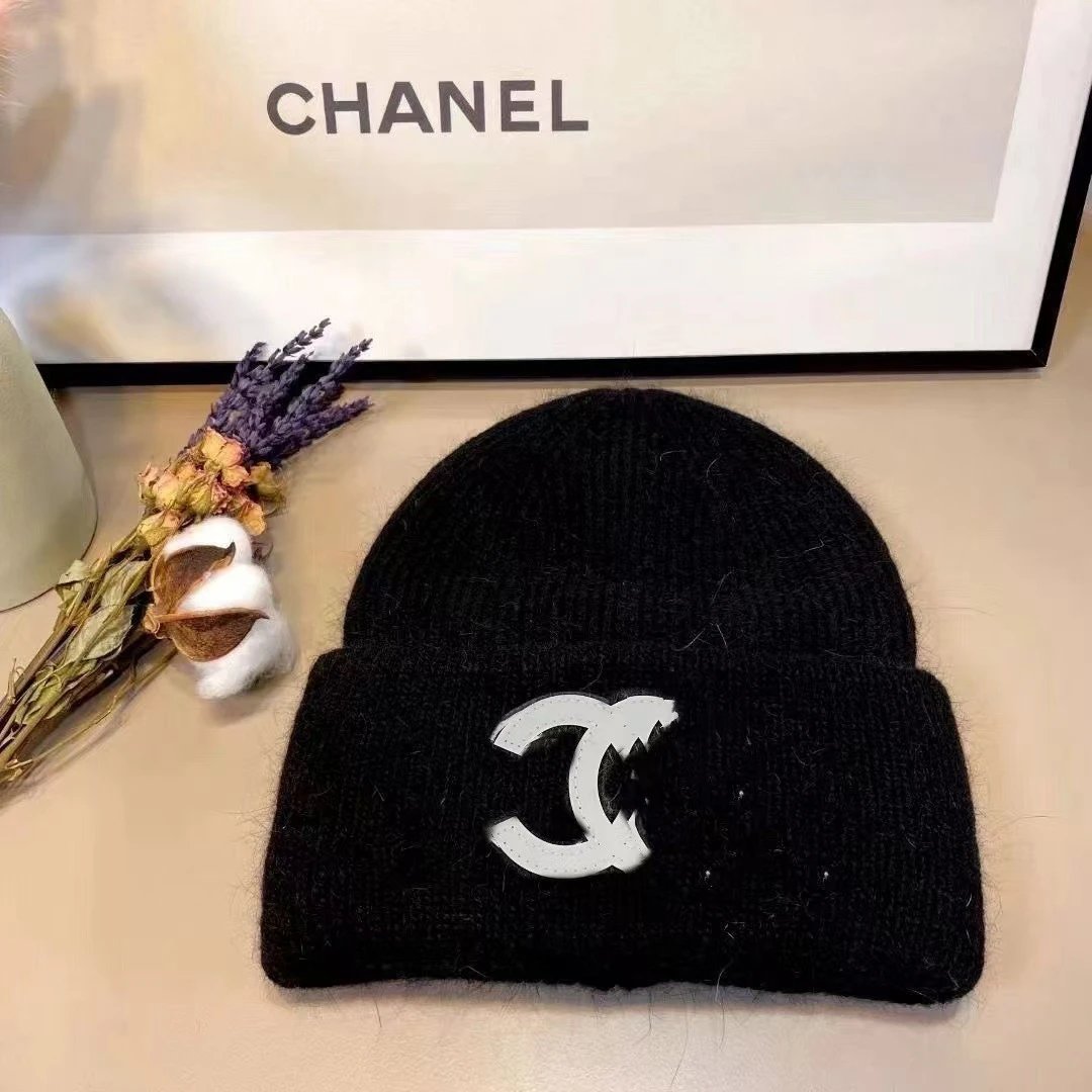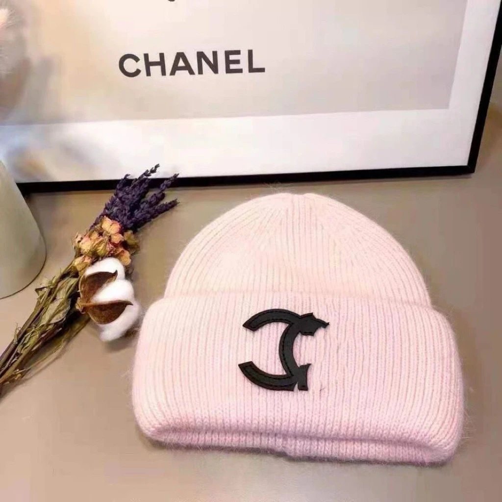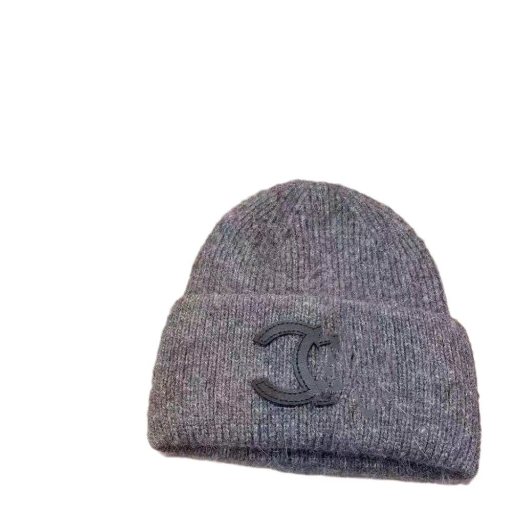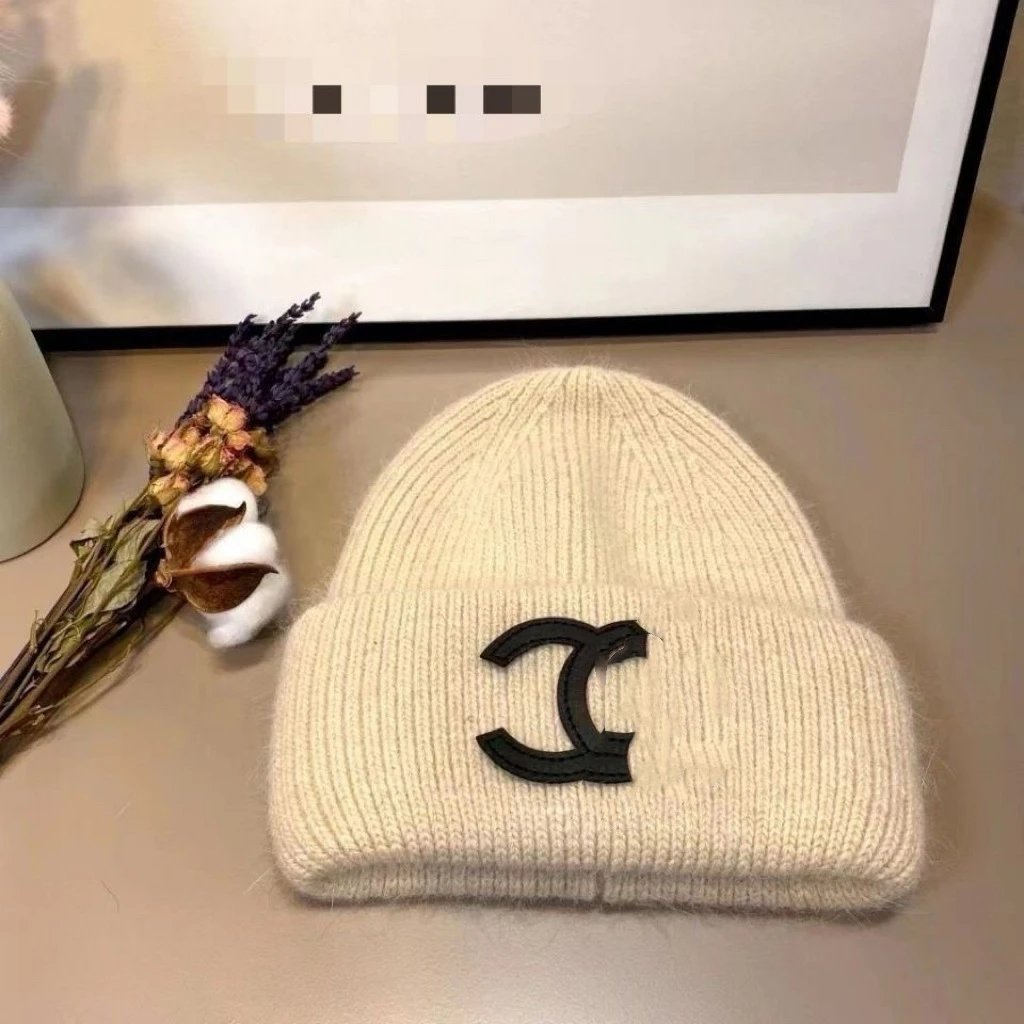 秋冬款双C字母针织帽兔毛帽INS小香保暖毛线帽女百搭包头冷帽