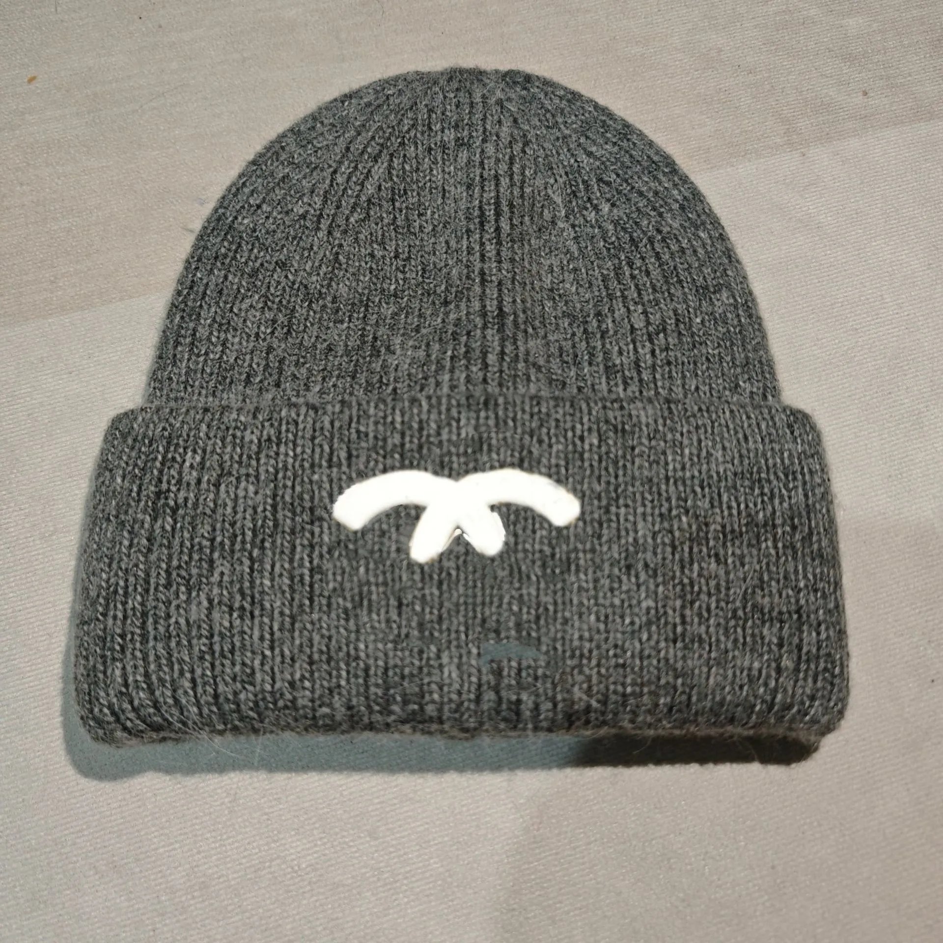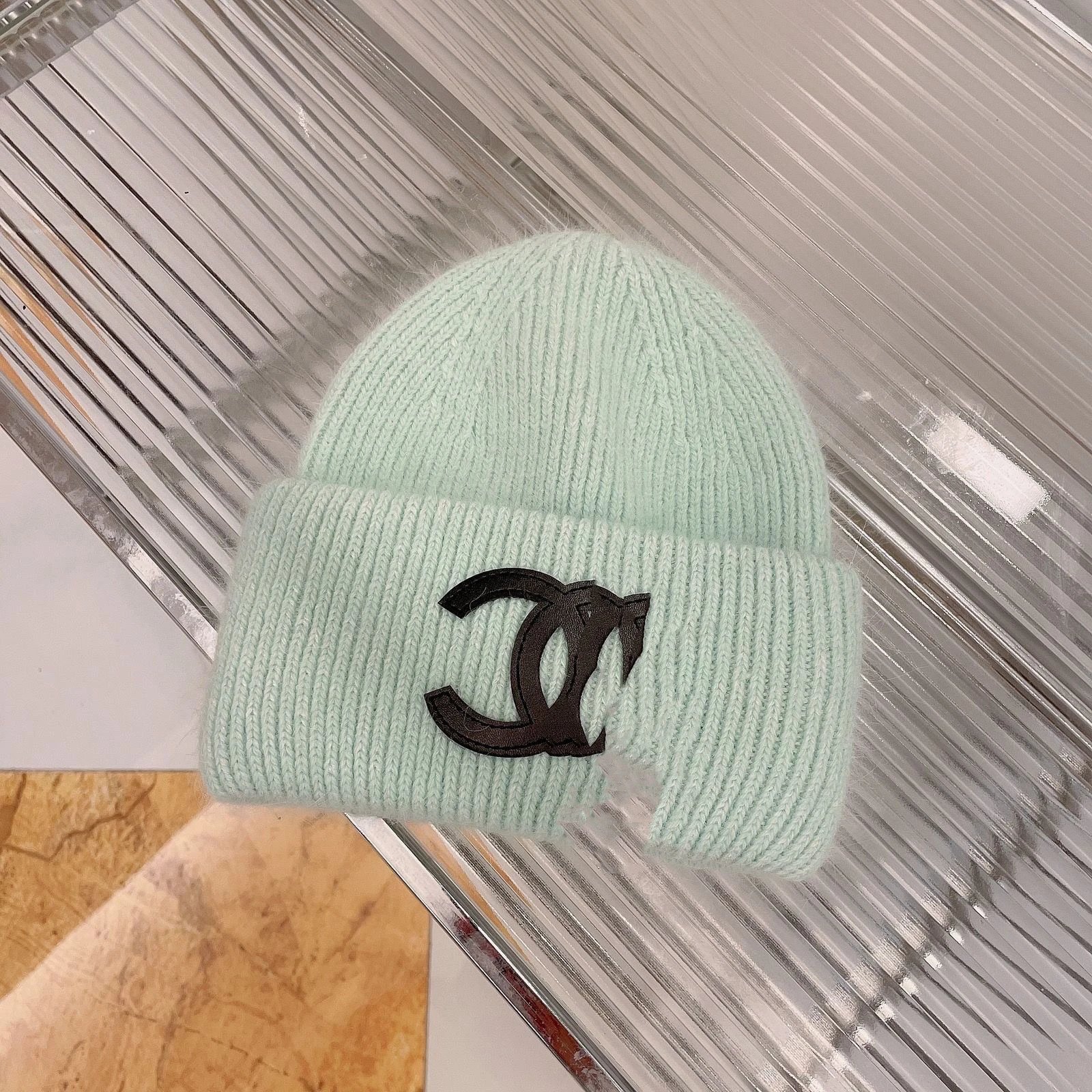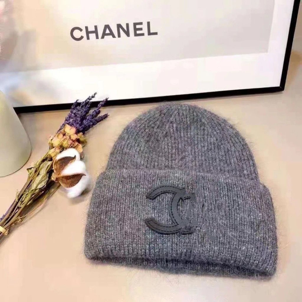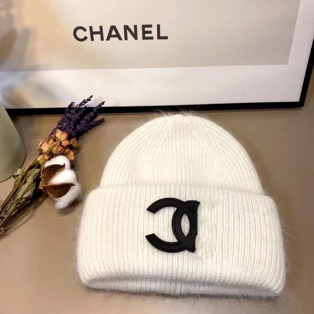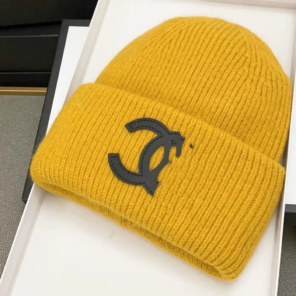 秋冬款双C字母针织帽兔毛帽INS小香保暖毛线帽女百搭包头冷帽