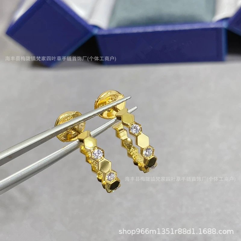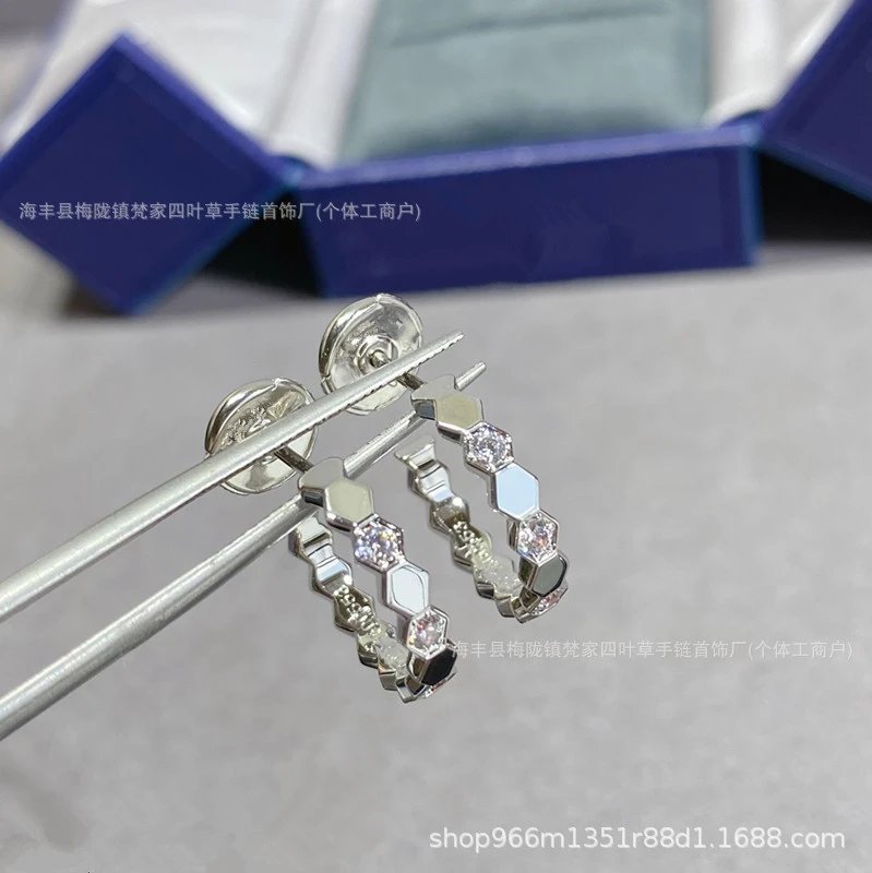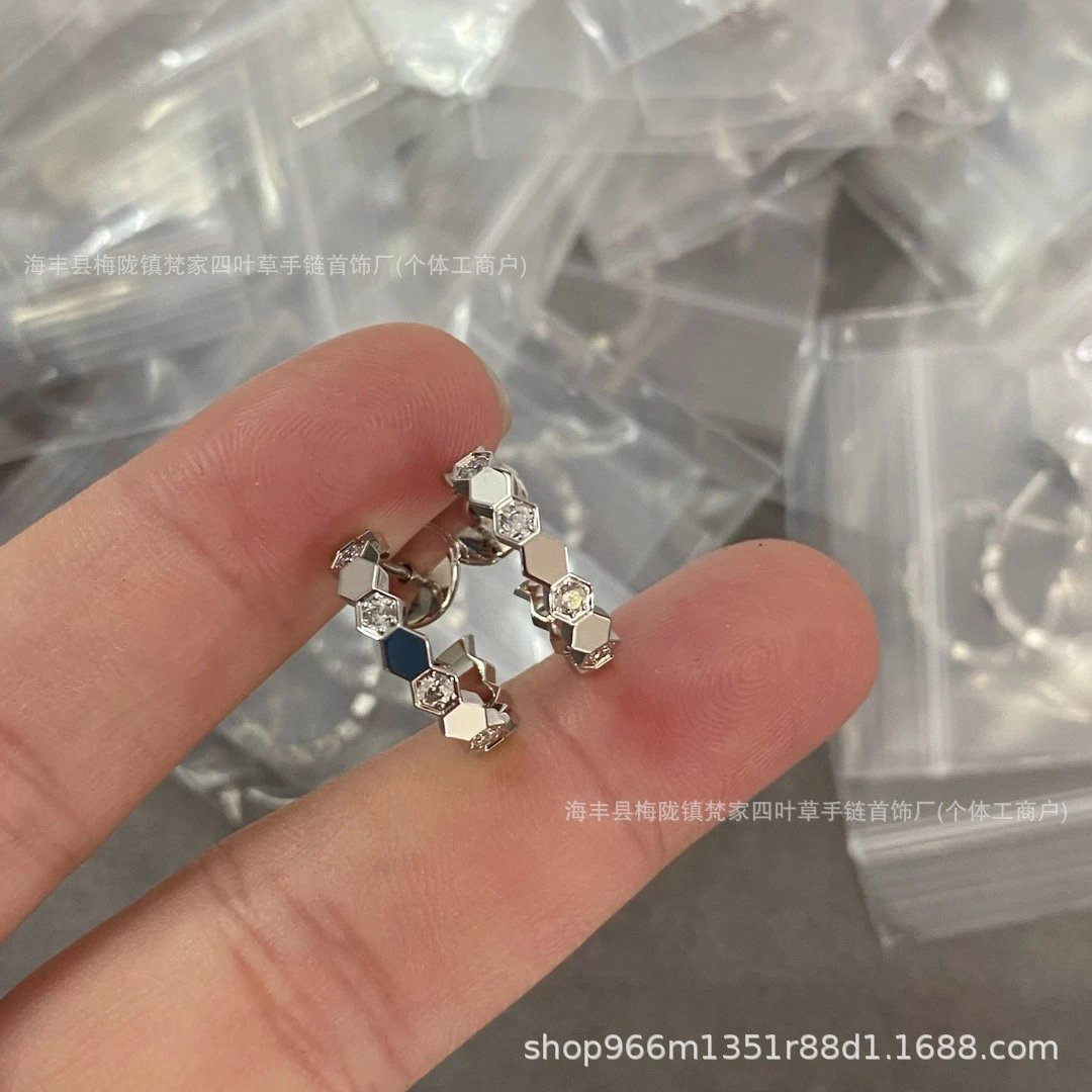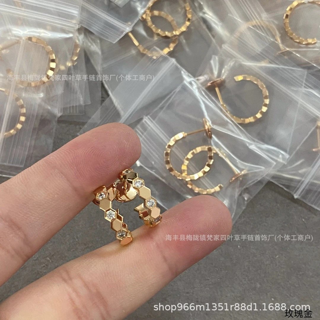 蜂巢耳环女间钻时尚高端玫瑰金蜂巢耳钉CNC工艺气质百搭网红爆款