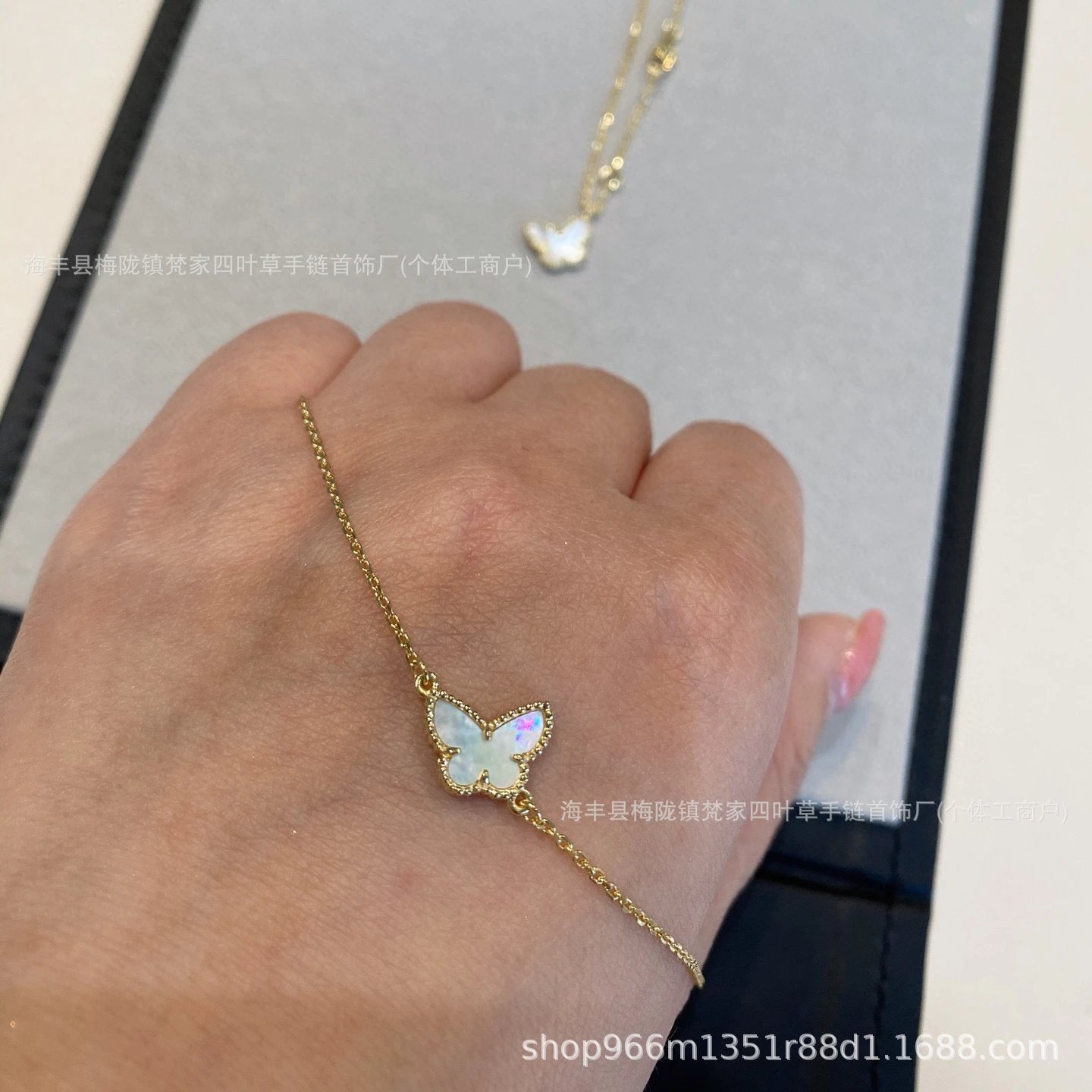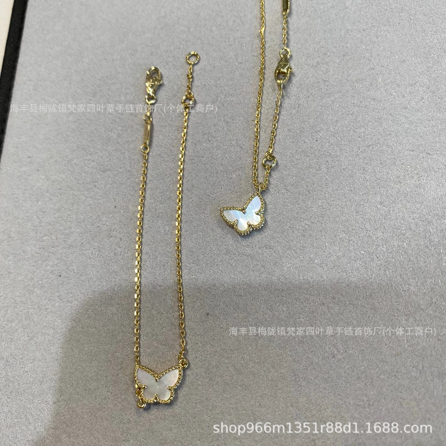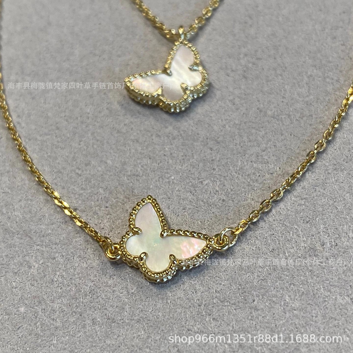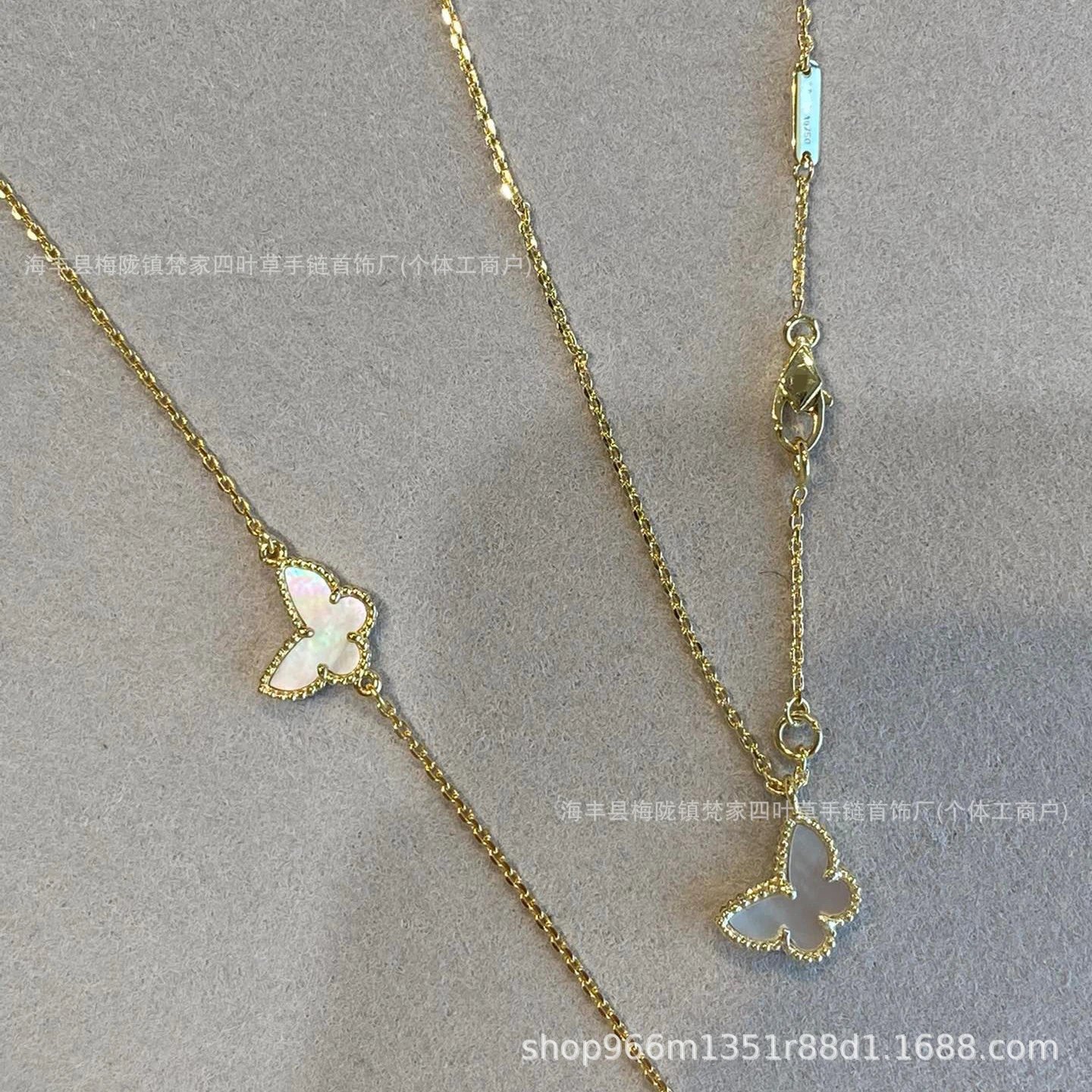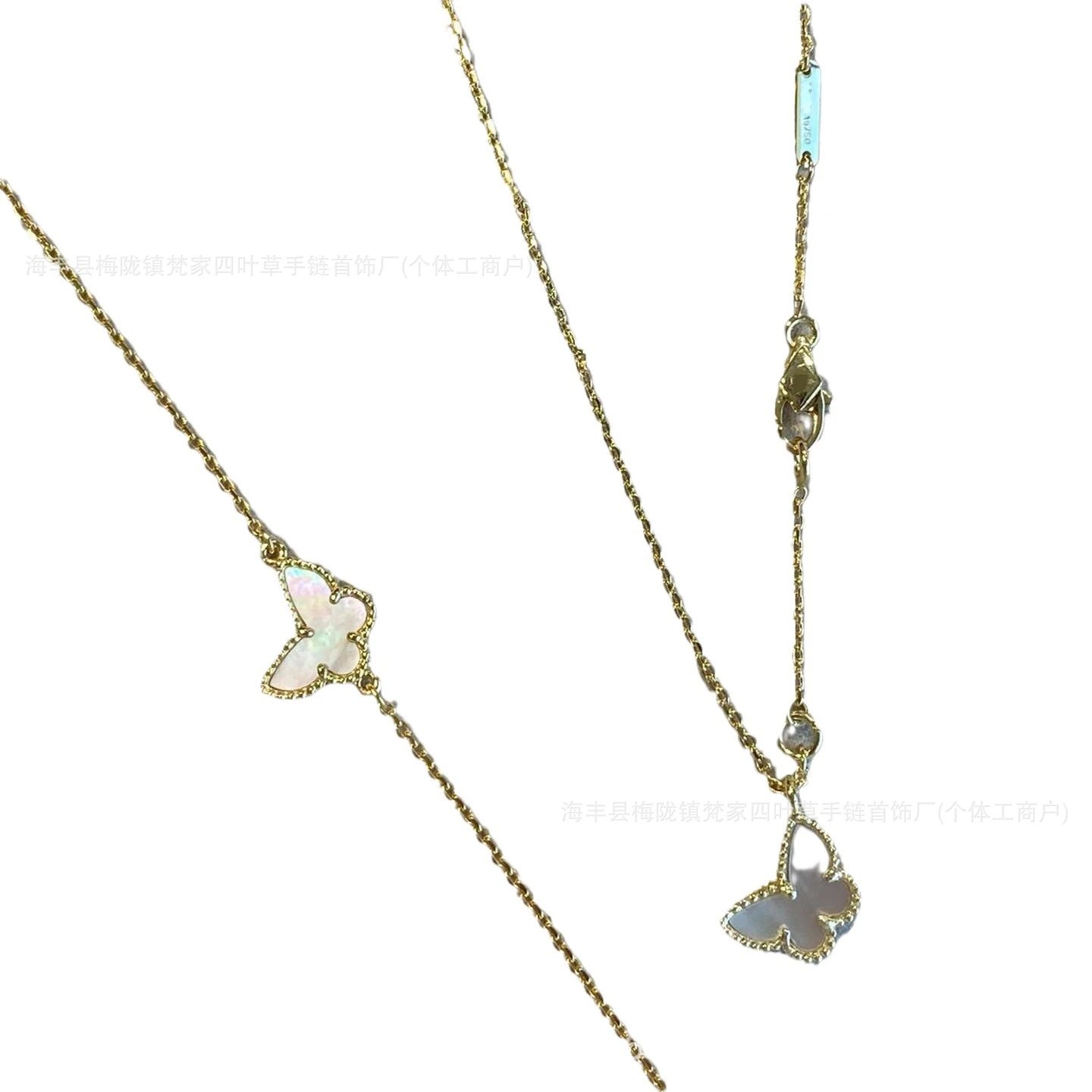 梵家CNC精雕四叶草蝴蝶系列项链厚镀18K金白贝母吊坠锁骨链