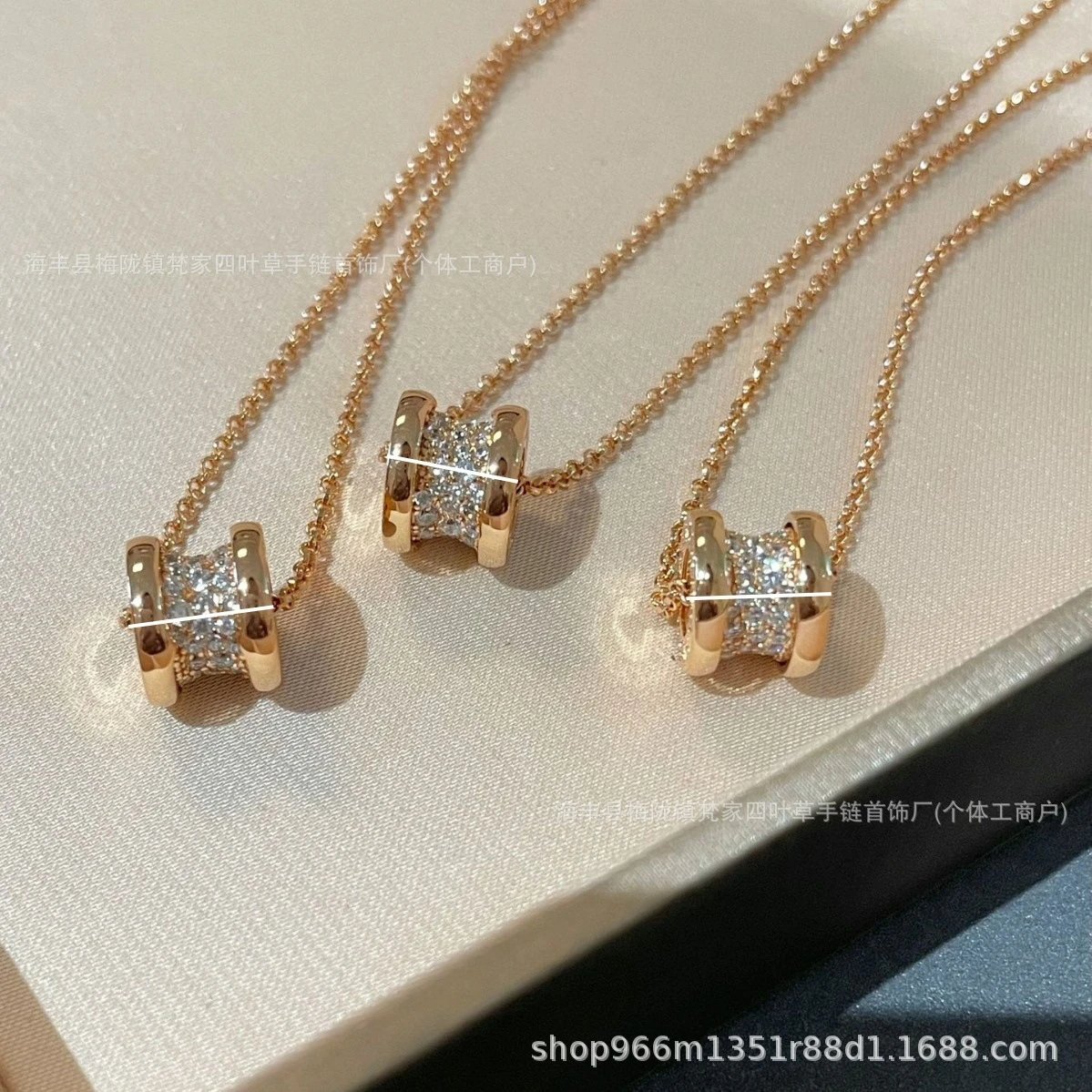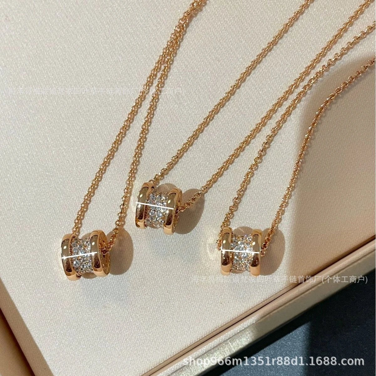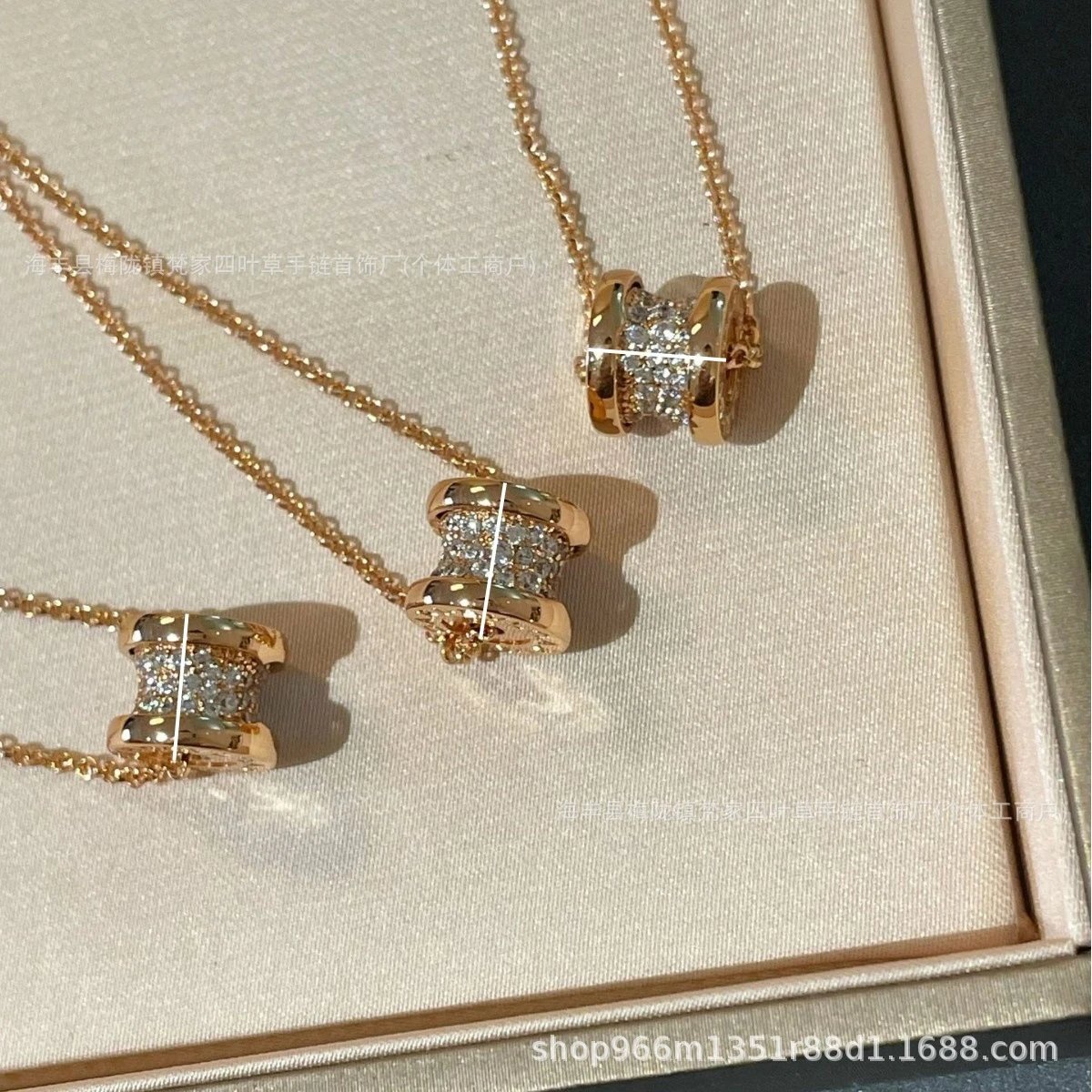 宝家新款CNC精雕扣头小蛮腰镶钻玫金项链精工版本厚镀18K金