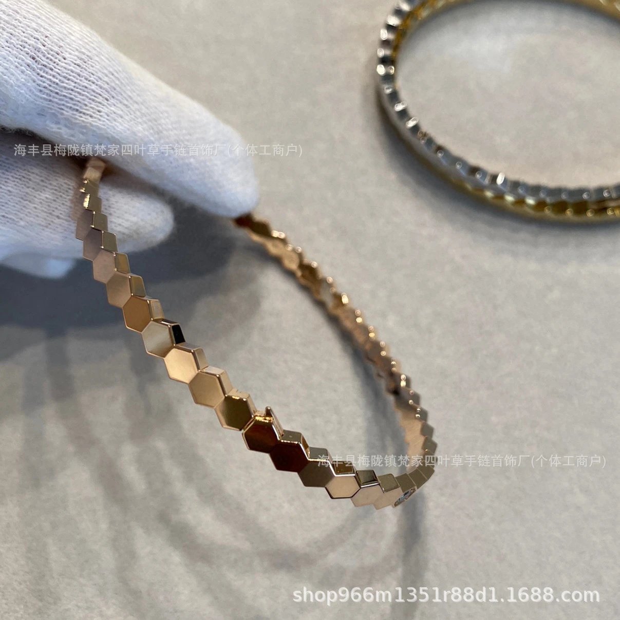 尚美CNC精雕尚&美波浪菱形蜂巢手镯镶钻轻奢设计高级感