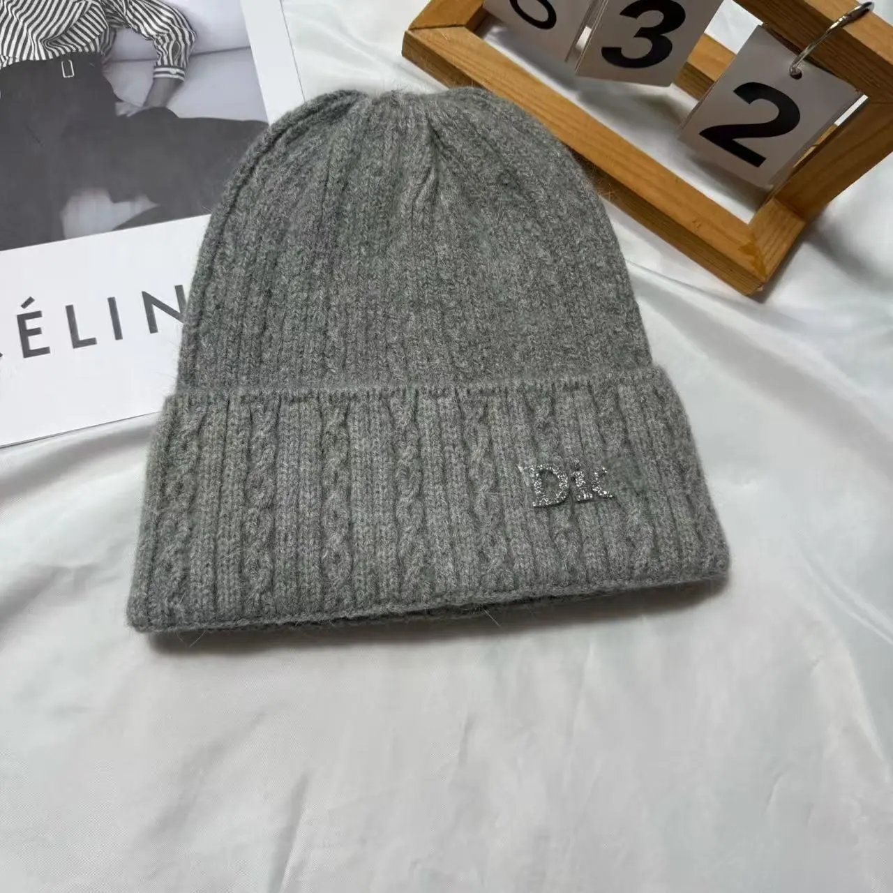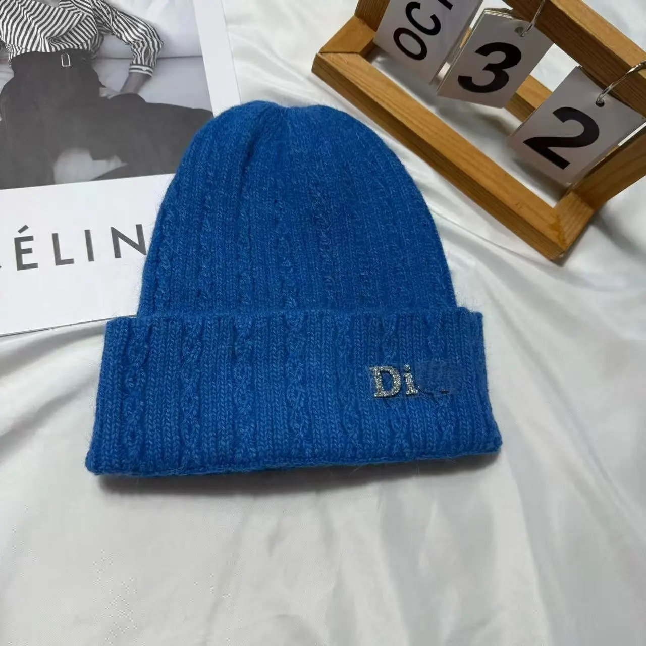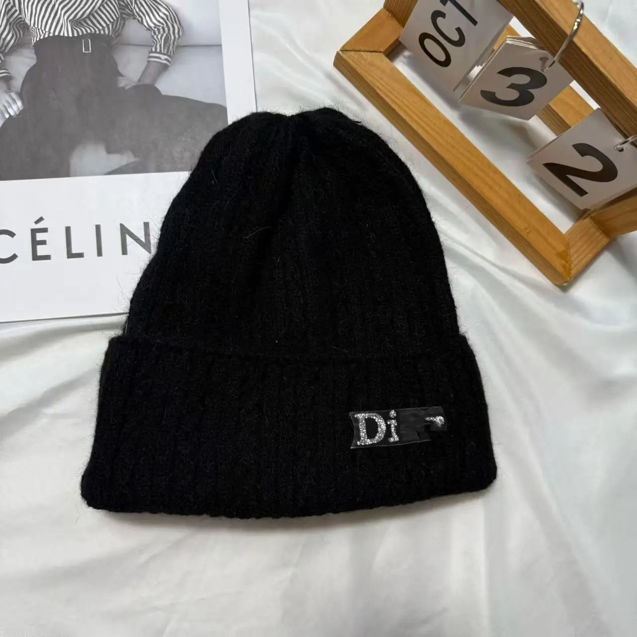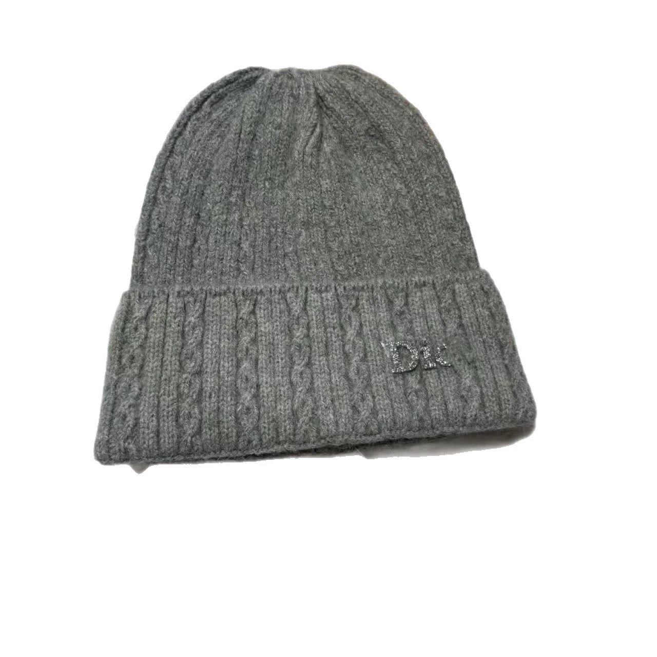 百搭D 家水钻针织帽秋冬季保暖套头帽子女字母护耳冷帽日常毛线帽