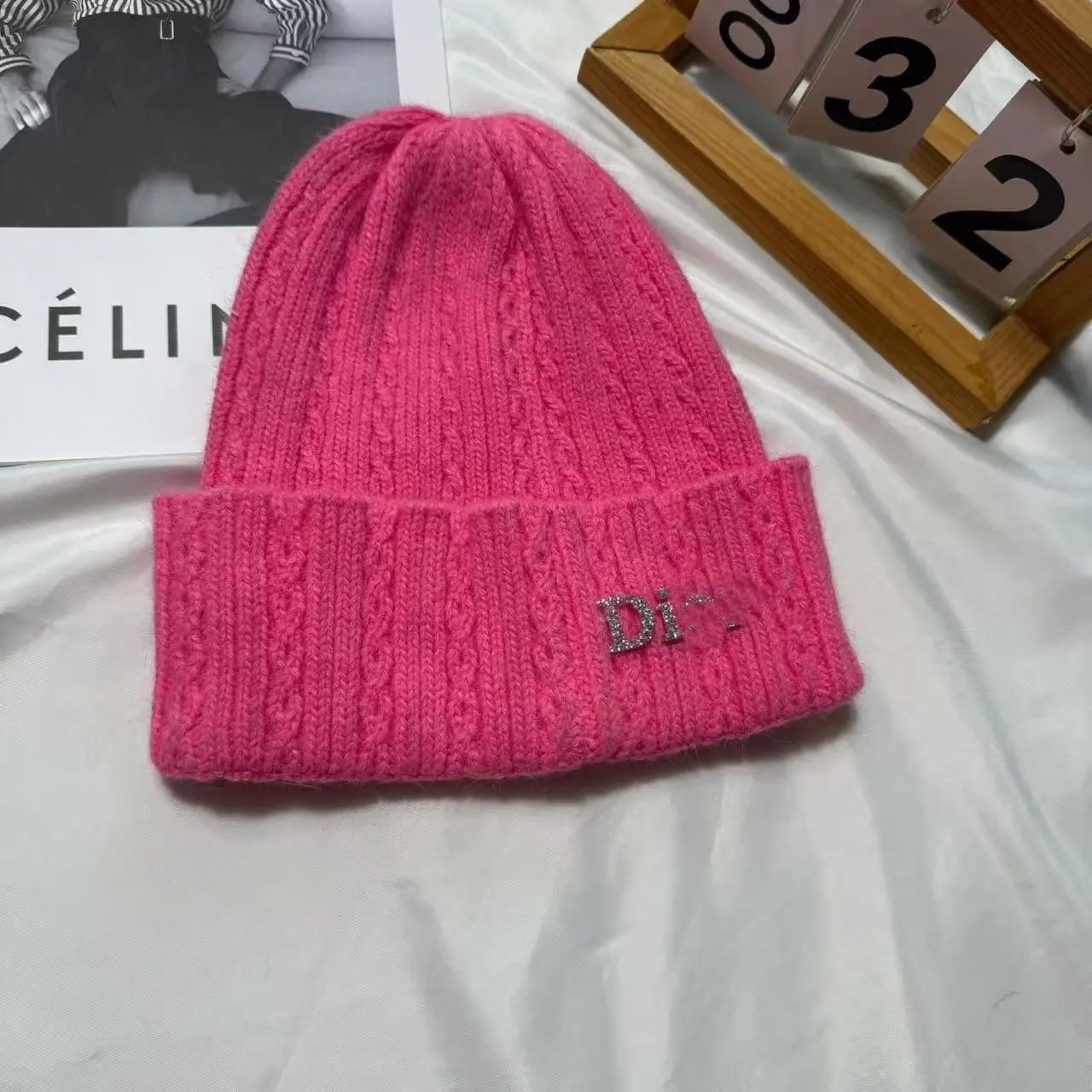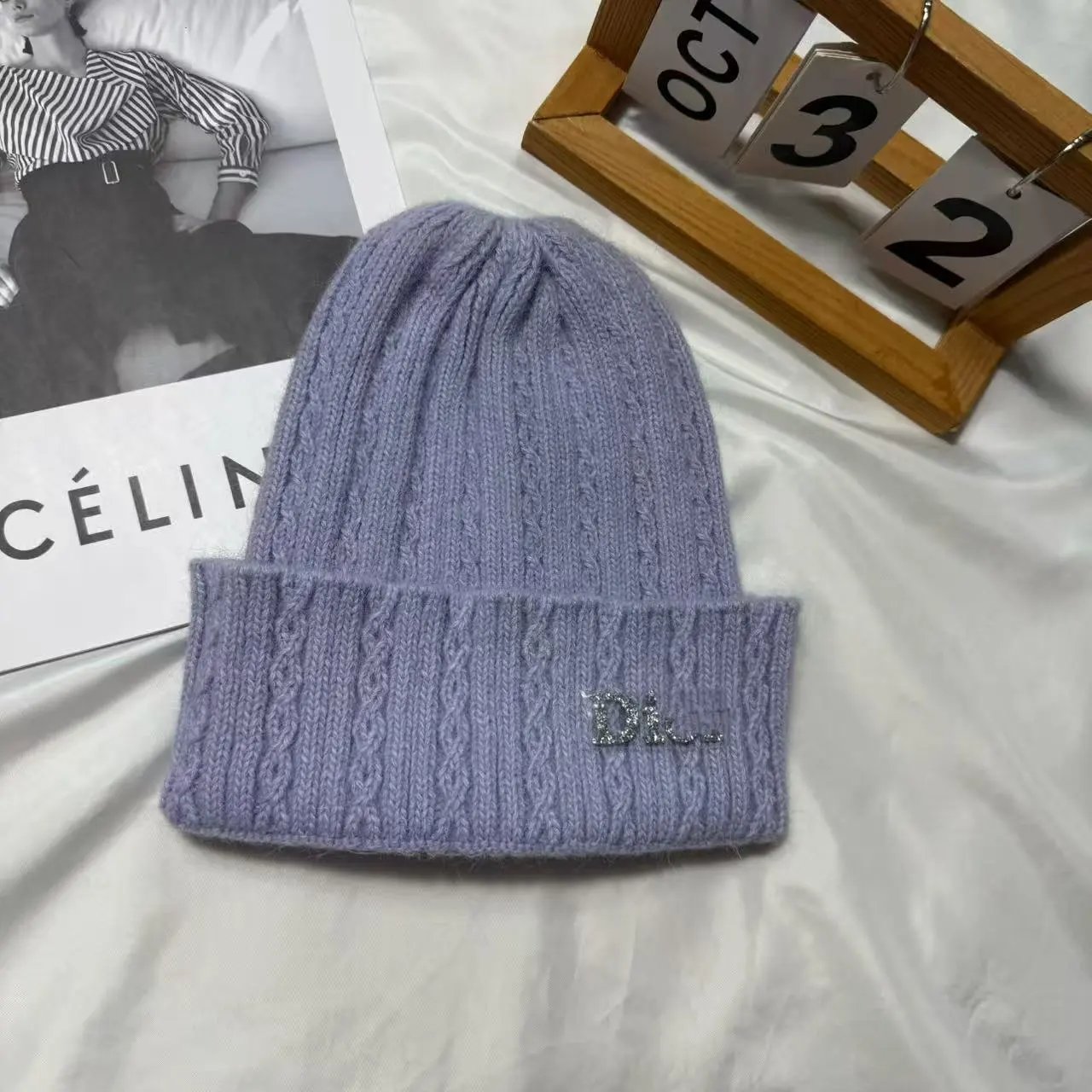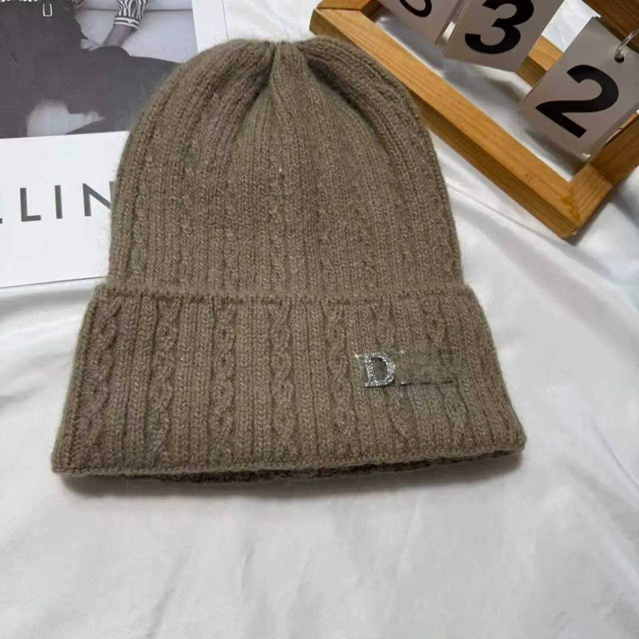 百搭D 家水钻针织帽秋冬季保暖套头帽子女字母护耳冷帽日常毛线帽