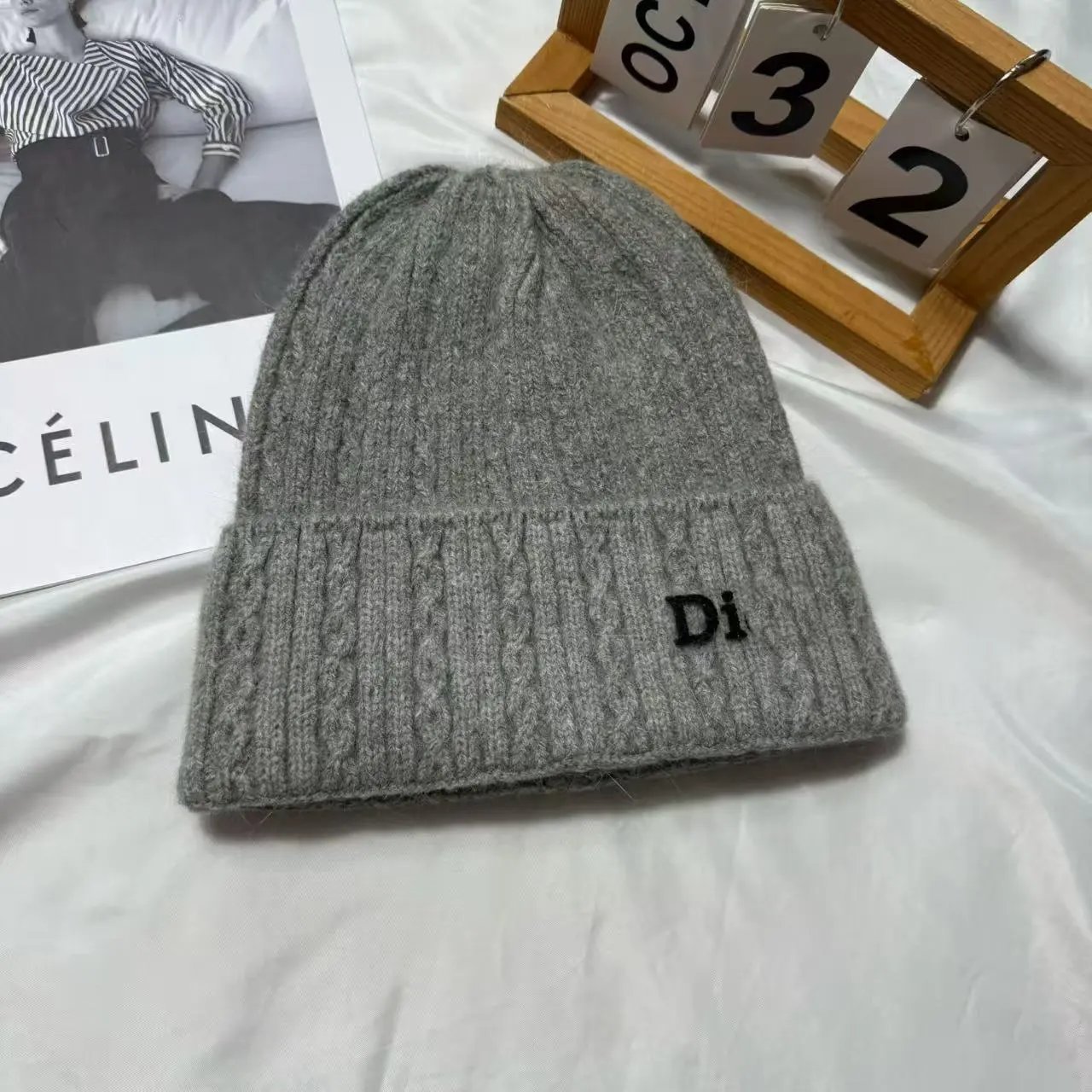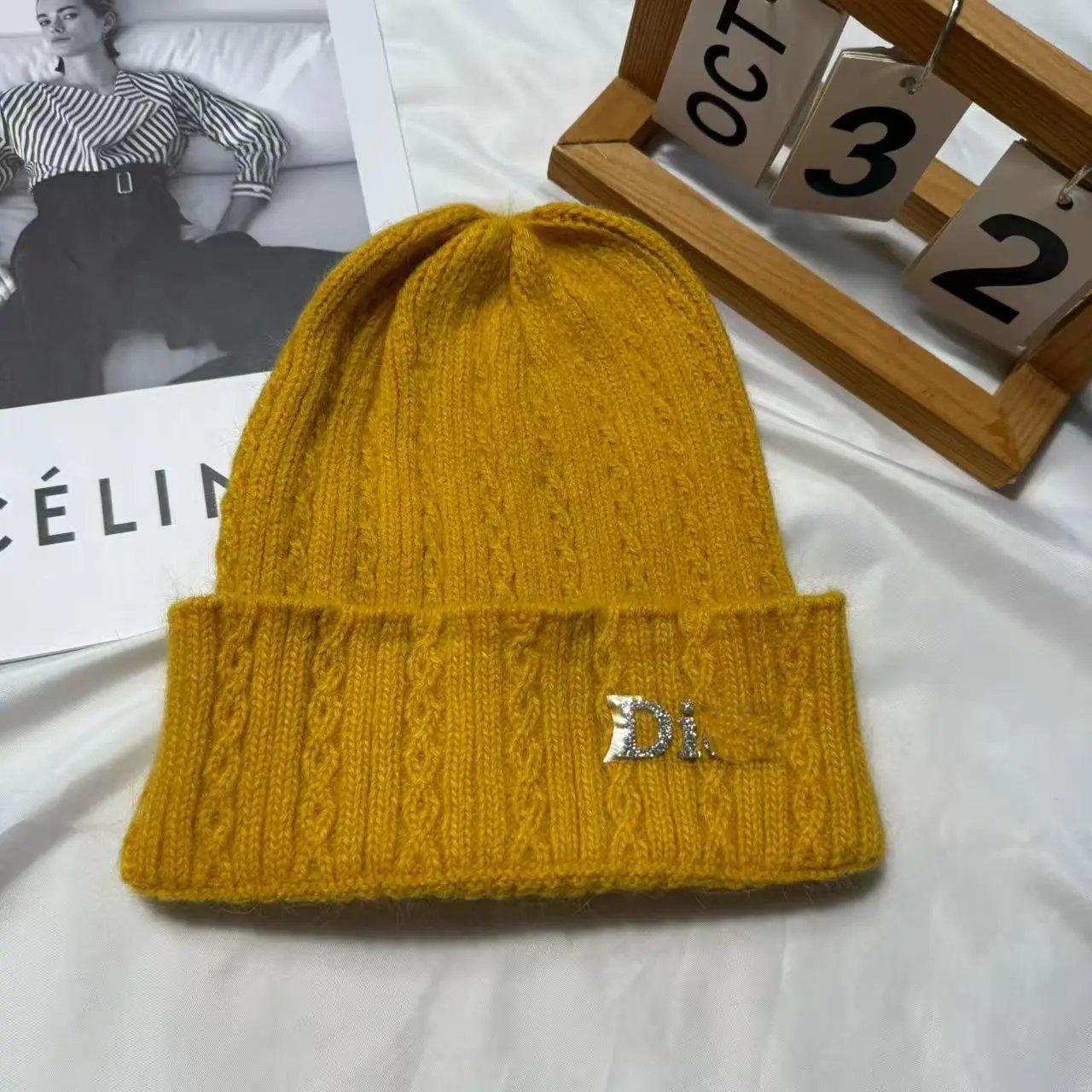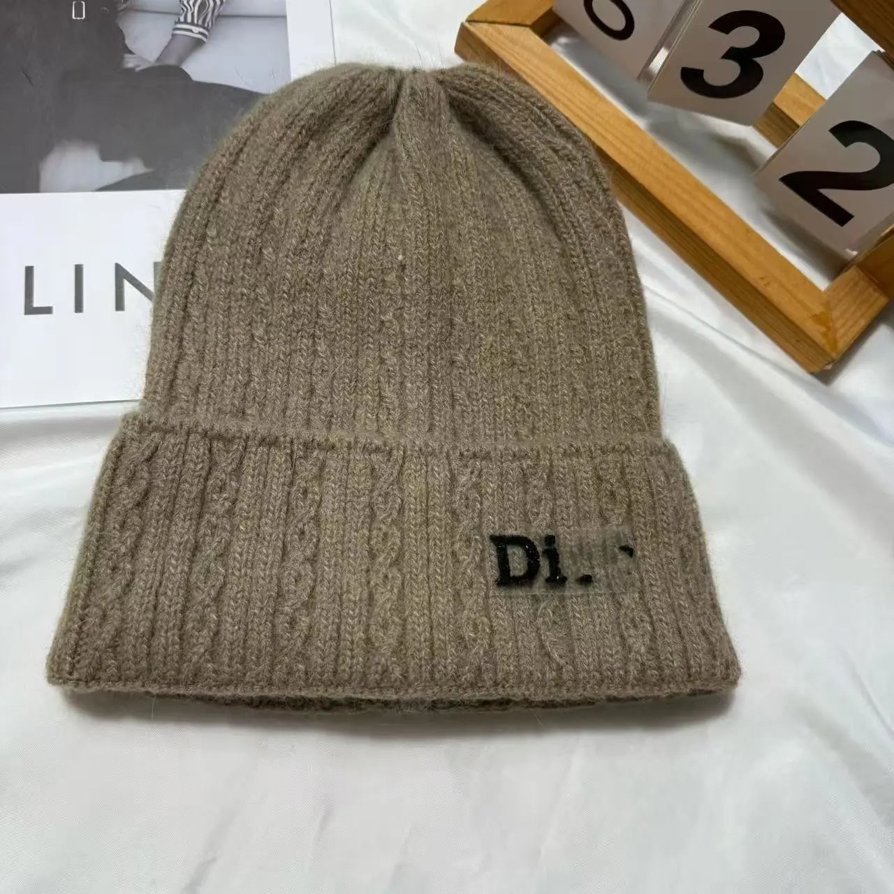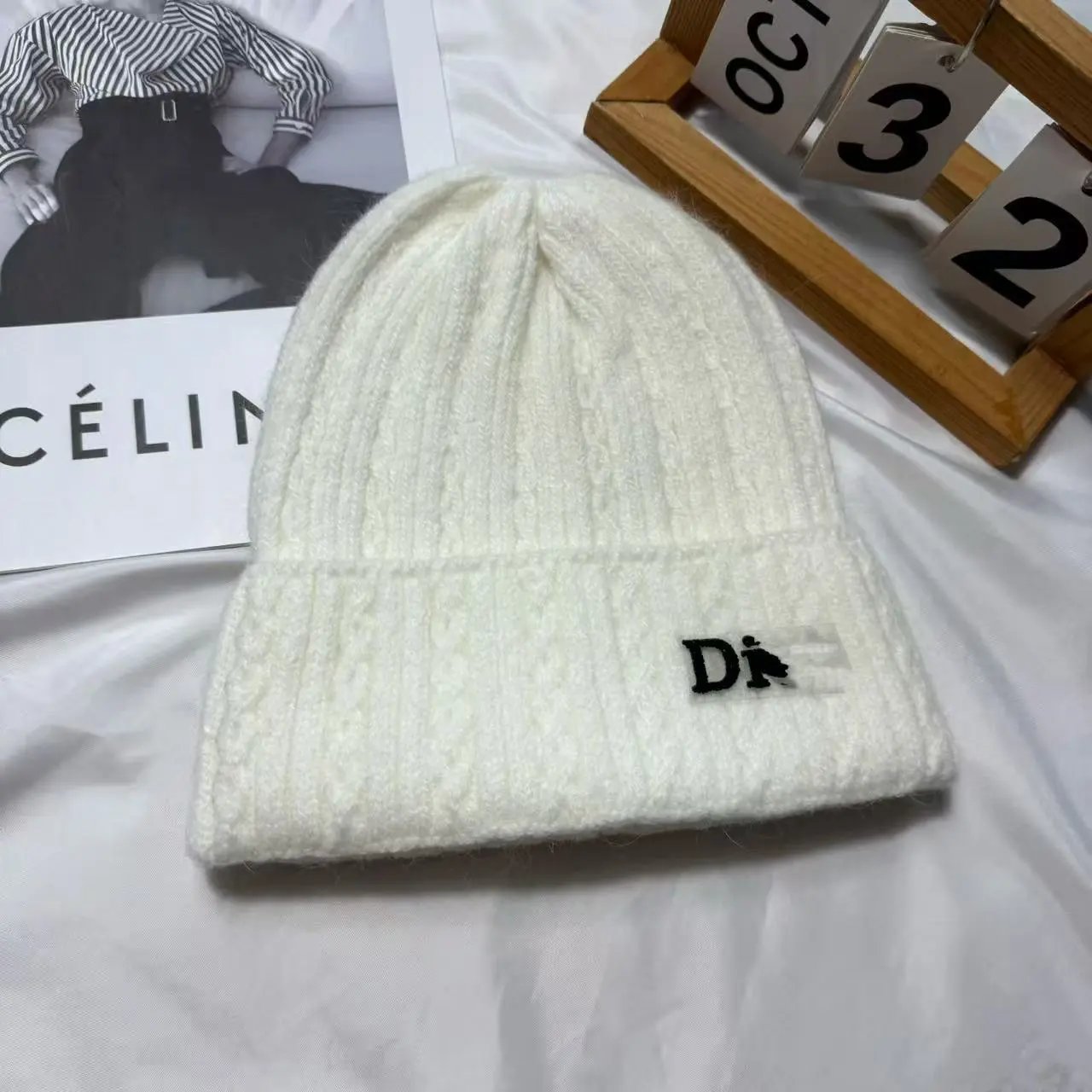 百搭D 家水钻针织帽秋冬季保暖套头帽子女字母护耳冷帽日常毛线帽