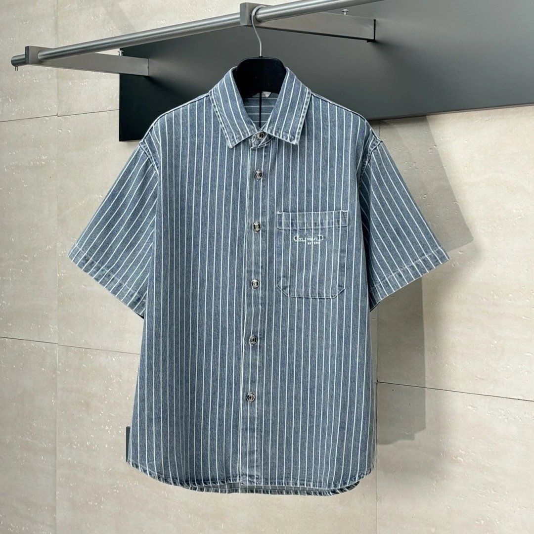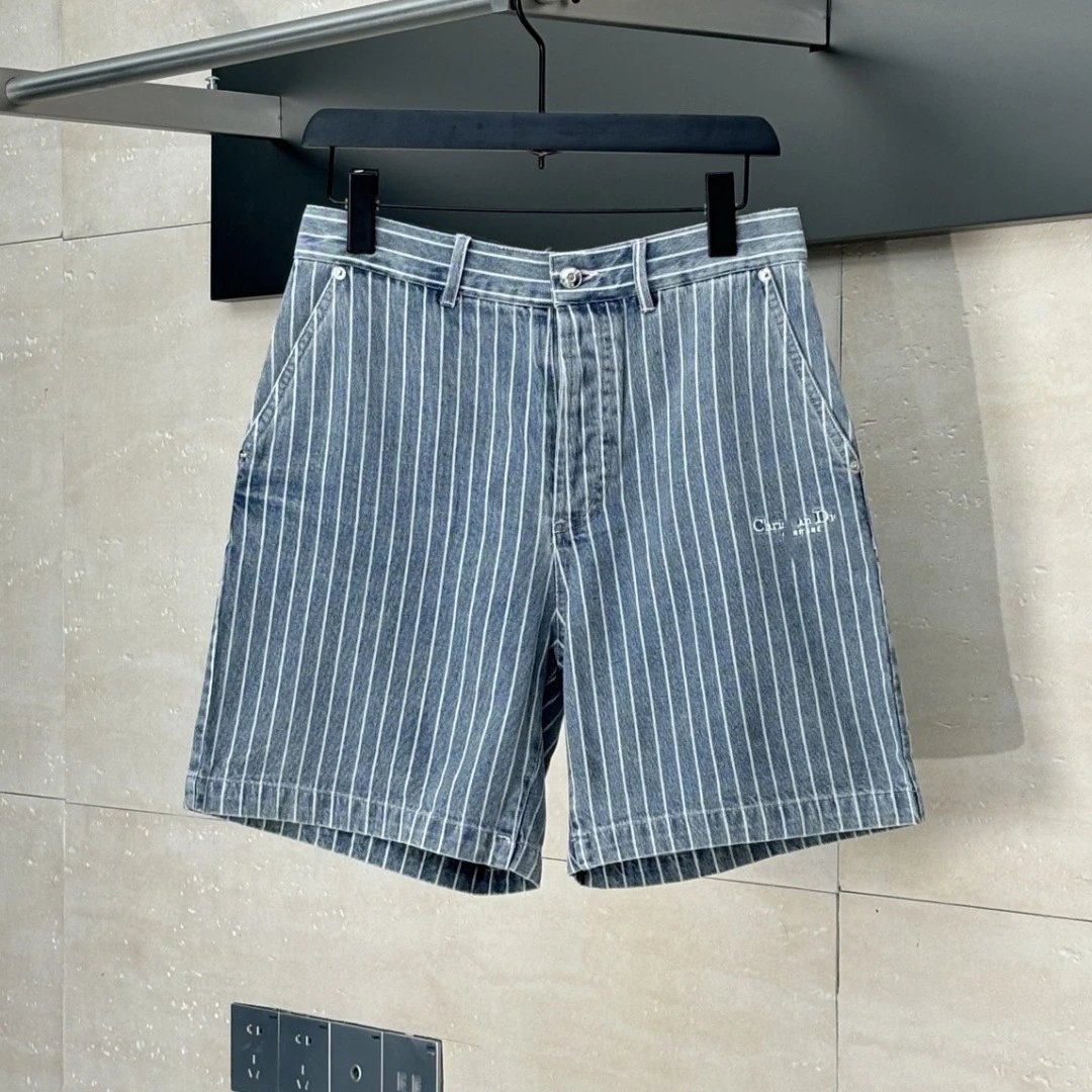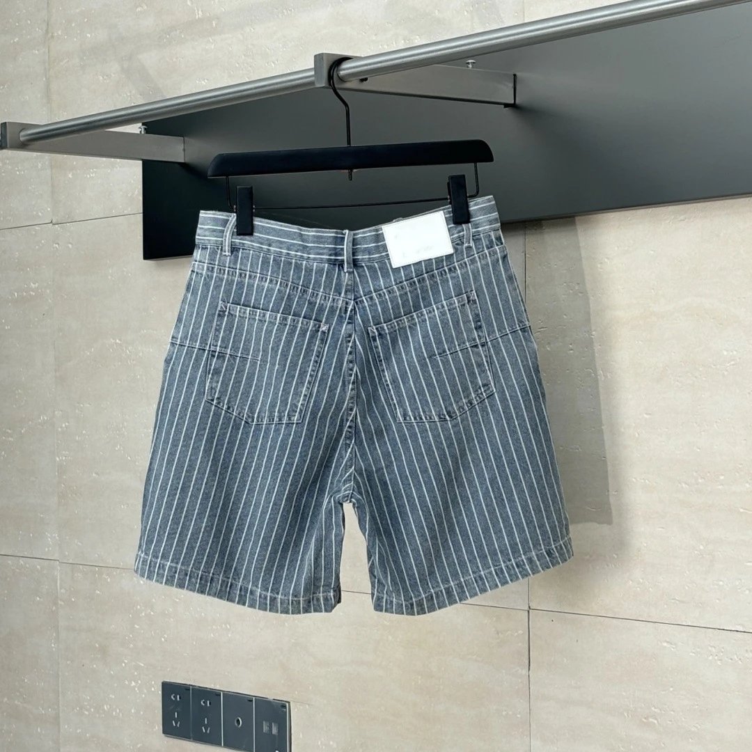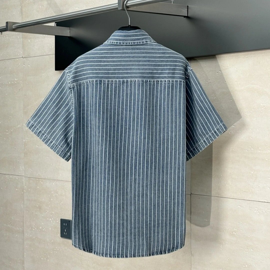 DI家条纹口袋刺绣字母logo纽扣衬衫牛仔短裤男女套装