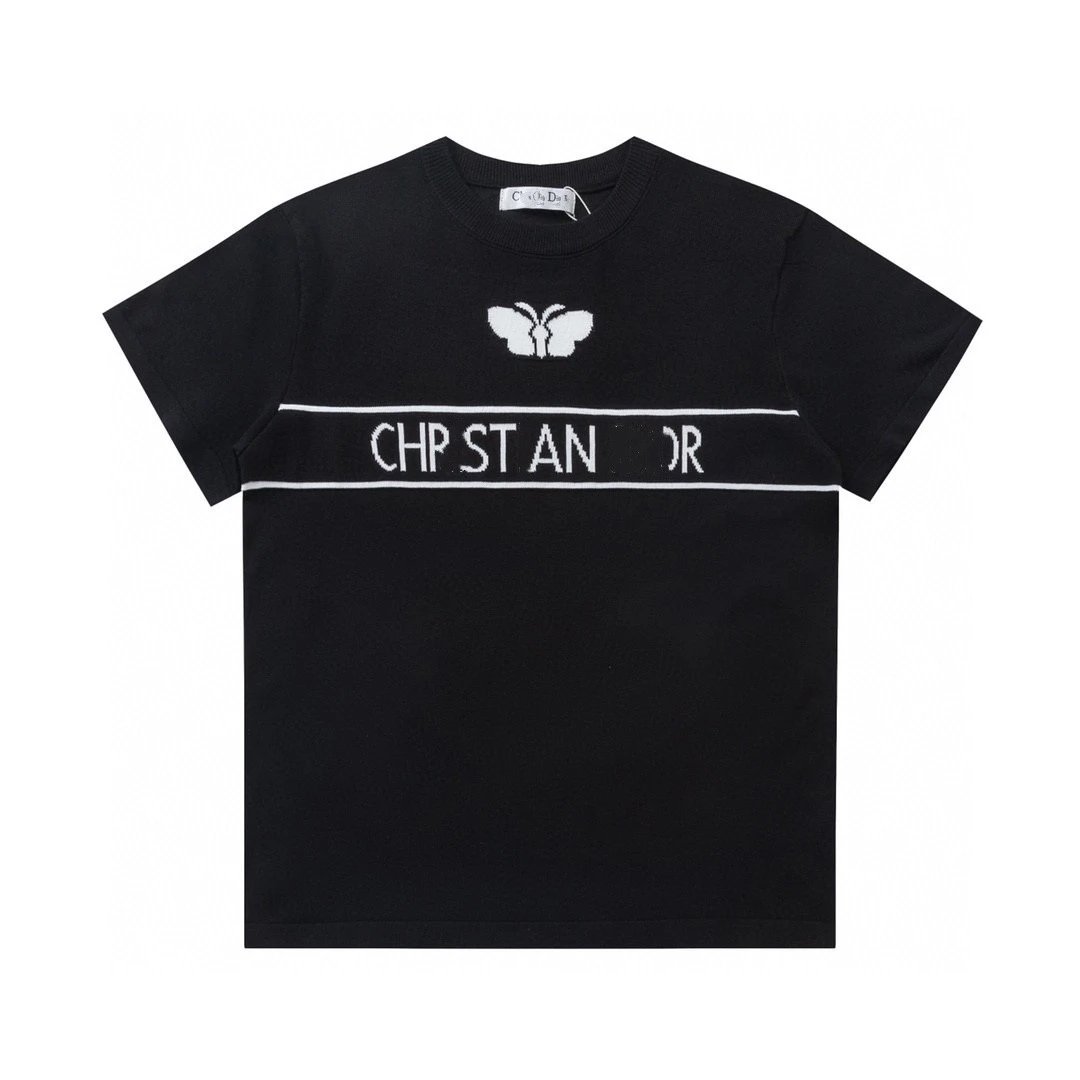DO家 新款经典标志条形蝴蝶提花短袖T恤上衣男女