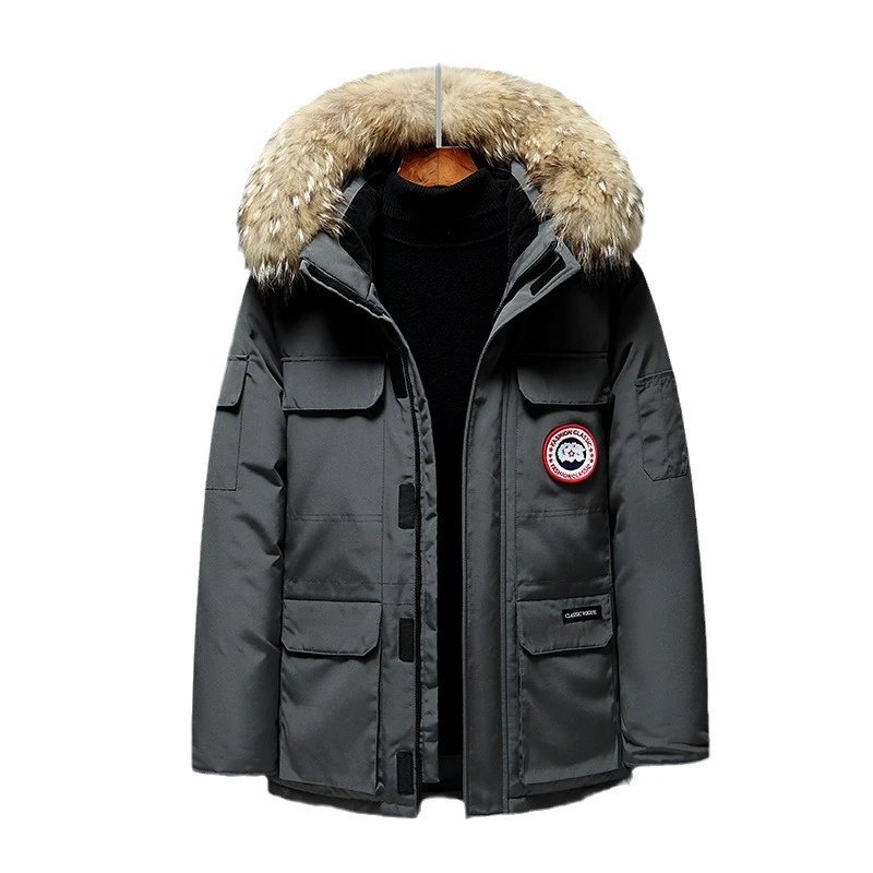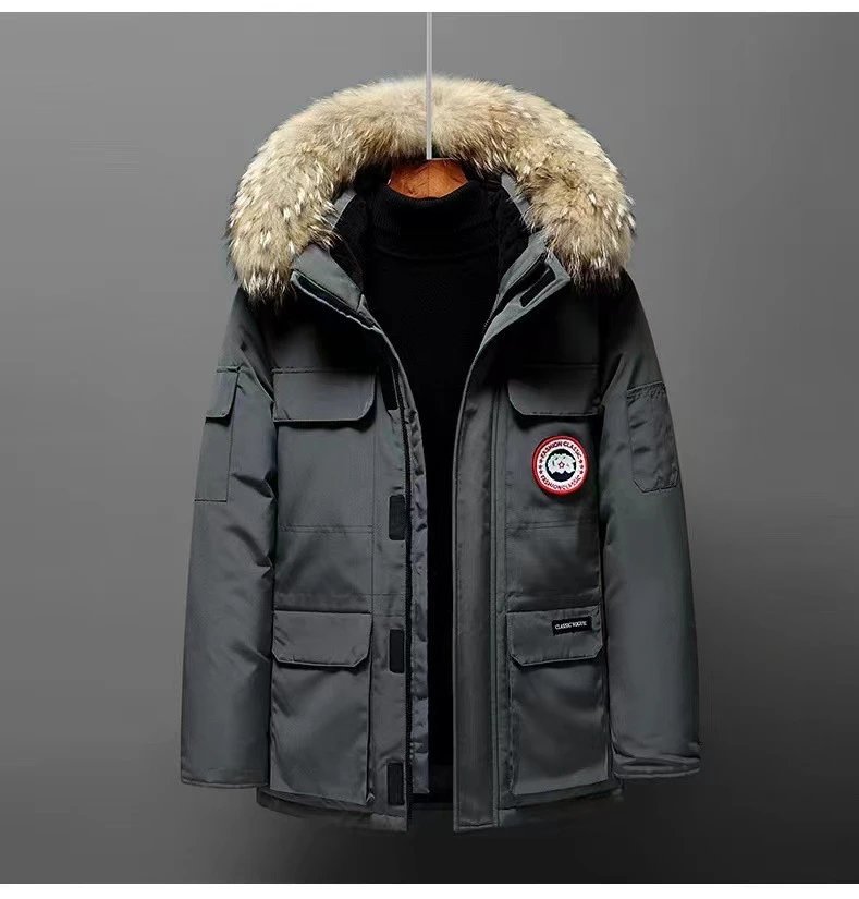真毛领男士羽绒服男式情侣女士冬季工装加厚保暖防寒直播