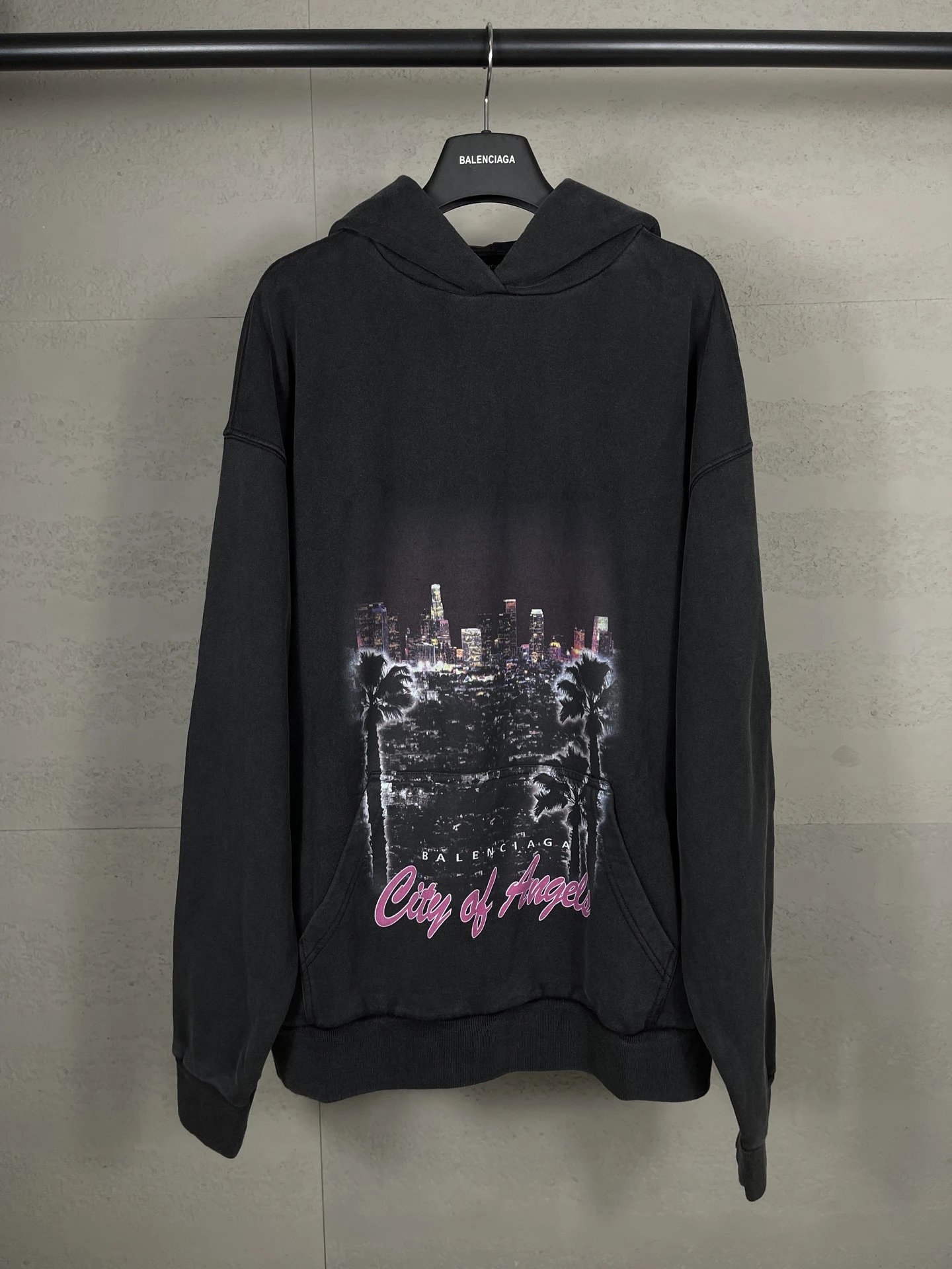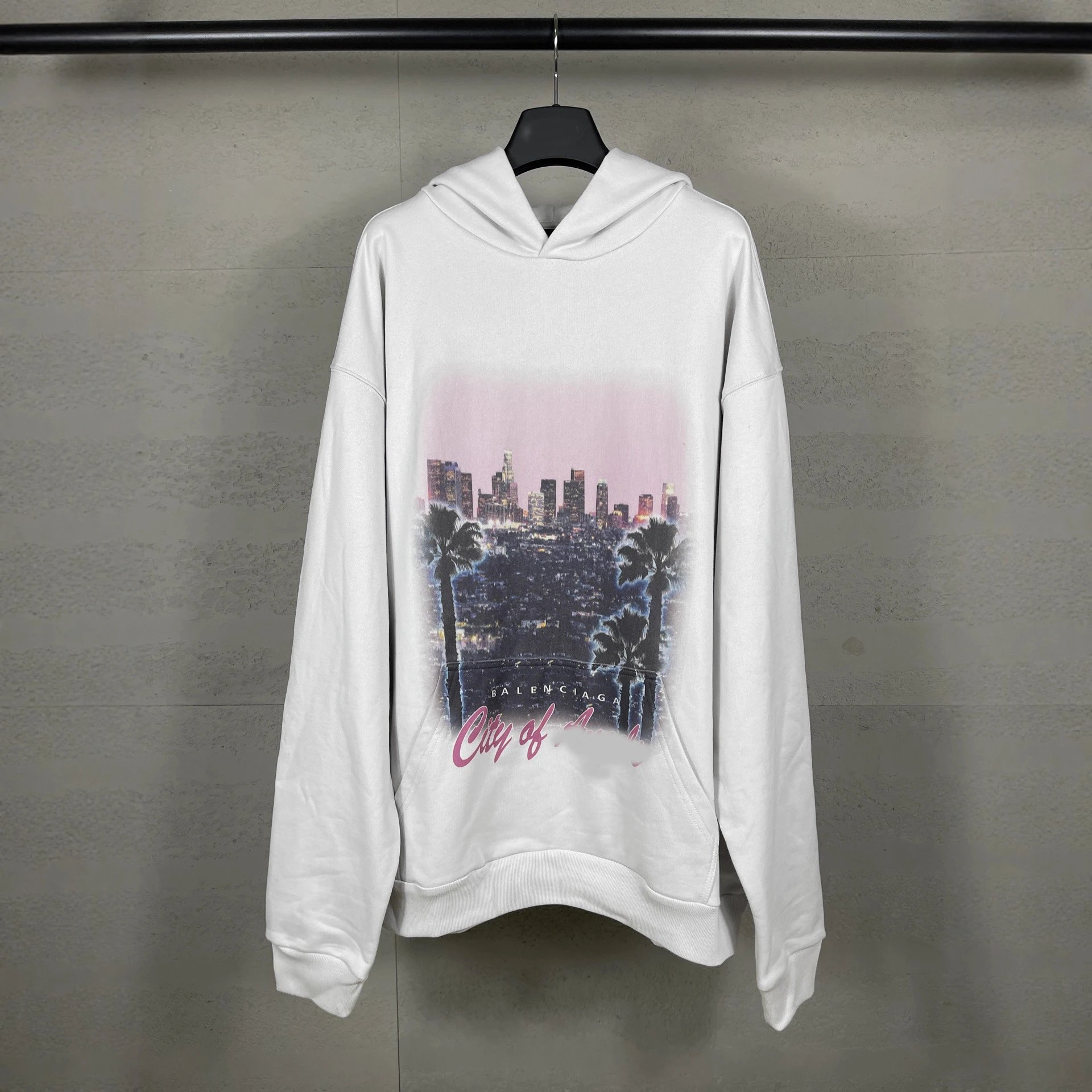 秋冬巴黎正面以洛杉矶夜景直喷印花成衣洗水连帽卫衣宽松休闲男女