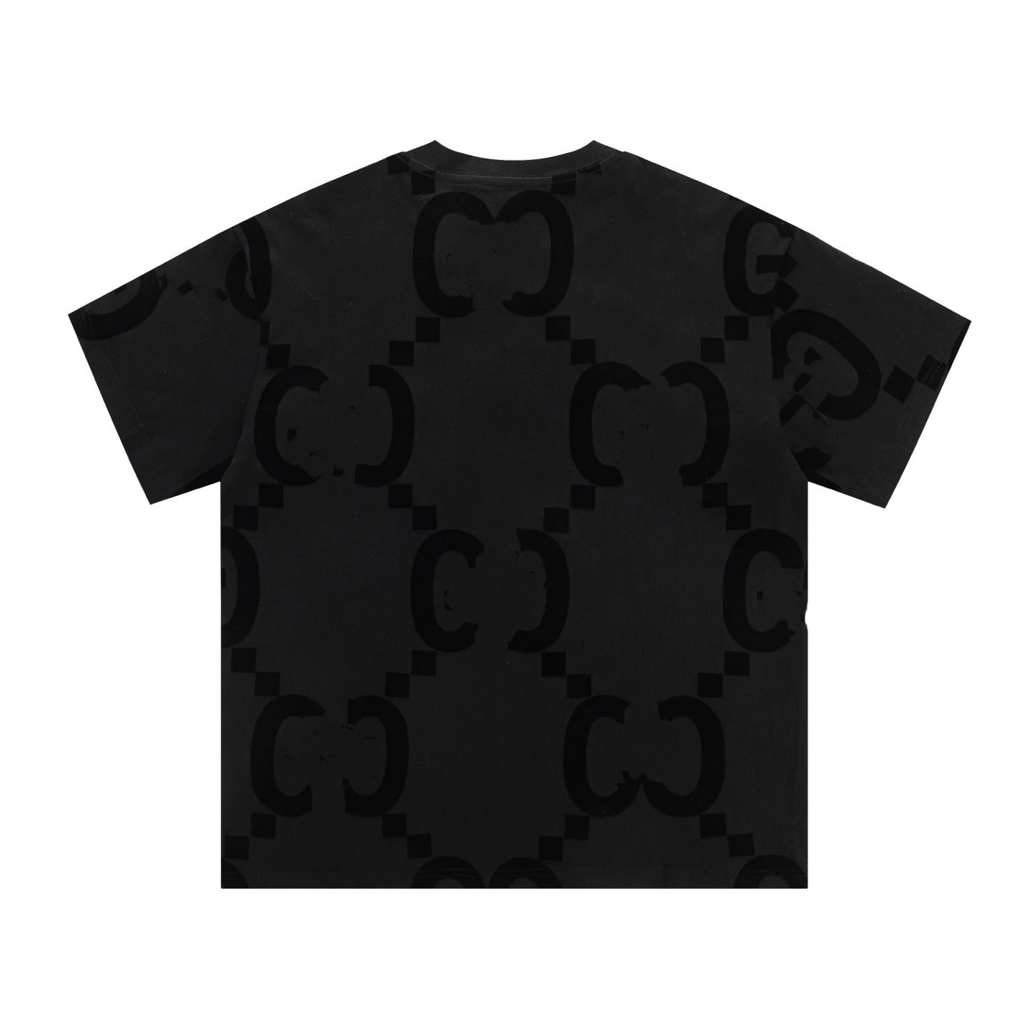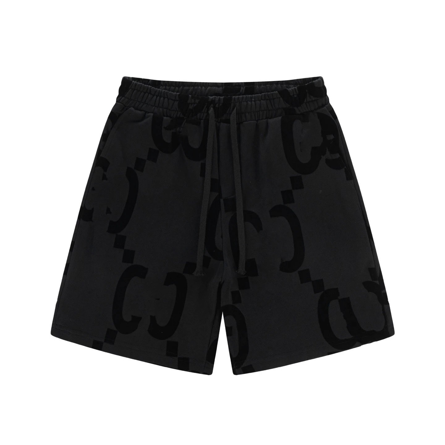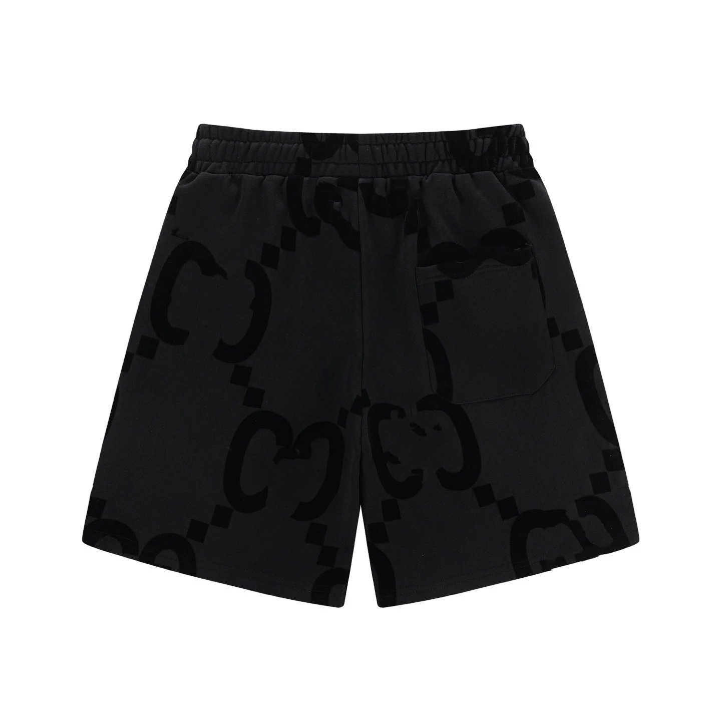 新款GU家 夏季新款植绒满印黑标网红款短袖短裤套装男女
