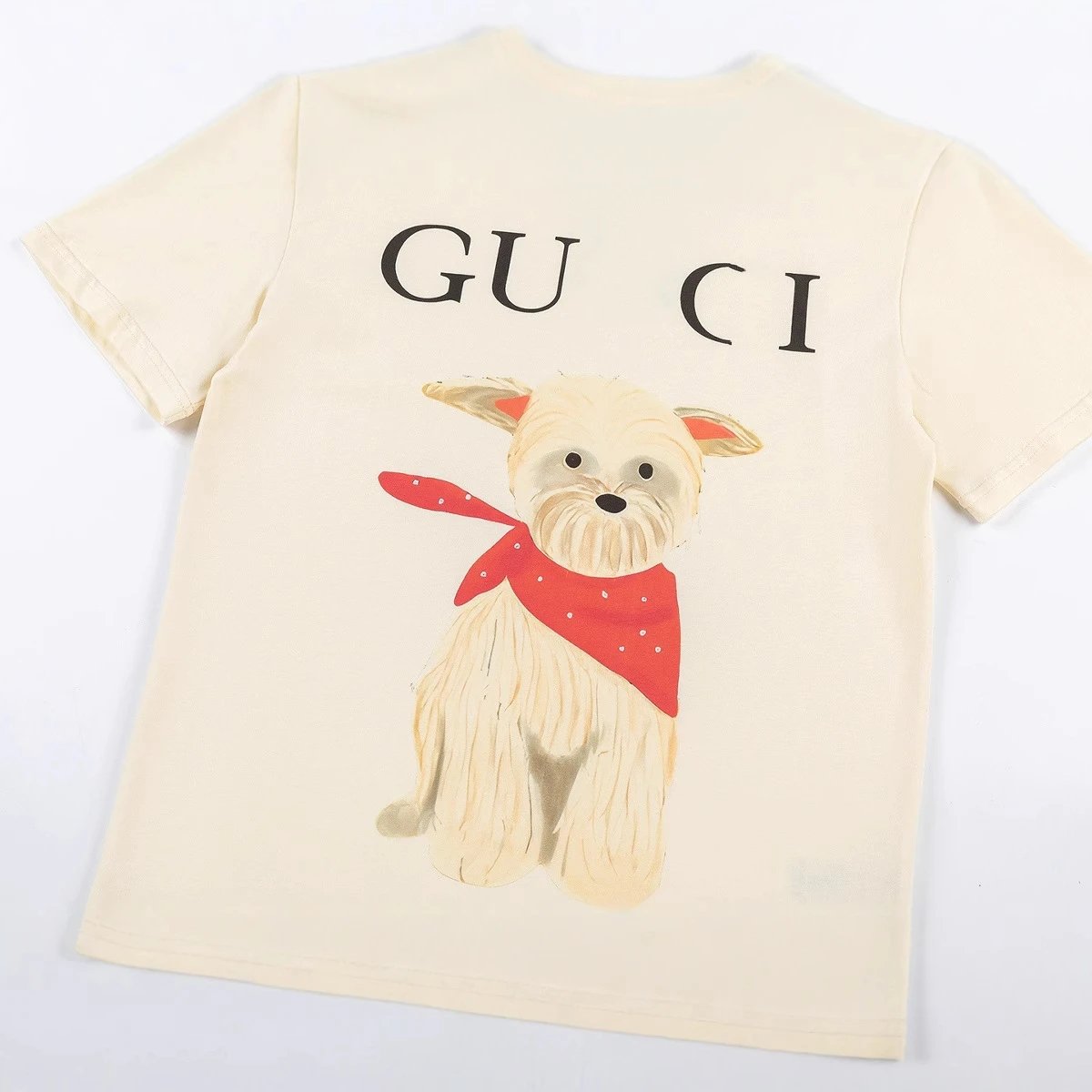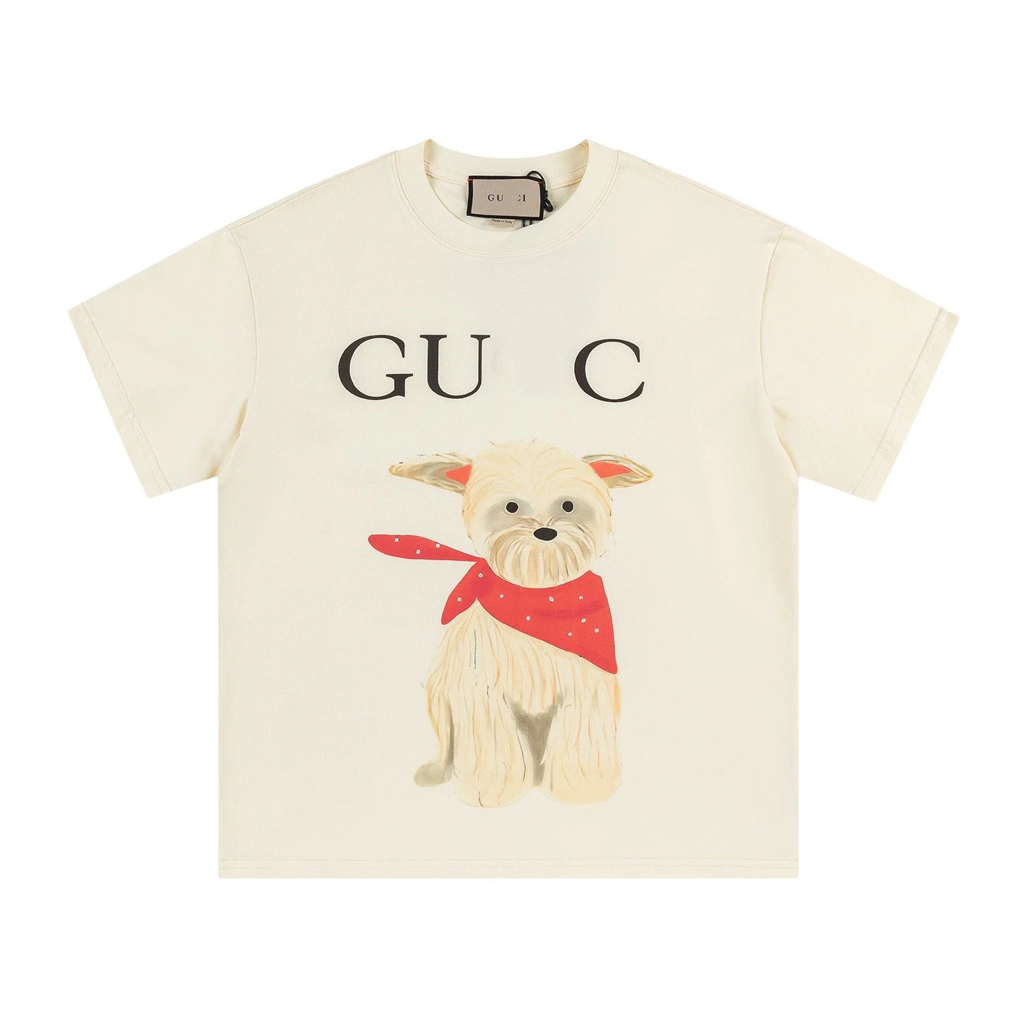 夏季新款GU家 卡通系列小狗印花纯色简约短袖T恤上衣男女