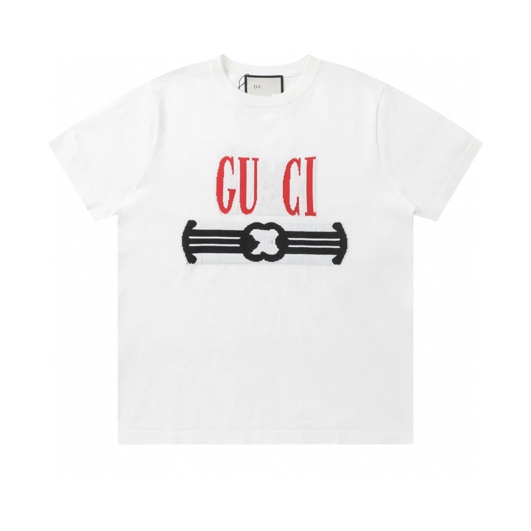 夏季新款GU家 箭头红标针织提花短袖男女同款T恤