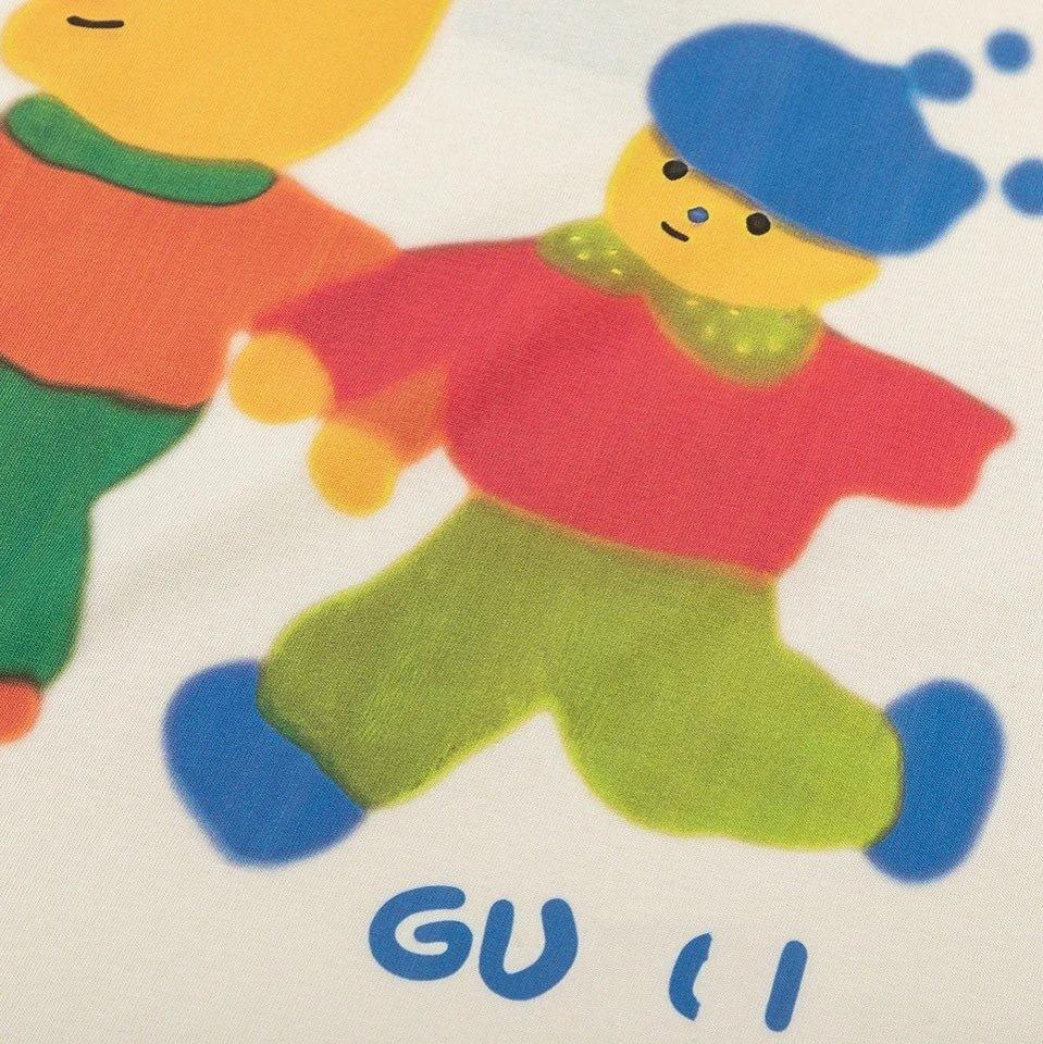 夏季新款GU家 卡通系列小人印花纯色简约短袖T恤上衣