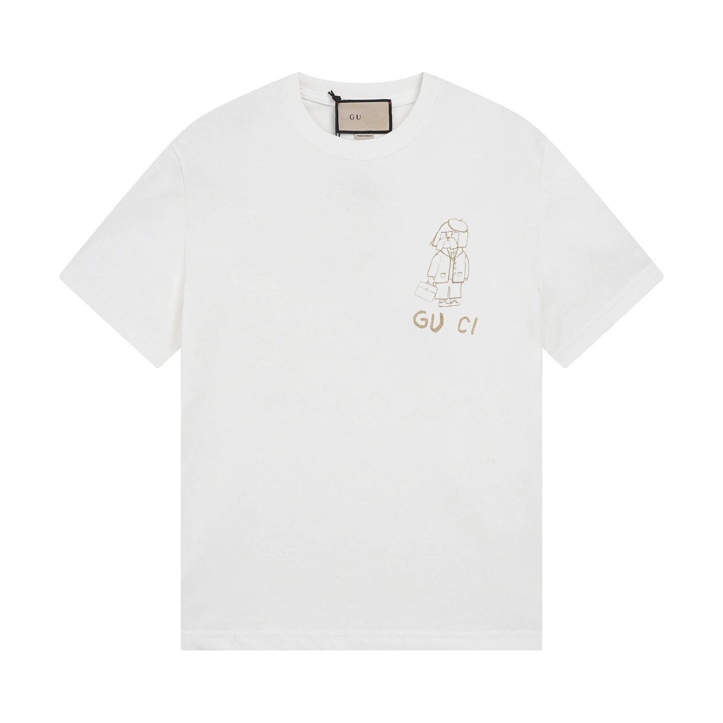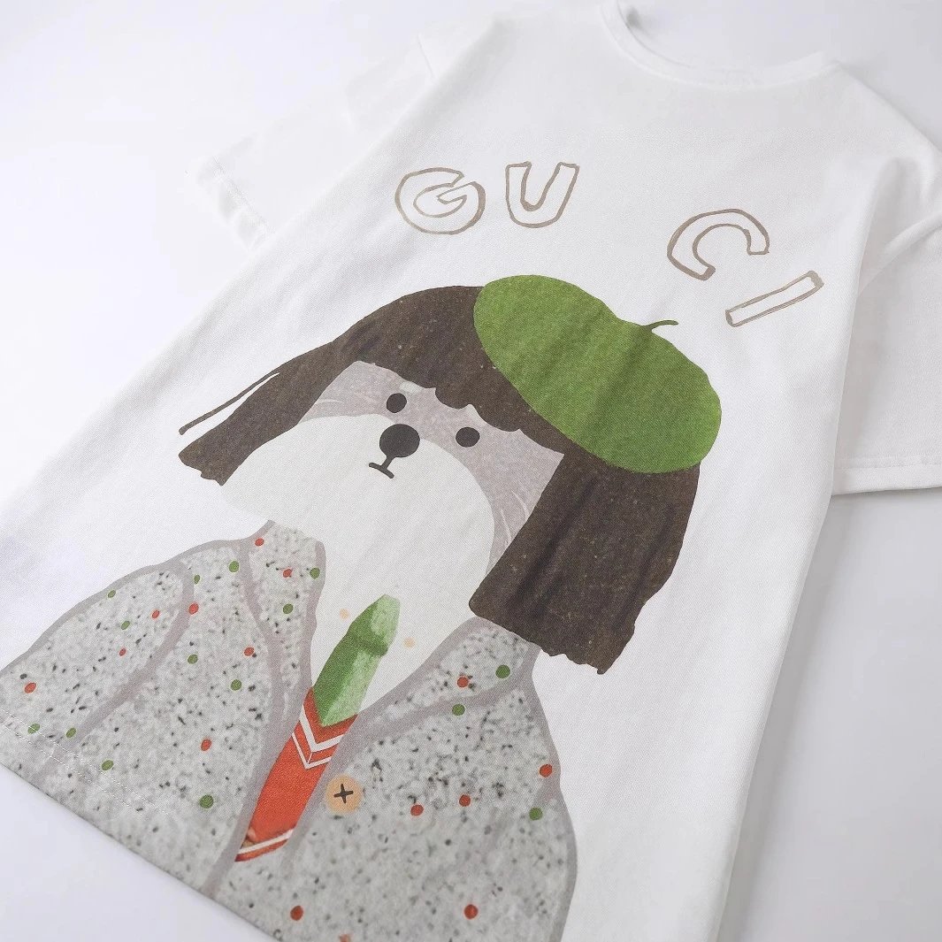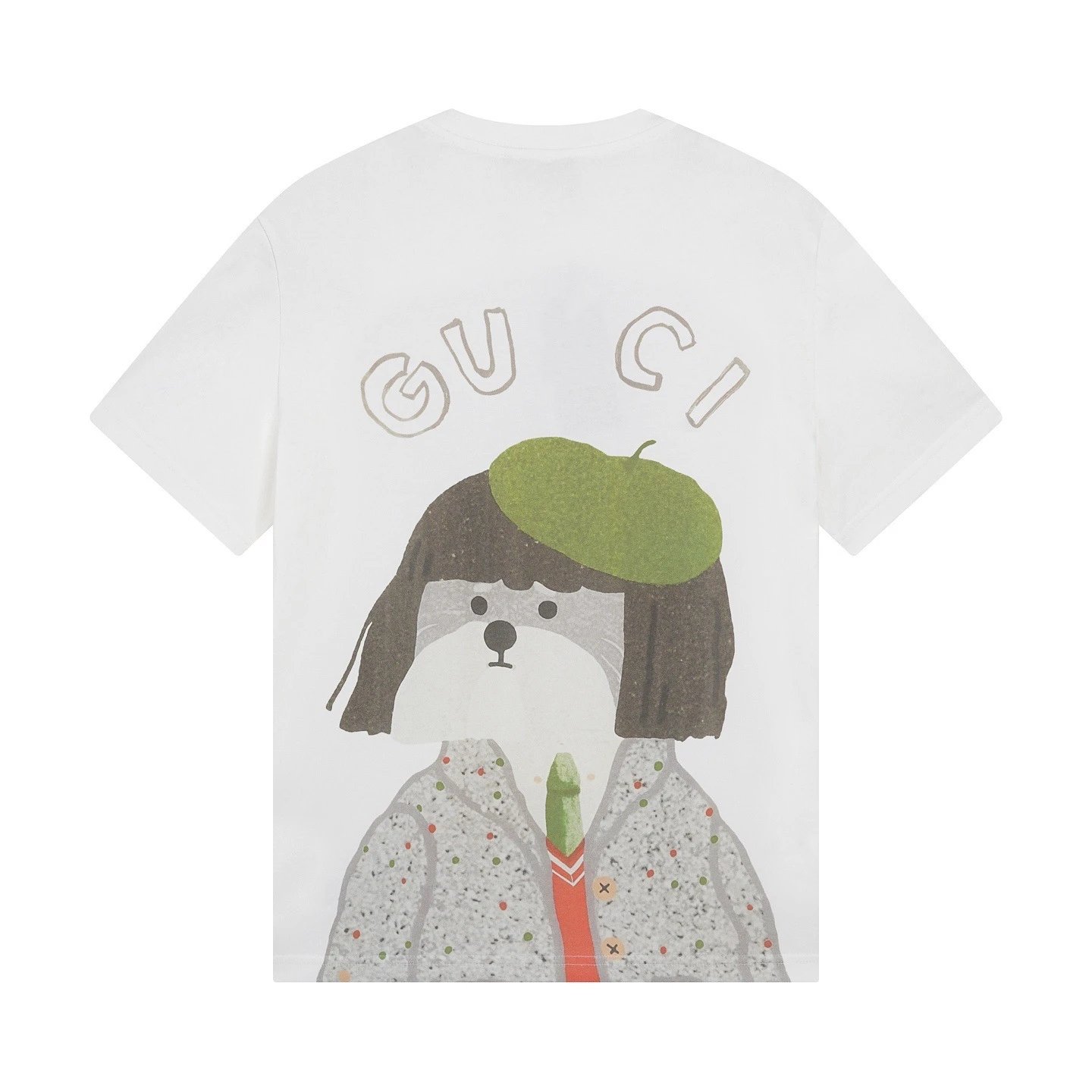 GU家后背艺术小狗印花简约可爱短袖T恤上衣男女