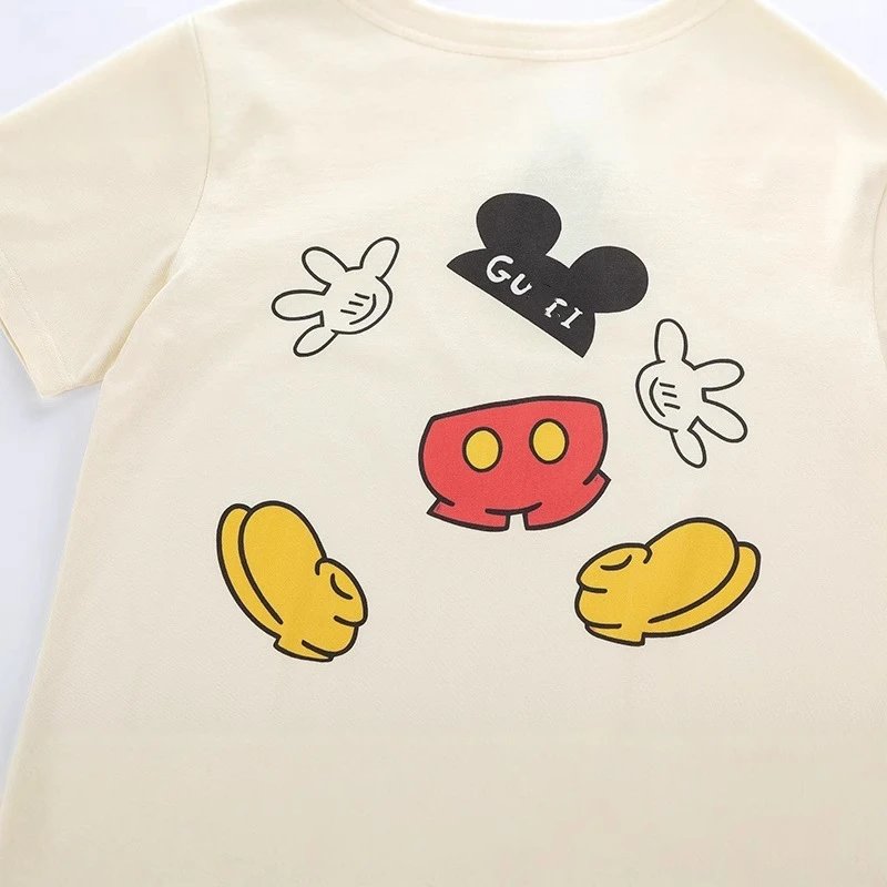 夏季新款GU家卡通系列老鼠印花纯色简约短袖T恤上衣男女