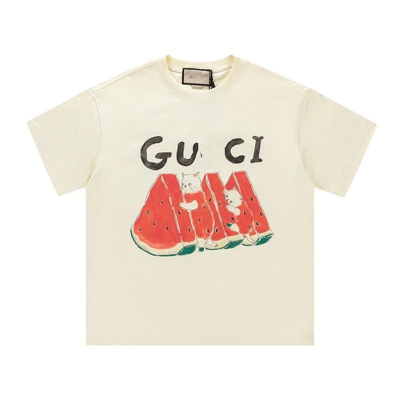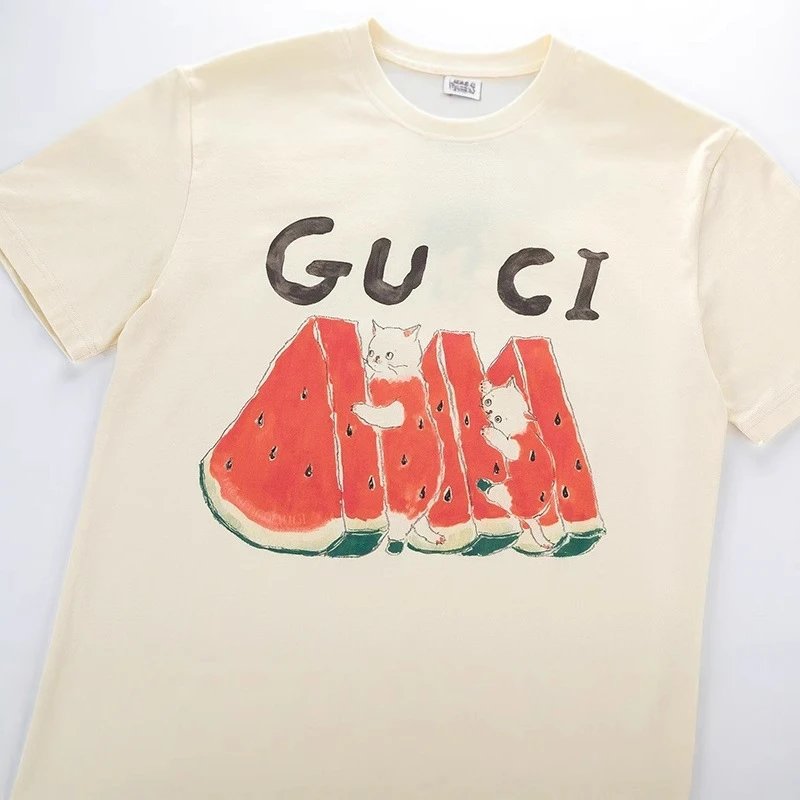 夏季新款GU家卡通系列西瓜小猫印花简约短袖T恤上衣男女