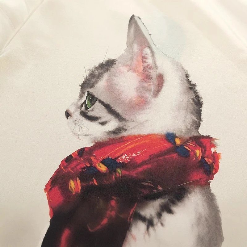 夏季新款GU家卡通系列小猫印花纯色简约短袖T恤上衣男女