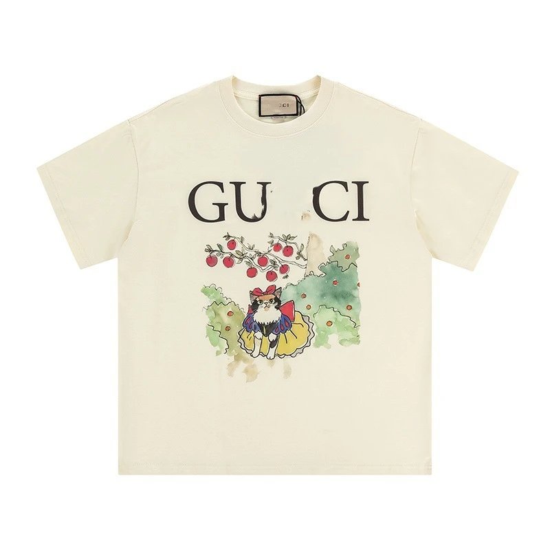 夏季新款GU家卡通系列猫咪印花纯色简约短袖T恤男女