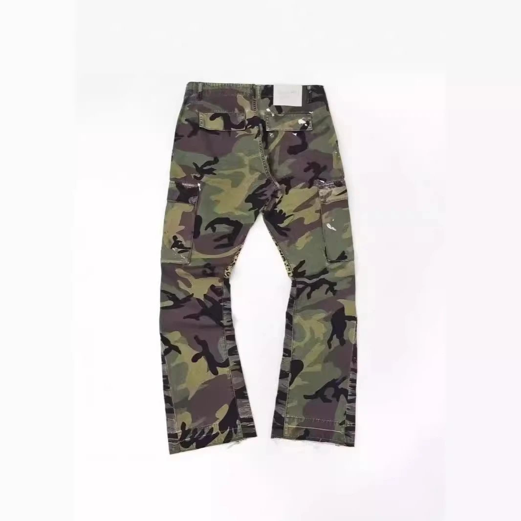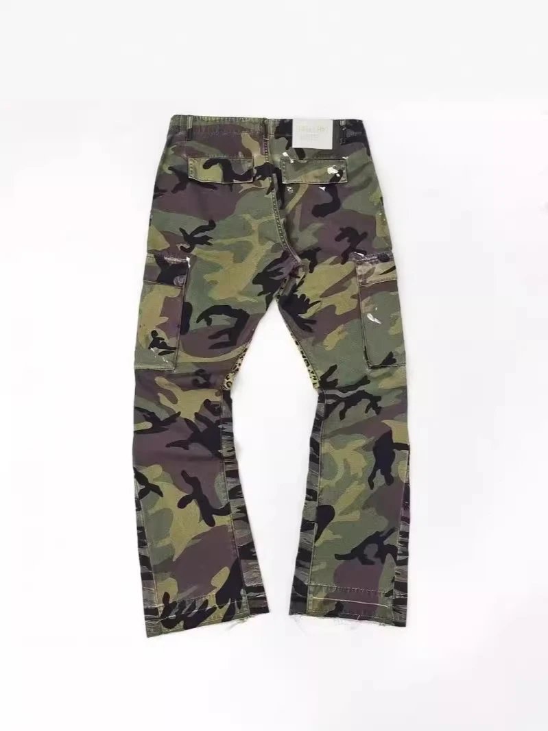 Gallery Dept绿迷彩泼墨拼接喇叭工装裤微喇长裤拼接休闲裤高街