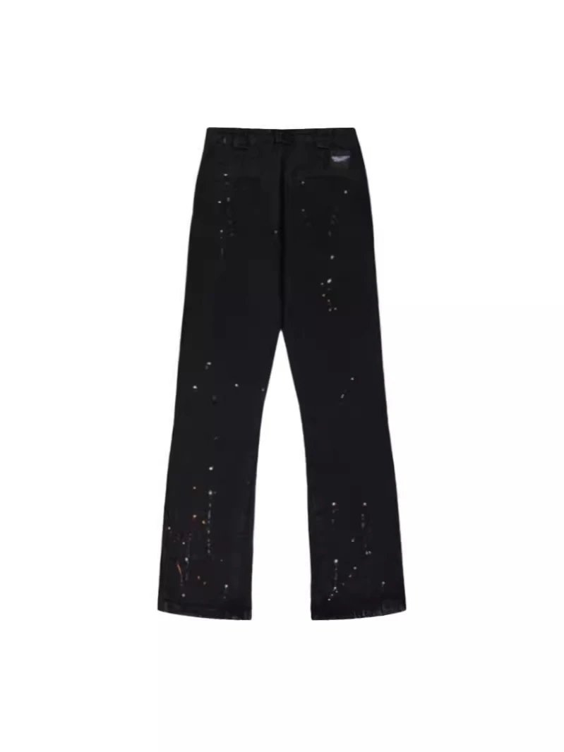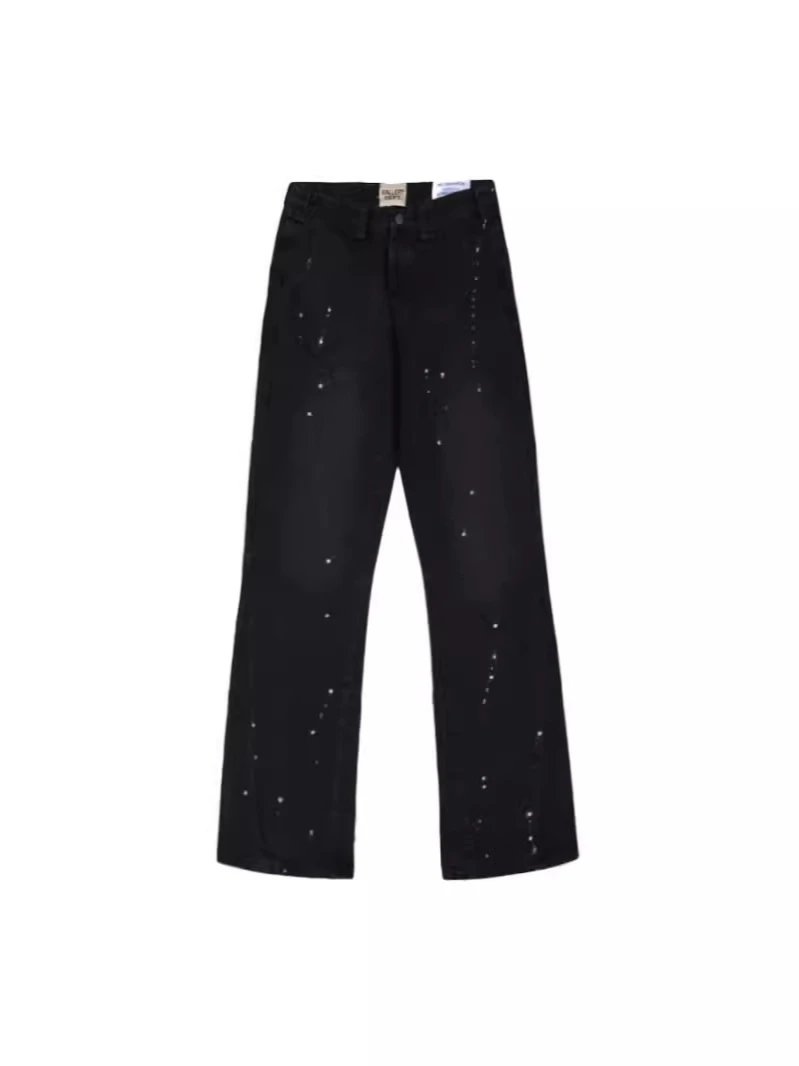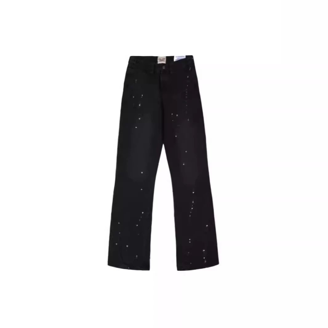 Gallery Dept新款泼墨水洗黑色拼接微喇牛仔裤百搭长裤男女款潮