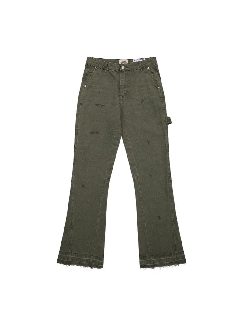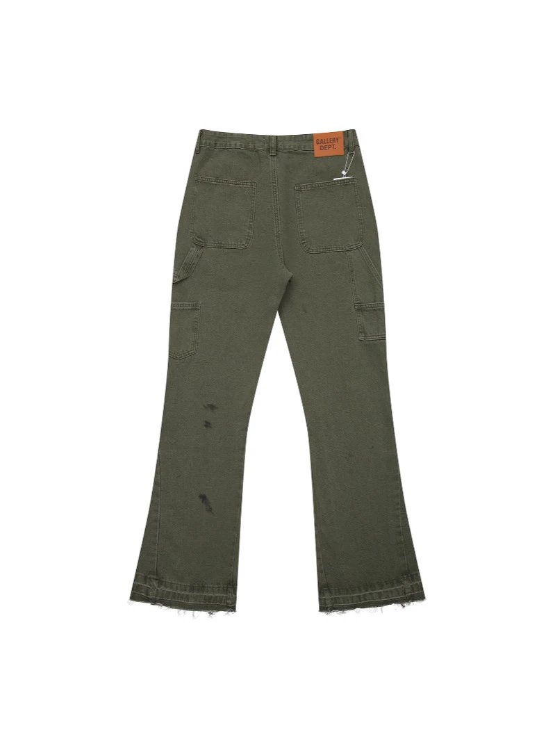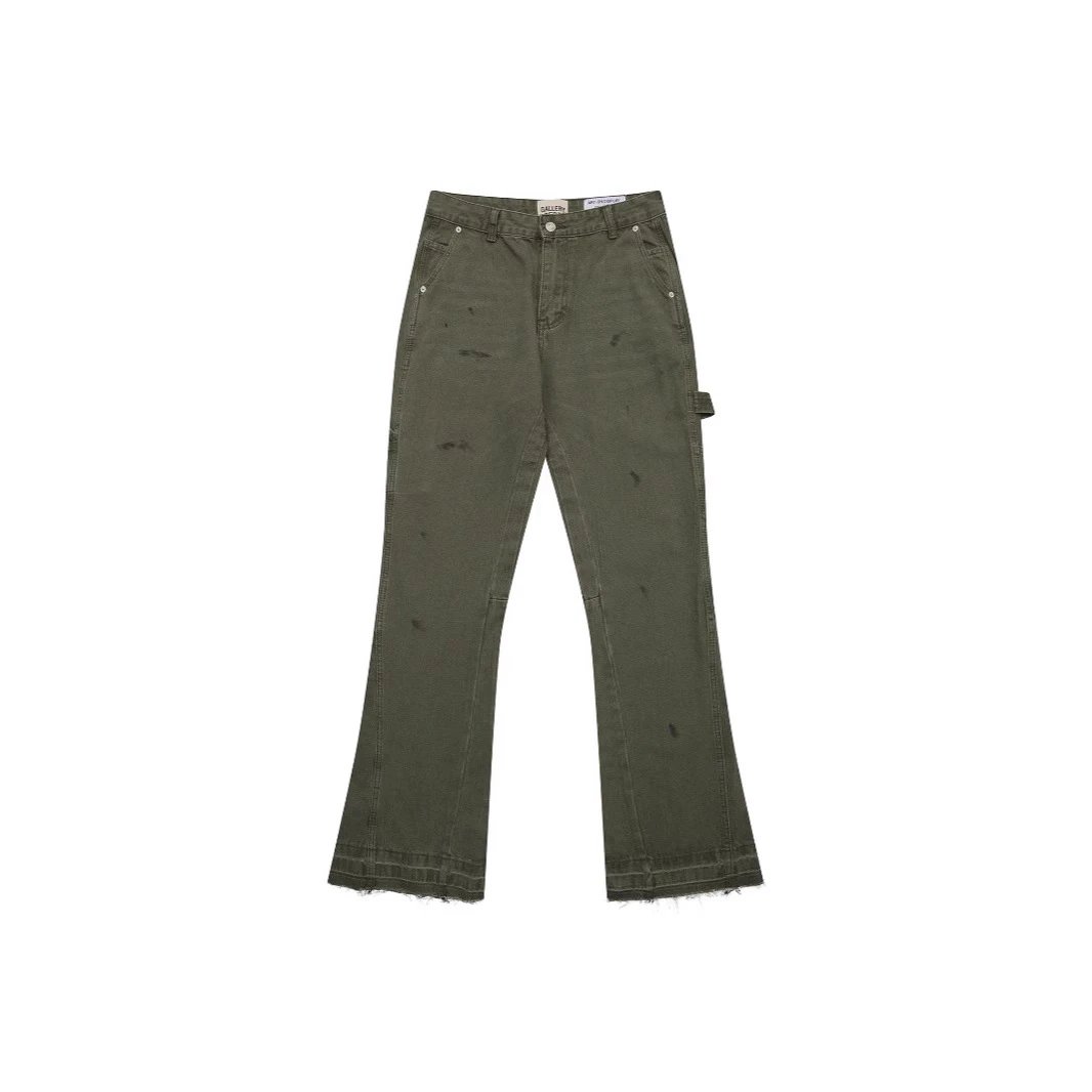 Gallery Dept泼墨泼漆水洗拼接微喇牛仔裤橄榄绿色工装裤牛仔裤